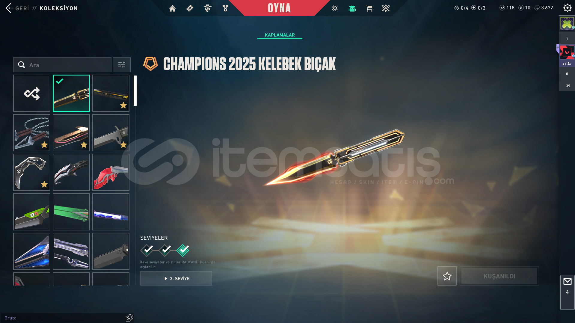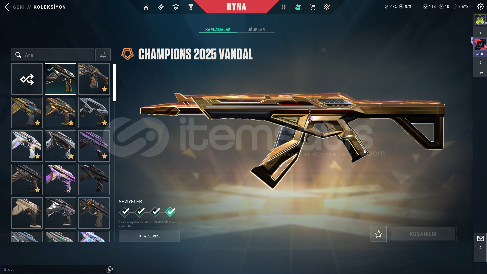 Aşağıda hesaptaki skinlerin tamamına bakabilirsiniz