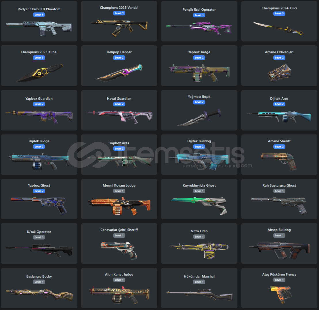 Skinler görsellerde görüldüğü gibidir. 370 küsur seviyededir.