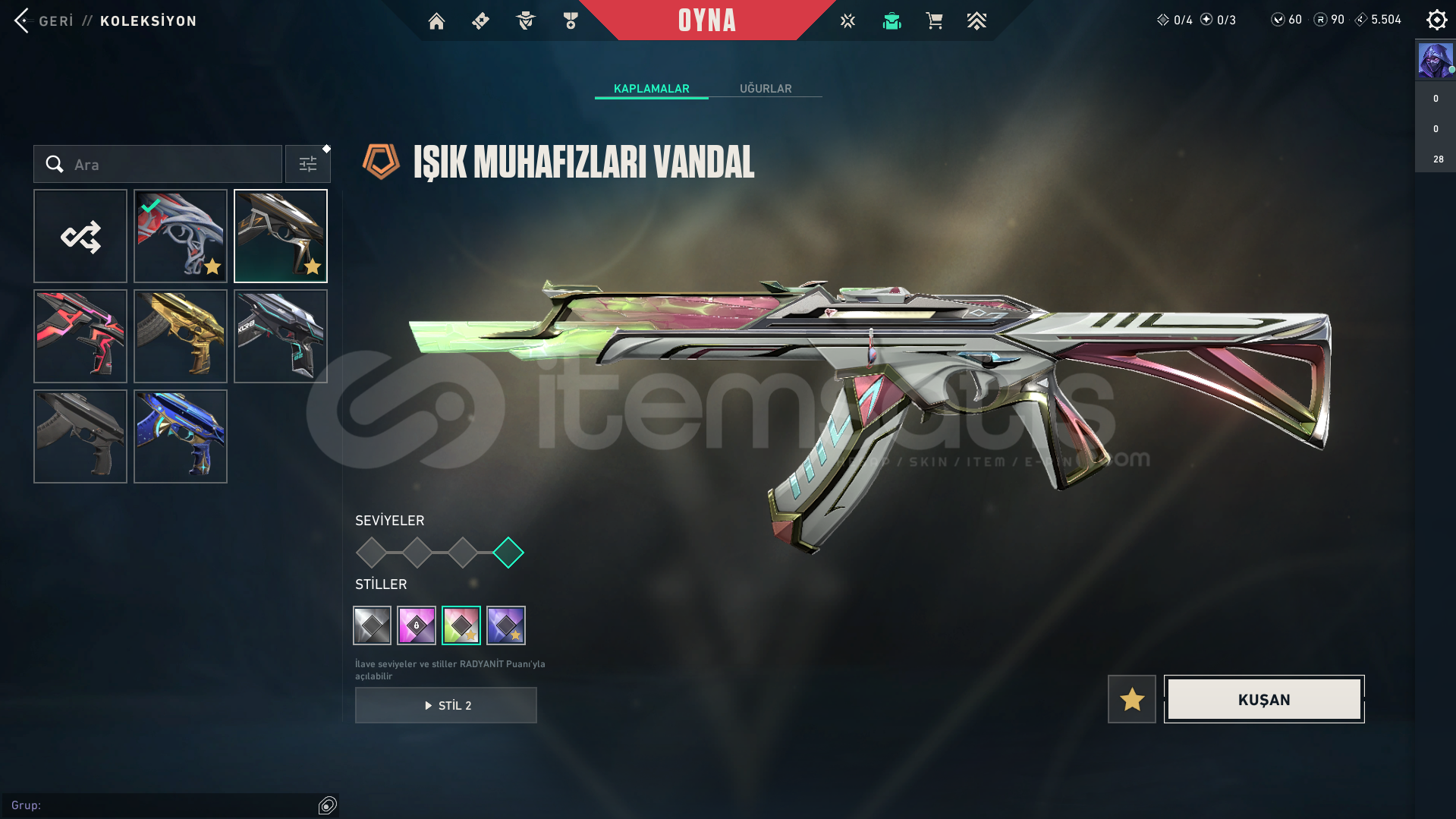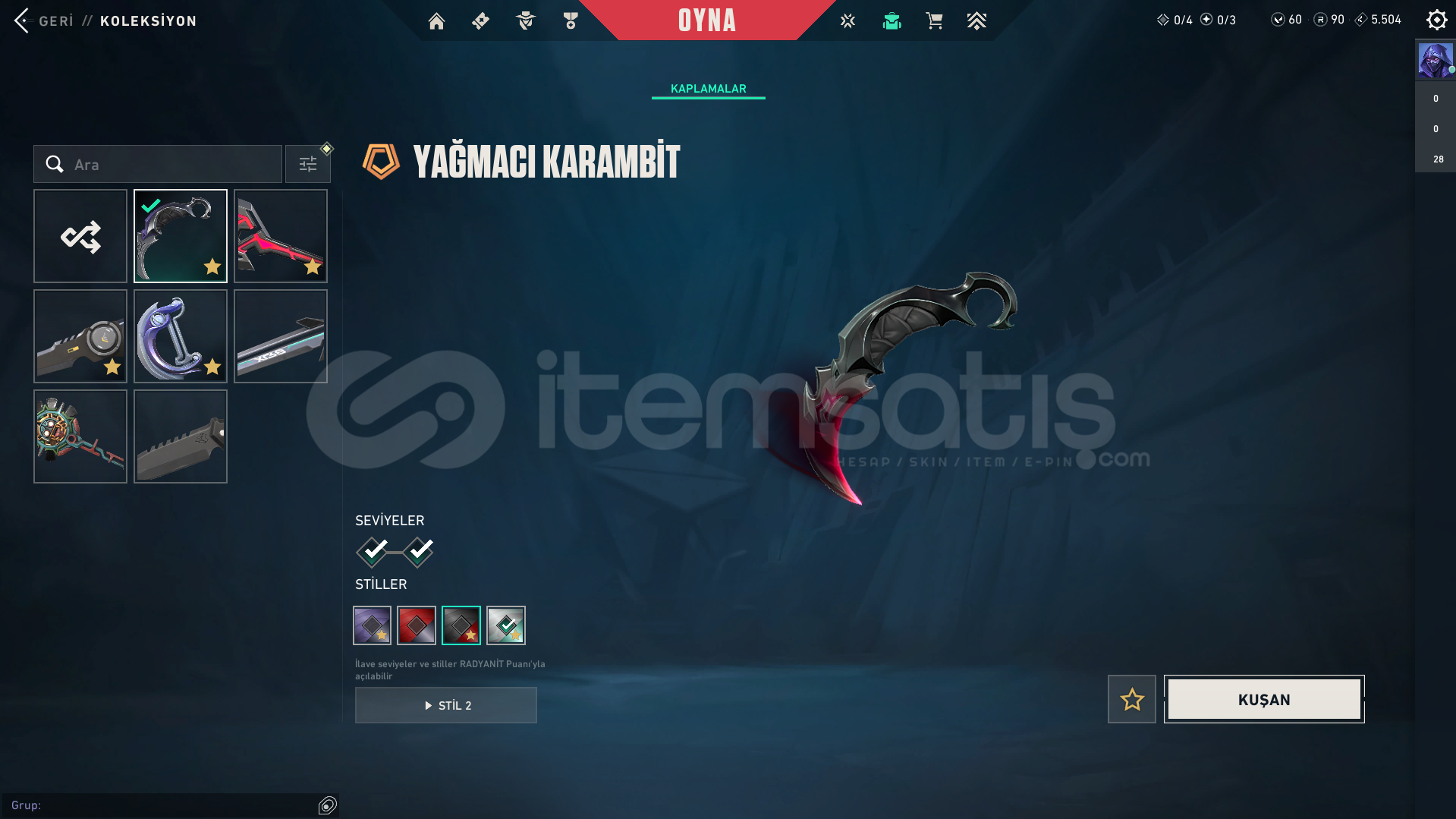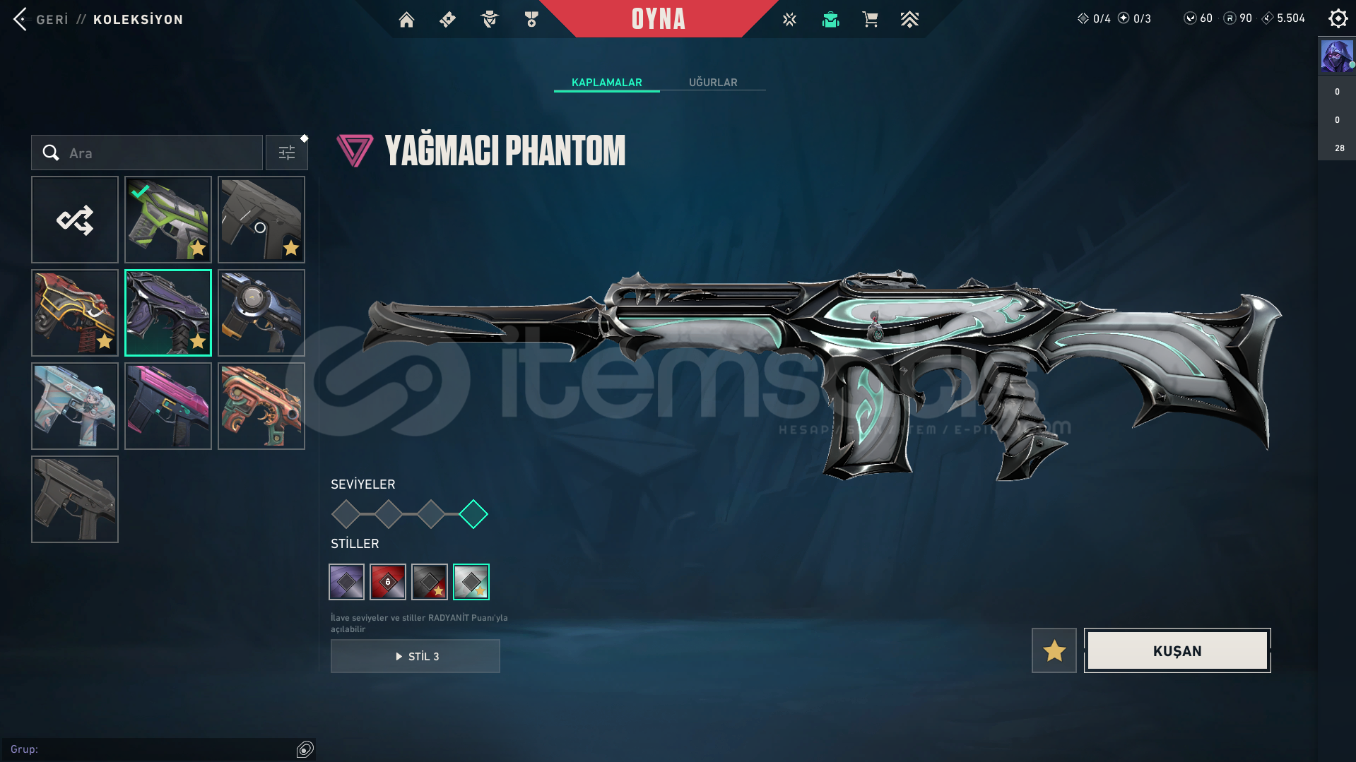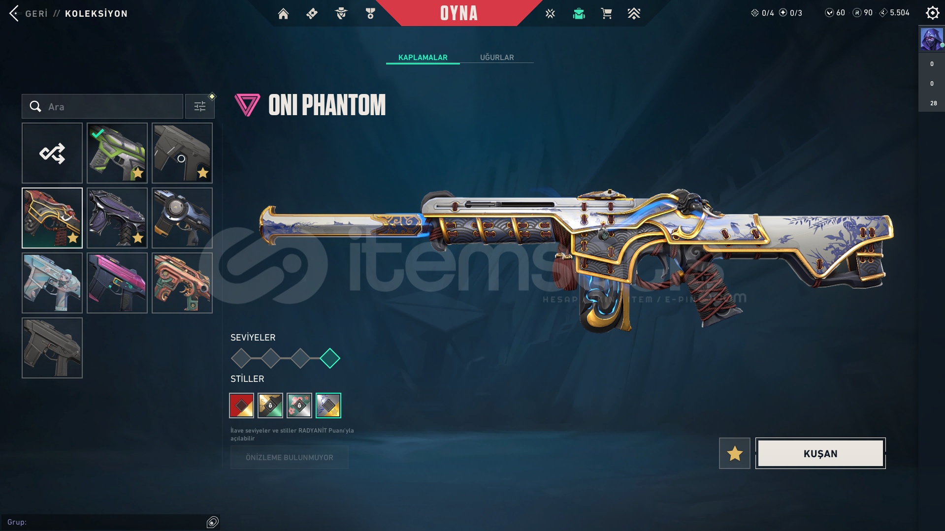 * 218 Level Ve HİÇ BAN YEMEDİM  * TR Sunucu, İsim Değişim Hakkı Var *Tüm Animasyonlar Açık *Battle Passler Dışında 16 Animasyonlu Skin SKİN KOLEKSİYONU  * BIÇAK: YAĞMACI KARAMBİT Ve 5 Tane Battle Pass Bıçağı  * PHANTOM: RGX, Oni, Yağmacı Phantom Ve 4 Battle Pass Skini  * VANDAL: Işık Muhafızı, Gaia...
