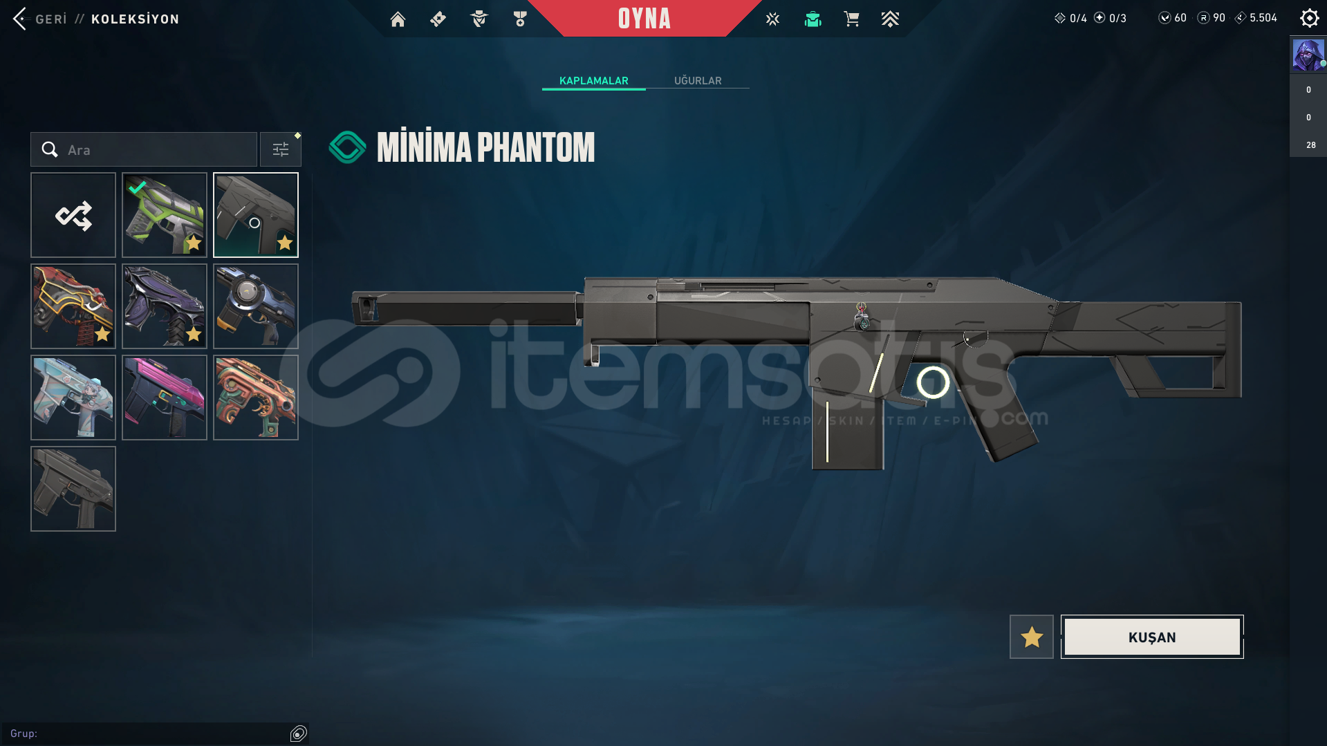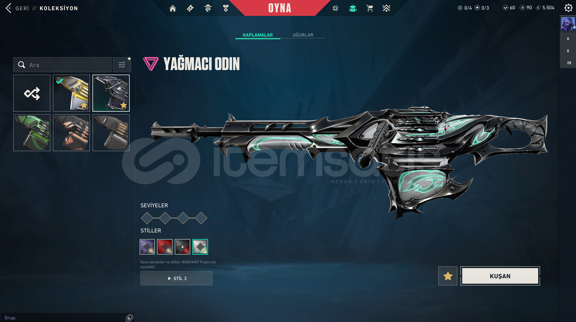 *Diğer Skinler: Iyon Operatör, Delipop Bulldog, Asil Classic, Gaia Guardian, Kaos Stringer, Anomali Ares, Işık Muhafızı Sheriff, Asil Odin, Fatih Marshall, Takımın Ası Oparatör Ve Battle Pass Skinleri