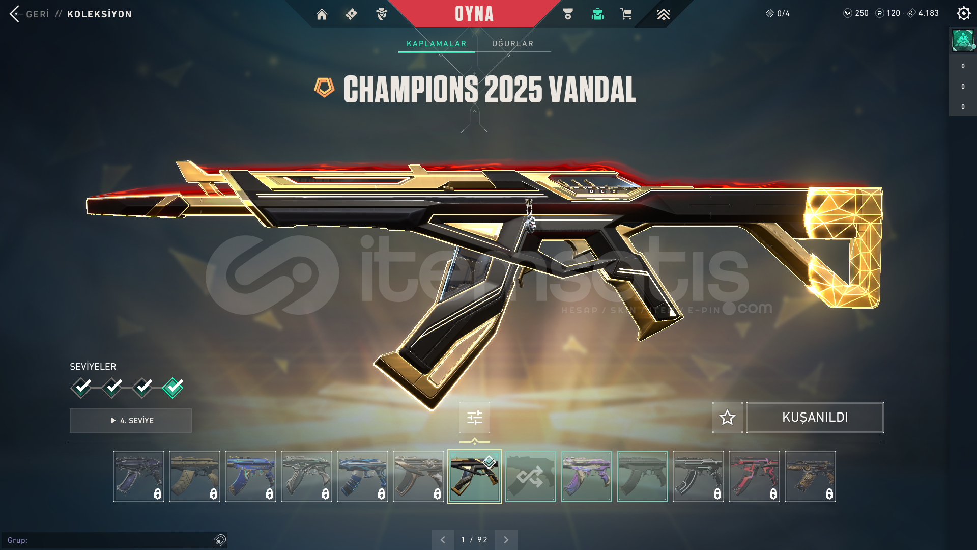 15 SKİN MEVCUTMAİL DEĞİŞMEKTEDİR250 VP DE BULUNMAKTADIR38 LEVEL AKTİF RANK BRONZİSİM DEĞİŞME MEVCUTOTOMATİK TESLİM EDİLECEKTİRİLANI İNCLEYEİP SATIN ALINIZ SONRASINDA VAZ GEÇTİM İADE İSTİYORUM GİBİ BİR İADE POLİTİKASI OLMAYACAKTIR