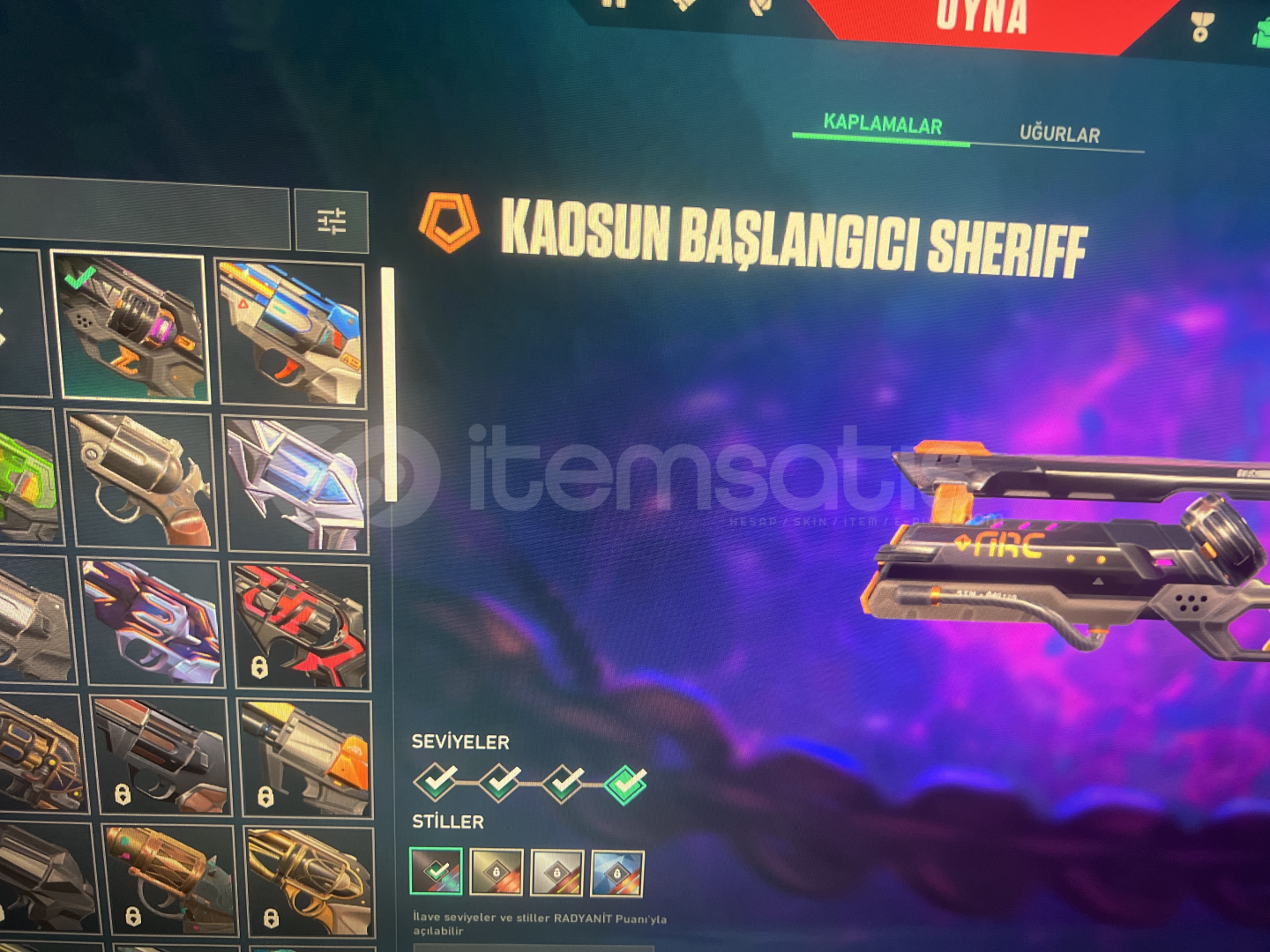 Merhabalar valorant hesabımı satıyorum içerisinde 16 adet vandal( asil kuronami …) 9 adet bıçak 8adet phantom (seri tetik R.E.S zifiri)3 adet classic (prx classic) 3 adet shorty 4 adet frenzy 5 adet ghost(yağmacı ghost) 6 adet sheriff (kaos ve seri tetik) 3 adet stinger 5 adet spectre(asil spectre) 3 bucky 4 judge 4 bulldog 4 guardian 4 marshal 4 outlaw 3 operatör 3 ares 3 odin bulunmakta 4+ Battlepass açılmıştır ...
