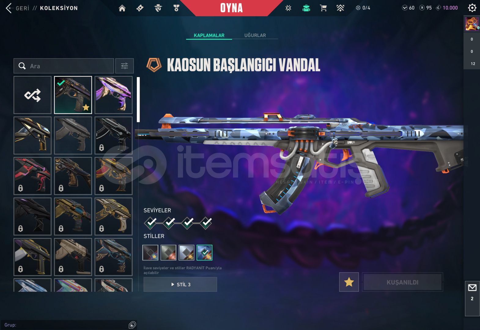 Çarımda 2025set kaos vandal ve battle pas bulunmakta