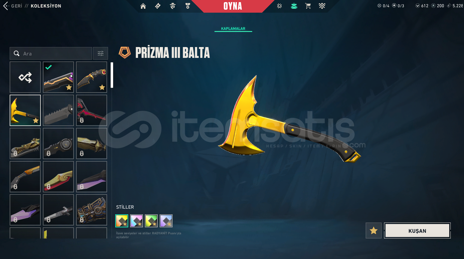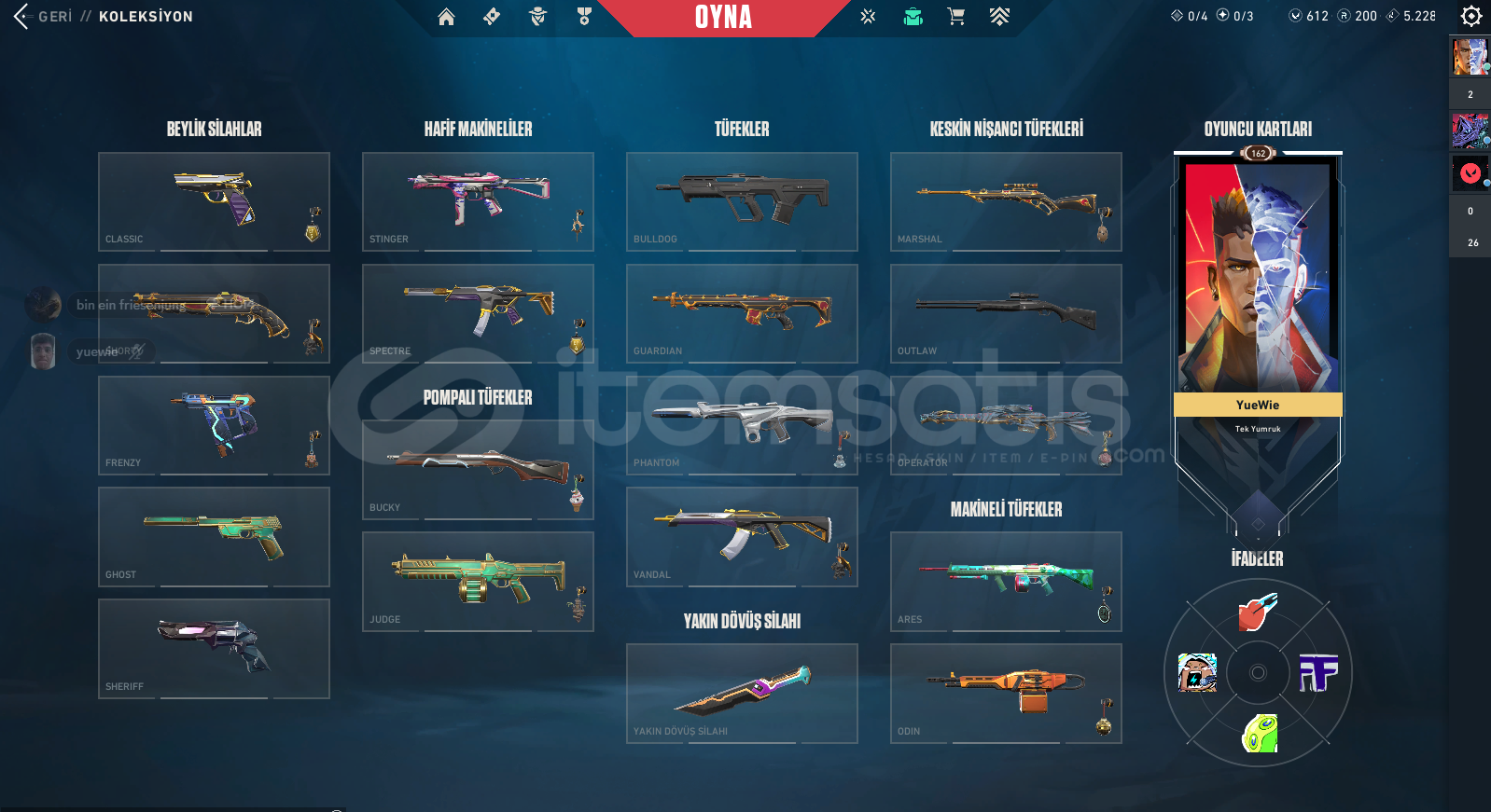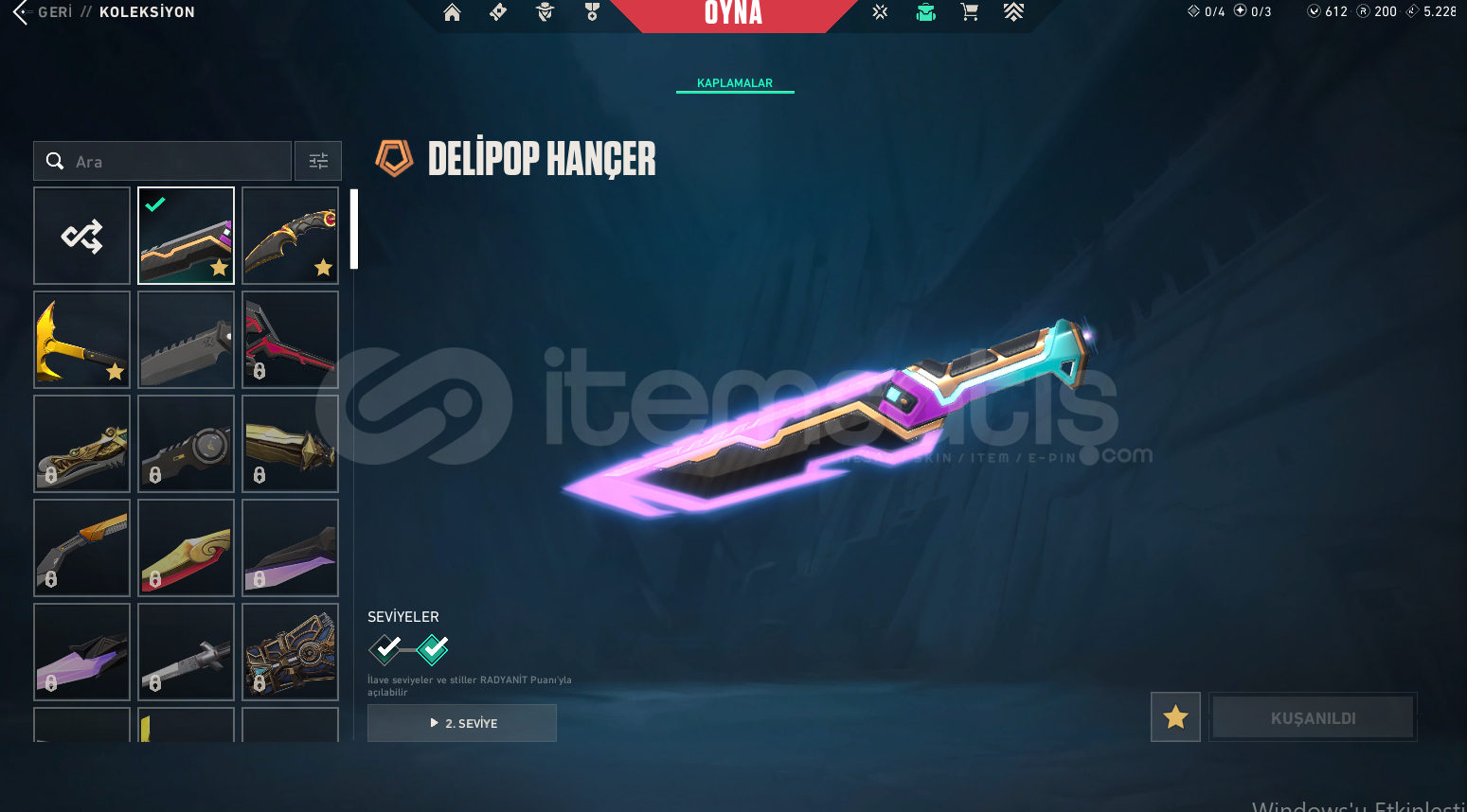 **BIÇAKLAR** DELİPOP HANÇER -- ALTIN AFET HANÇER -- PRİZMA 3 BALTA **SKİNLER** EJDER OPERATÖR -- ASİL VANDAL -- İYON PHANTOM --ASİL SPECTRE -- ANOMALİ SHERİFF -- ASİL CLASSİC -- 2 TANE BATTLEPASS VAR -- RANK: GOLD 3 -- 162 LEVEL -- 600vp -- OYUN OYNAMAYI BIRAKTIĞIM İÇİN SATIYORUM. TERTEMİZ HESAP ALANA HAYIRLI OLSUN