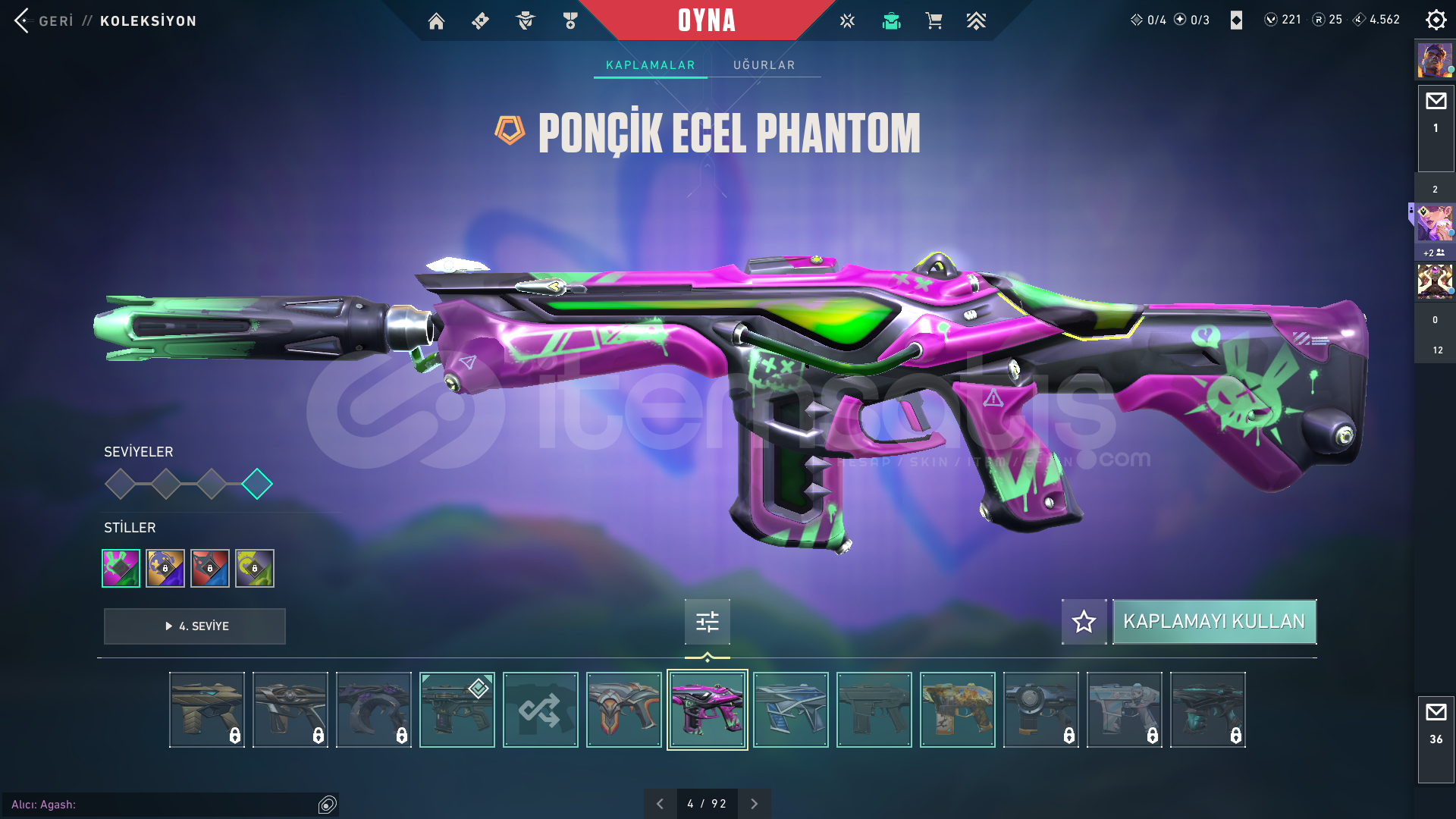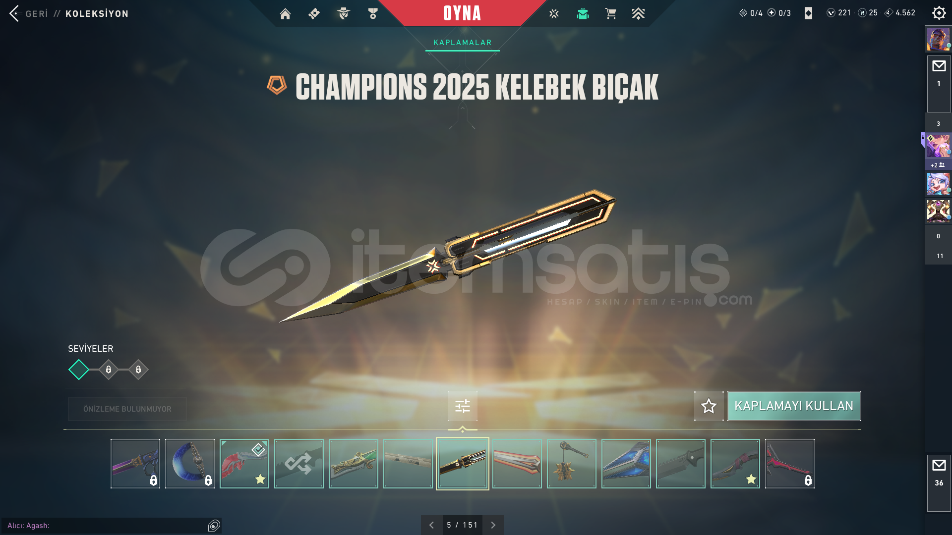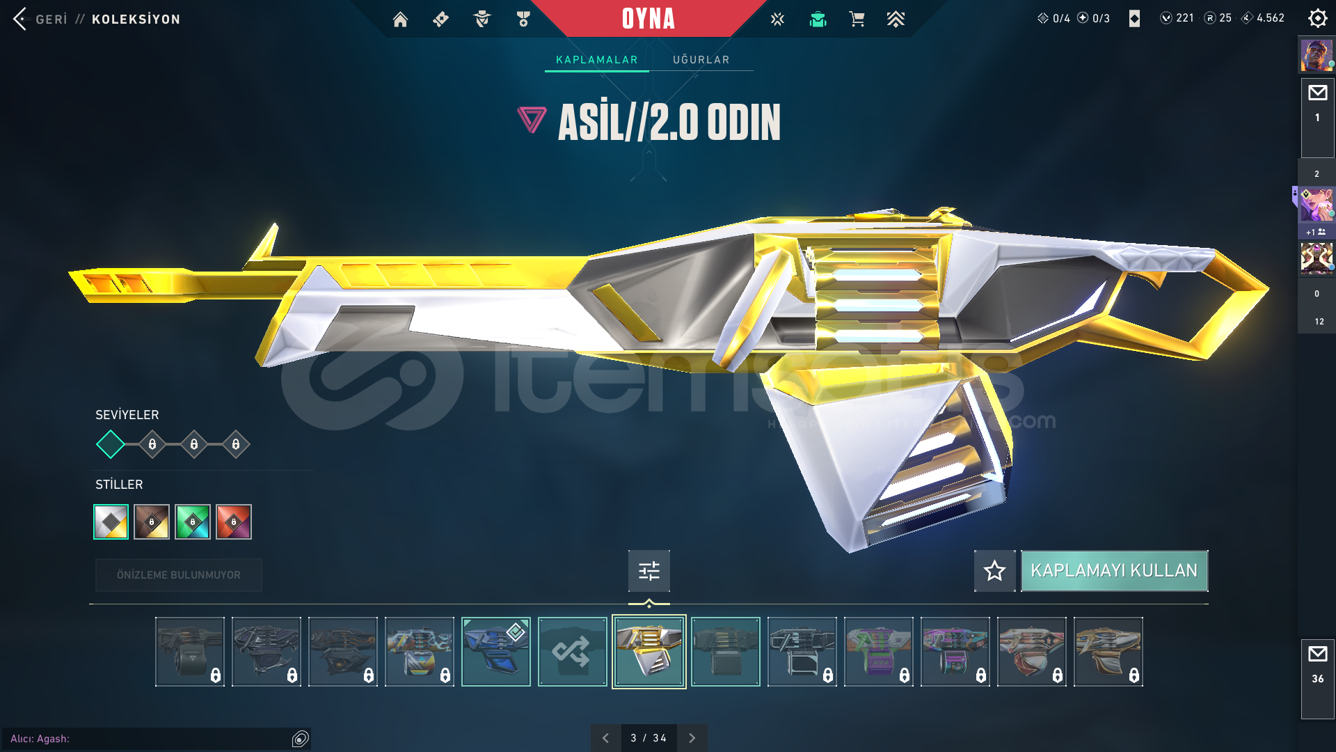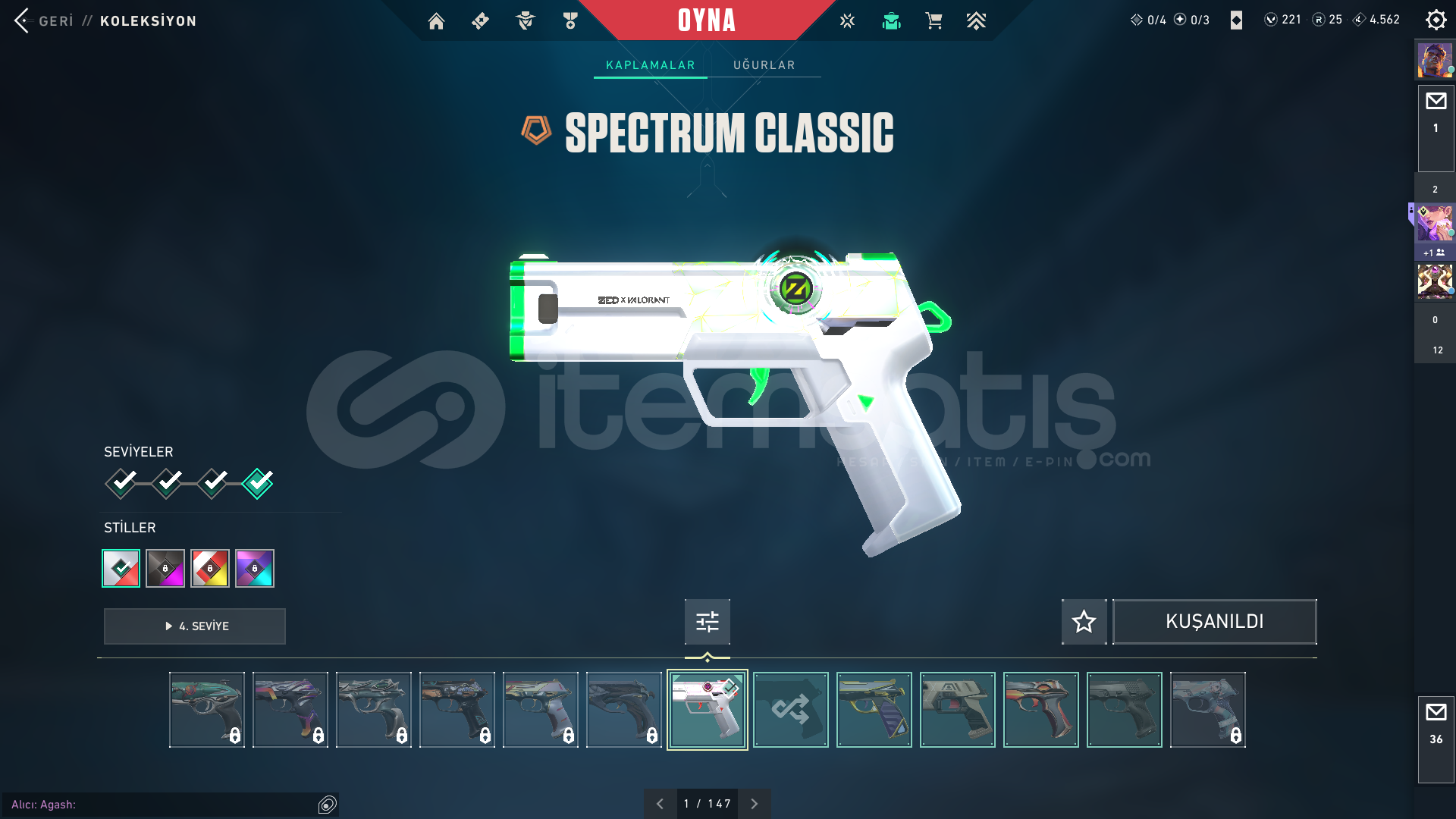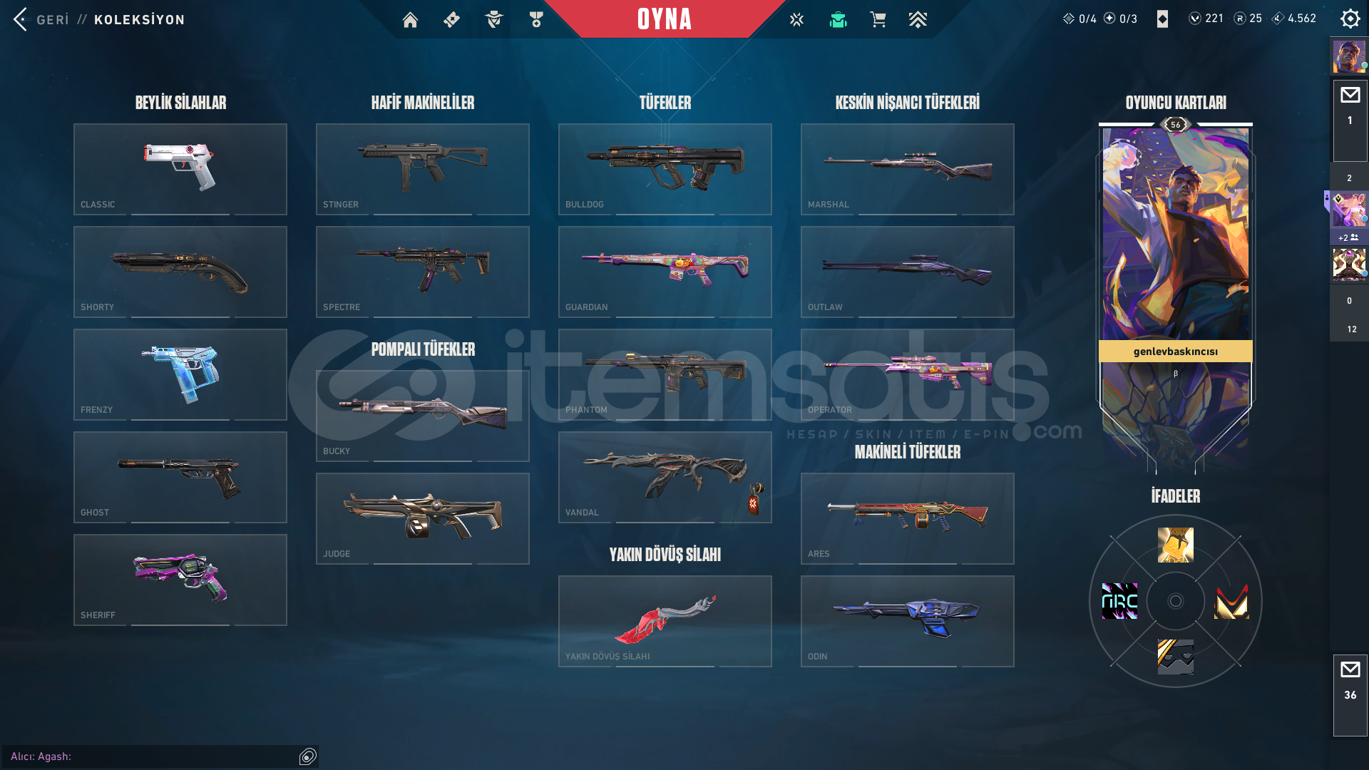 20K Yatırılmış dopdolu hesap öldürmeden pazarlık vardır kaos ve champions seti alınmıştır spectre bulldog şimşek frenzy ares ve odin radyanit olmadığı için geliştiremedim hesap plat daha önce hiç sorun yaşamadım hesabın garantisini veriyorum geri çekilme gibi sorunlar olmaz okulda değilsem anında teslim ederim tr serverder hesabın içindeki skinler