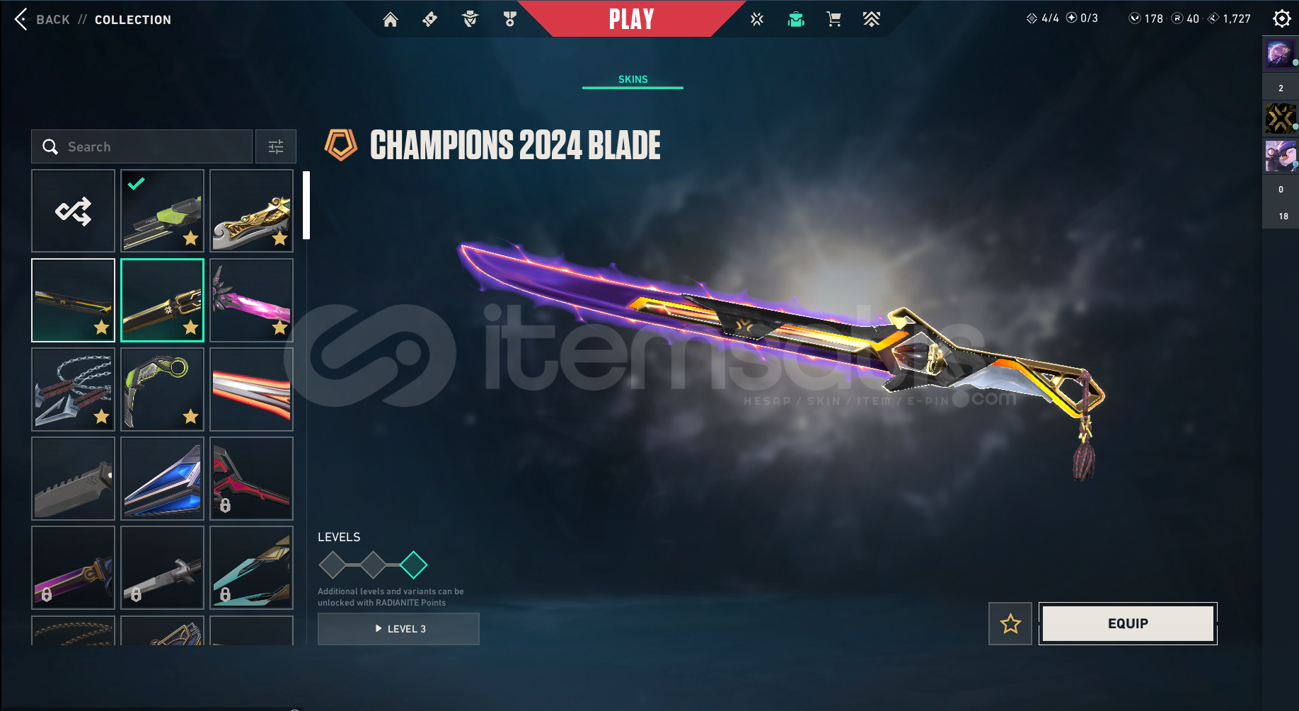 Hesapta 2 adet champions seti, beta bıçak, dolmirin intikamı seti, 3ü artık alınamamak üzere 7 tane paralı bıçak vardır.