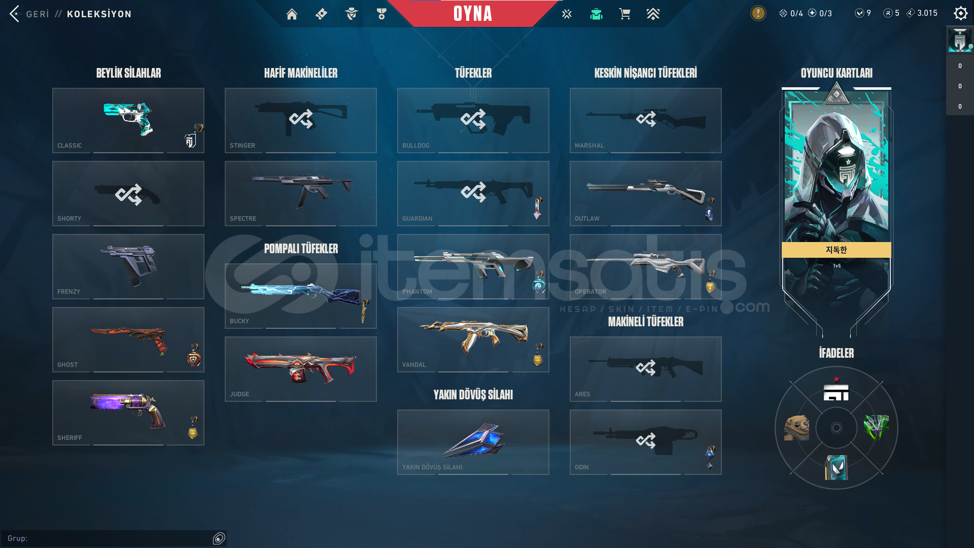22 SKİNLİ DERECESİZ VALORANT HESABI BAN YOKTÜM AJANLAR AÇIK 153LEVEL6 TANE SAVAŞ BİLETİ FUT CLASSİC ŞİMŞEK FRENZYGAİA GHOST SERİ TETİK SHERİFF KURONAMİ SHERİFFİYON SHERİFFŞİMŞEK SPECTREFLAŞ BUCKŞİMŞEK PHANTOMASİL PHANTOMSIRÇİÇEĞİ PHANTOMŞİMŞEK OUTLAWRGX OUTLAWYİTİK VANDALCYRAX V...