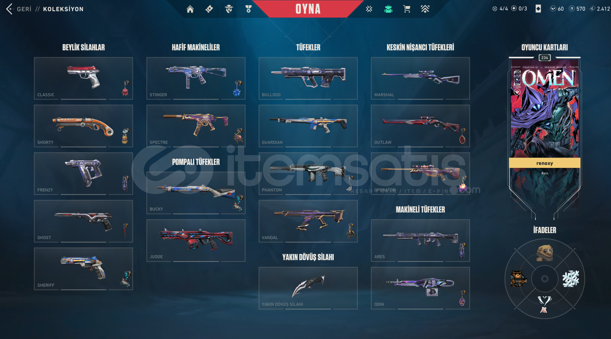 Rank:Silver 1LvL:234Radyanit Puanı:570 Skinler: Kuronami Vandal Ve Yağmacı Phantom +Battle pass skinleriİlk Hesabım Hesap Bana Ait Artık İşten Güçten Vakit Ayıramıyorum Ve Hesabımı Satmaya Karar verdim Hesabı Alan Kişi Herşeyini Değiştirebilir.