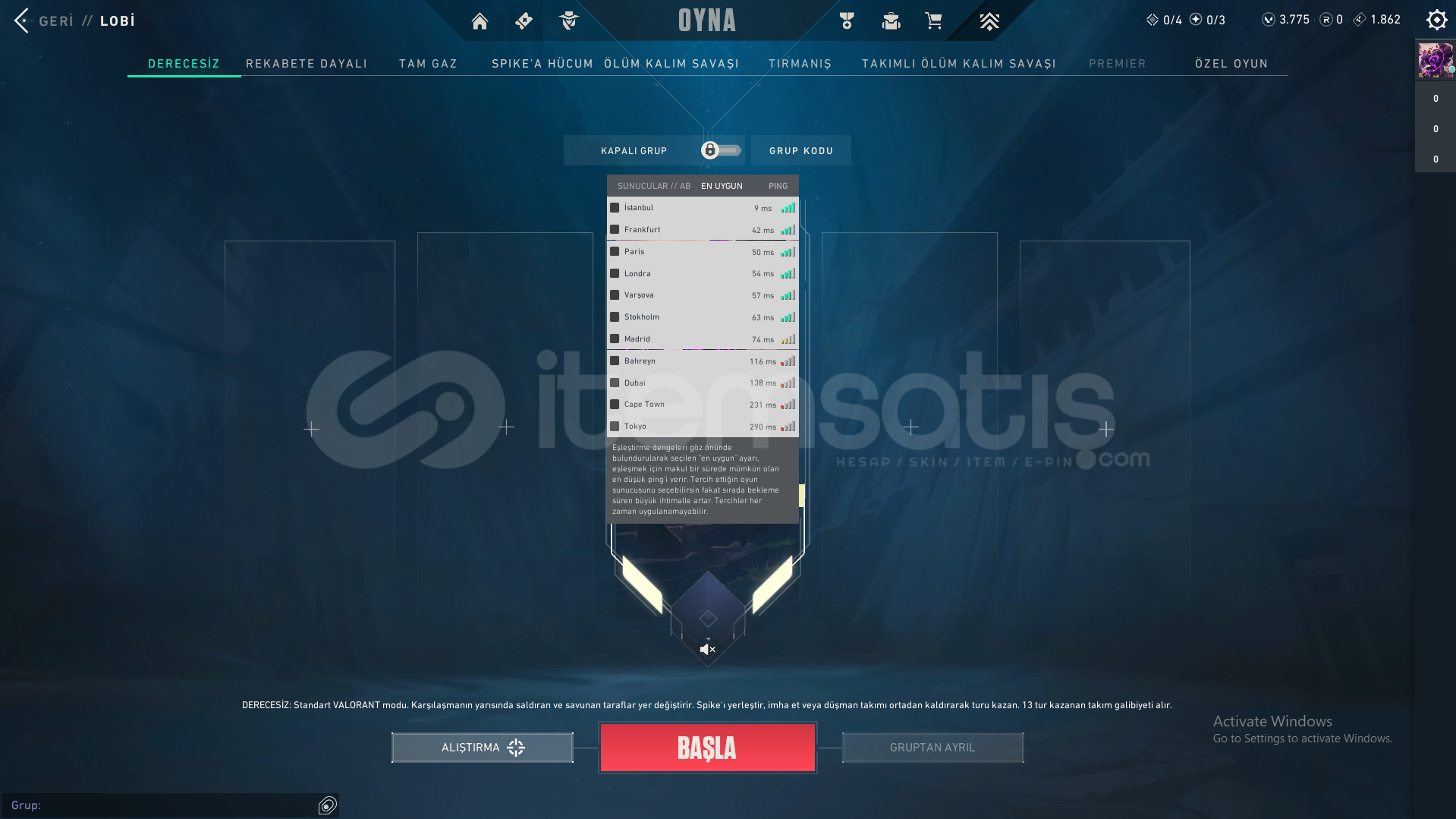 Hesap TR bölgesinde kuruludur ve mağaza para birimi TL'dir, İstanbul sunucusuna giriş yapılabilmektedir!