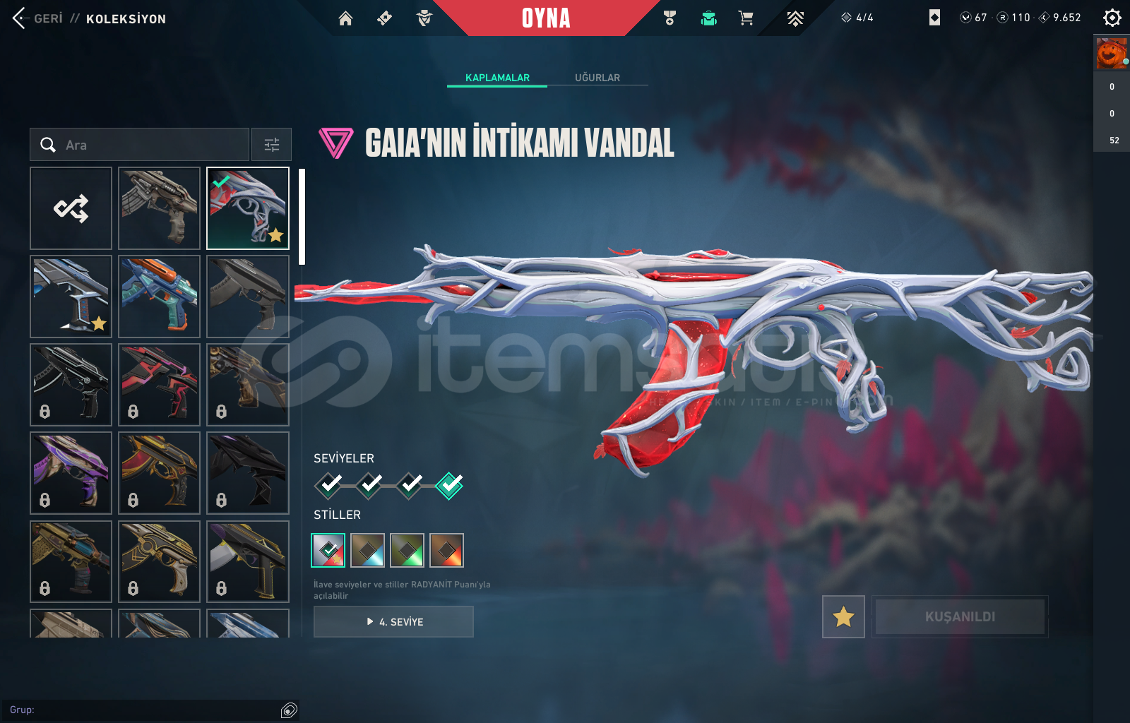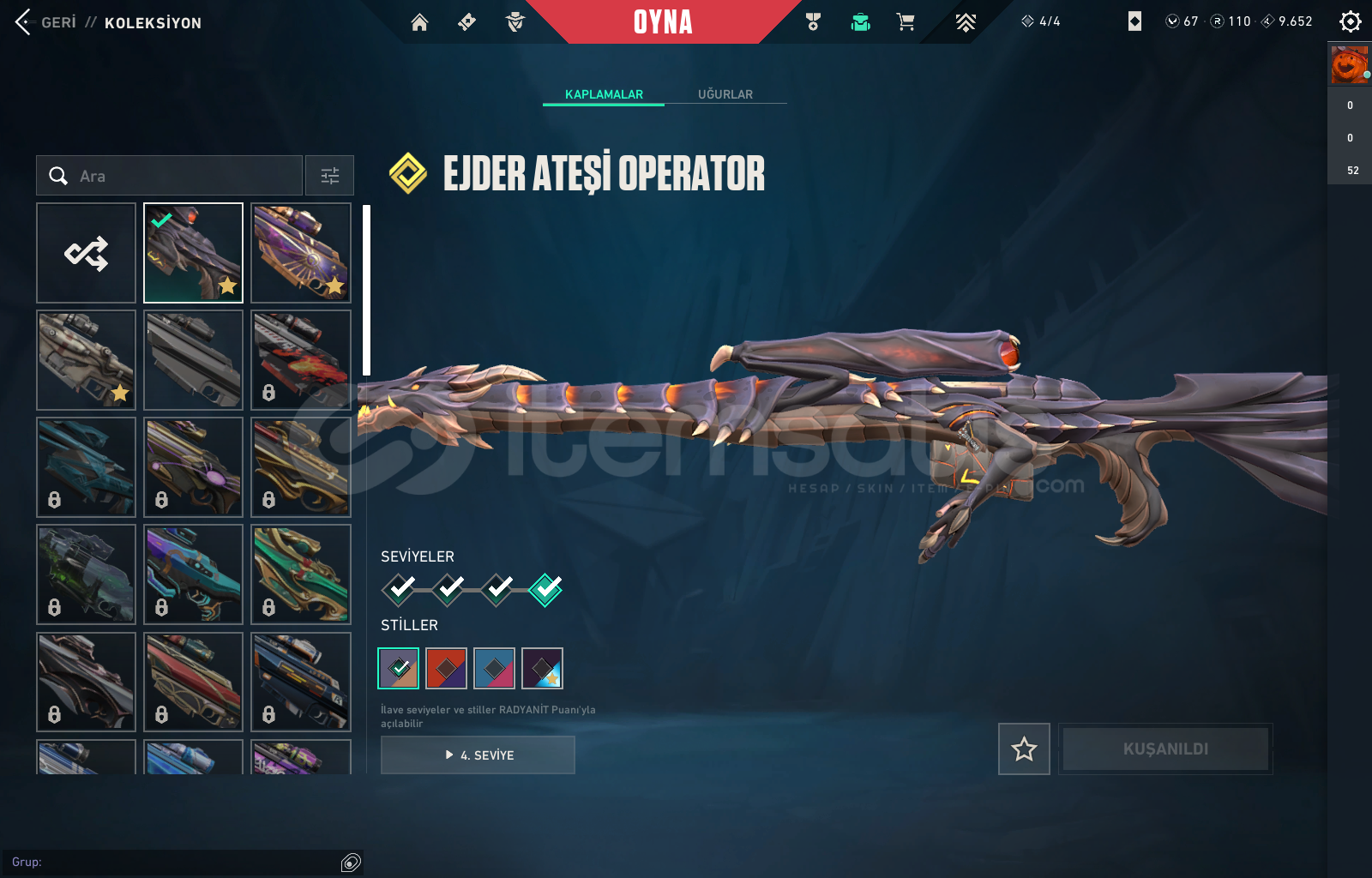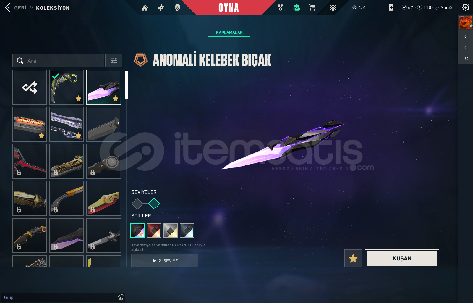 HESAP İÇERİSİNDE 110 RADYANİT + 67 VP BULUNMAKTA