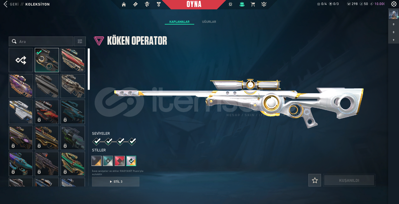 Hesap Şahsıma Aittir. Güvenilirlikten yana hiçbir sorun söz konusu olamaz büyümeye çalışıyorum alana h.o. (Hesaba 24k vp yatırılmıştır.) açıklama: hesapta toplam skinlerin vp toplamı 24k dır! Toplam Harcanan: 6413.00 TL dir.Yükseltilmiş Skinler:-YILDIZ BELASI SHERİFF-SİHİRPUNK SPECTRE-ASİL 2.0 BUCKY-ASİL PHANTOM-ULUPENÇE VANDAL-ONİ VANDAL-GA...