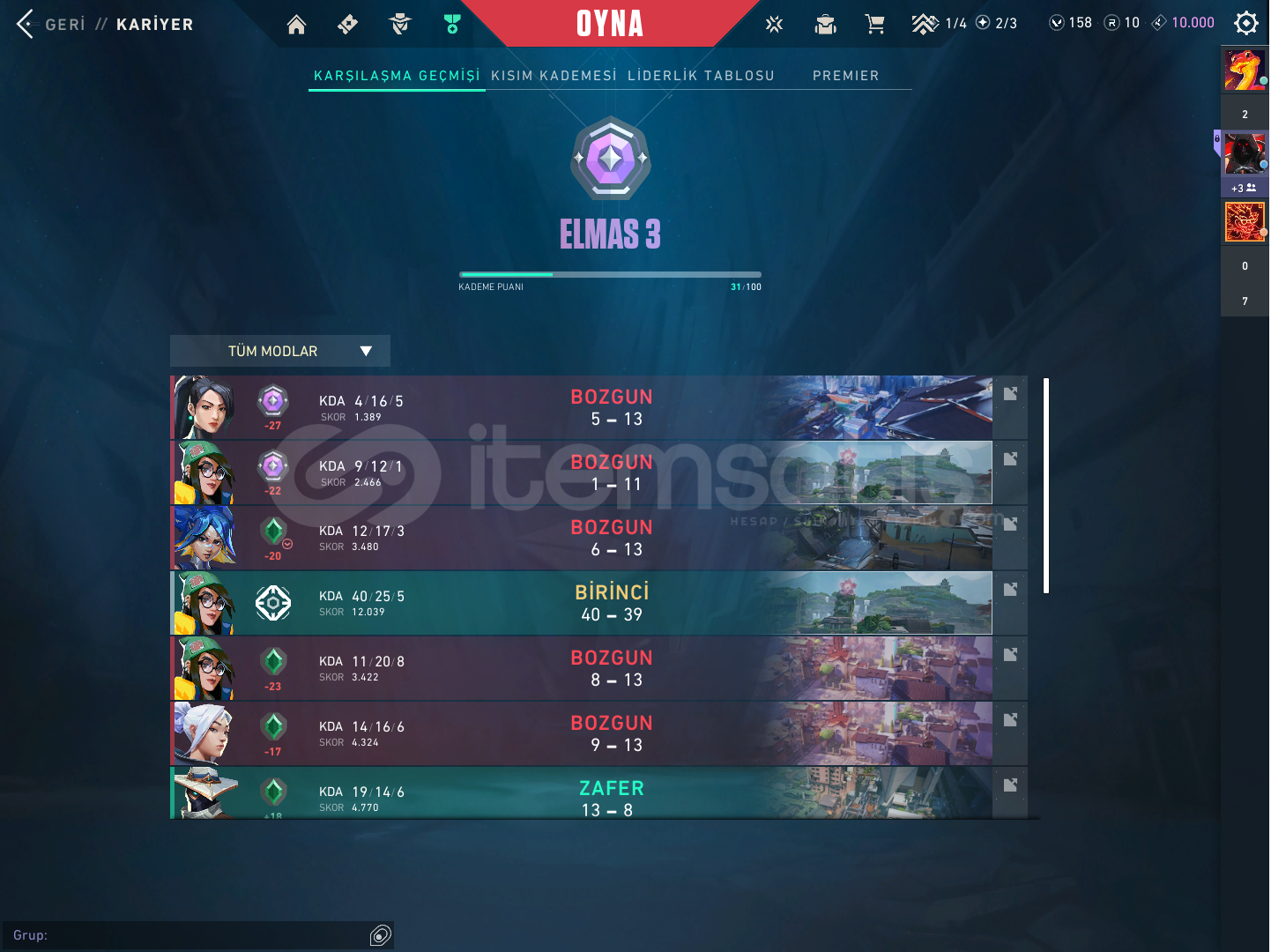 HESAP MAİN HESABIMDIR. İHTİYAÇTAN DOLAYI SATILIKTIR.HESAP DAHA ÖNCE İMMO GÖRMÜŞTÜR ŞUAN RANK DİA3SKİNLERVANDAL: YAĞMACI,ASİL,CESUR YÜREK,ONİ,İYON,KAOS,DELİPOP,EJDER,GAİA,KURONAMİ,KARABORSA,NEPTÜN,ULUPENÇE,YILDIZ BELASI,YİTİK,AEMONDIRPHANTOM: BLASTX, ANOMALİ,DELİPOP, ÖZEL HAREKAT, SERİ TETİKBIÇAKLAR: VCT LOCK İN, VCT KARAMBİT, Y...