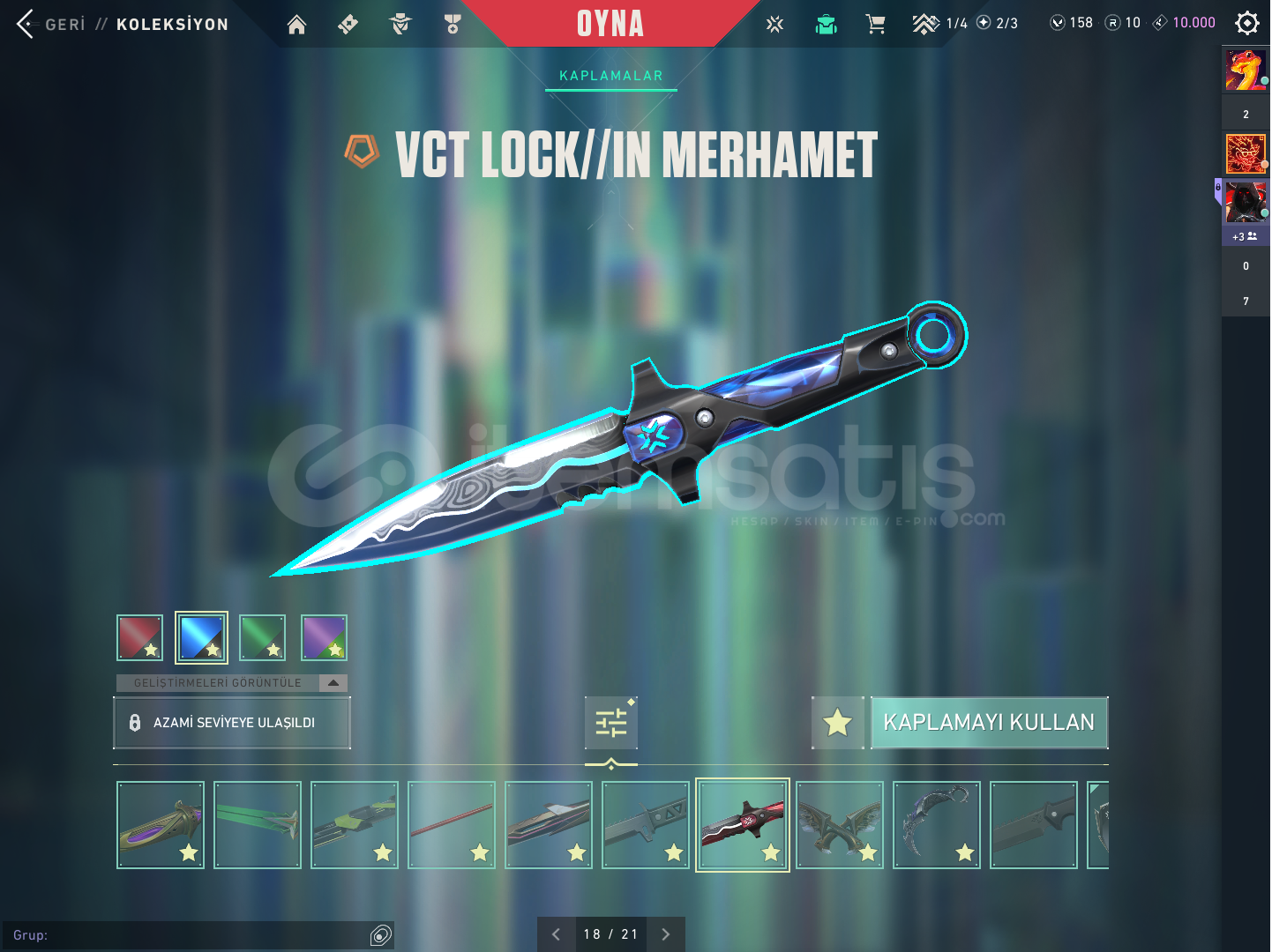 BIÇAKLAR: VCT LOCK İN, VCT KARAMBİT, YAĞMACI KARAMBİT, KARABORSA KELEBEK, RGX KATANA, UZAYLI AVCISI, RUYA SOPASI, ULUPENÇE, YADİGAR TAŞI