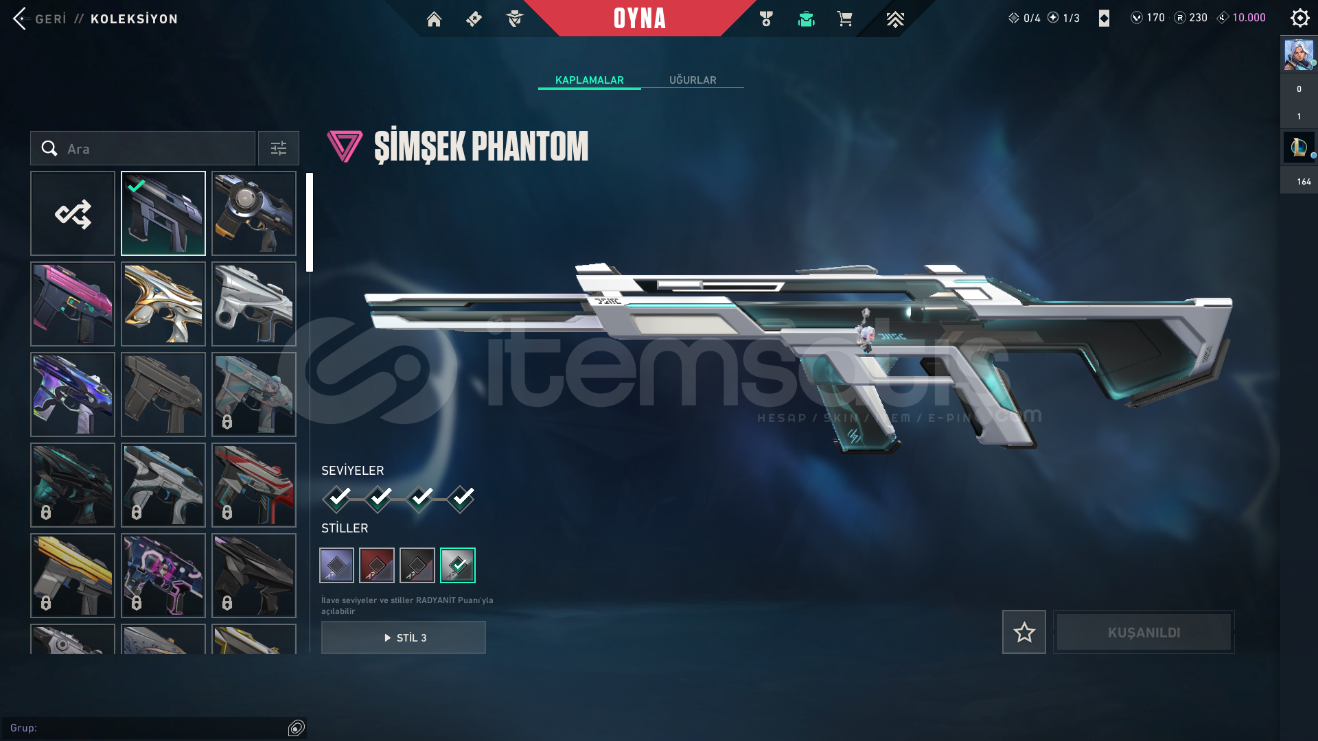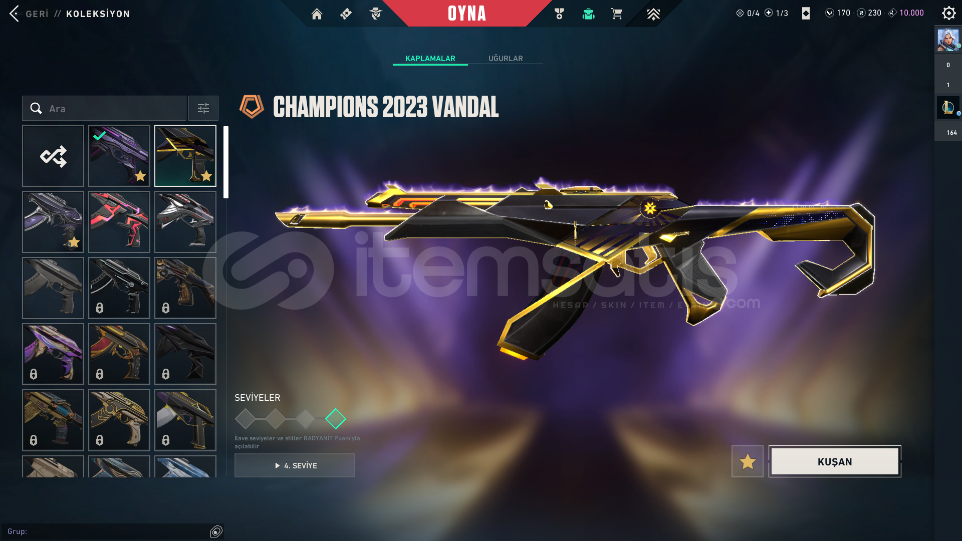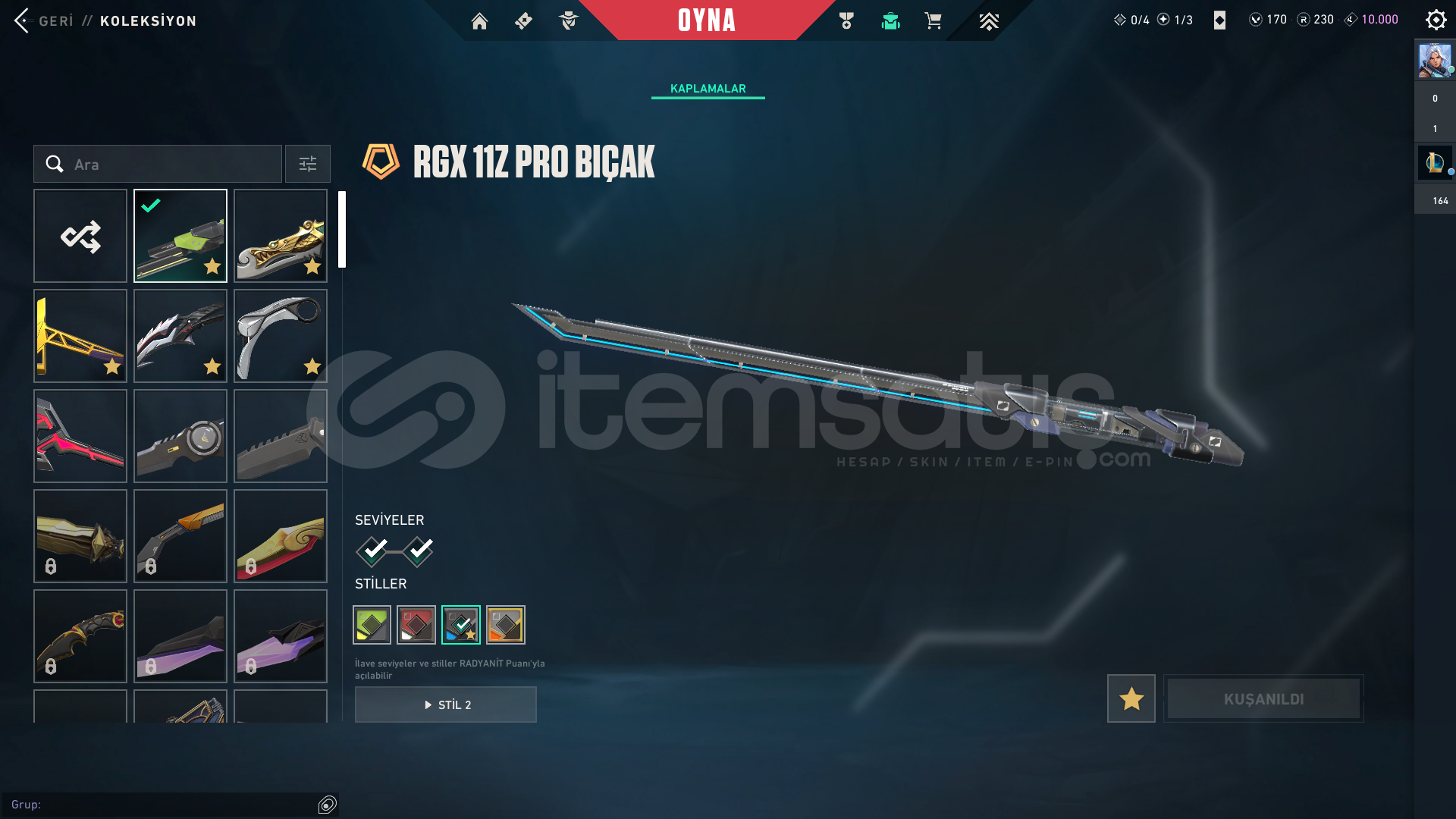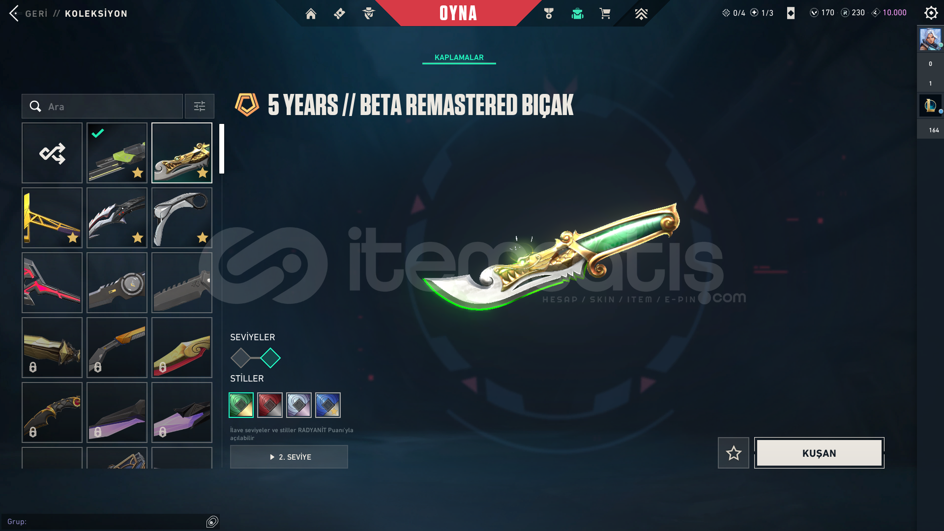 VALORANT ELMAS 1 (PEAK ELMAS3) HESAP4 SAVAŞ BILETIEXO VANDAL-CHAMPİONS 2023 VANDAL-YAĞMACI VANDALŞİMŞEK PHANTOM- İYON PHANTOM-YİTİK PHANTOMRGX KATANA-İYON KARAMBİT-ASİL BALTA-5. YIL REMASTERED BIÇAKYAĞMACI SHERRİF-SİHİRPUNK GHOSTKURONAMİ SPECTRE230 RADYANİT-170 VP- 10.000 KİNGDOM KREDİSİ