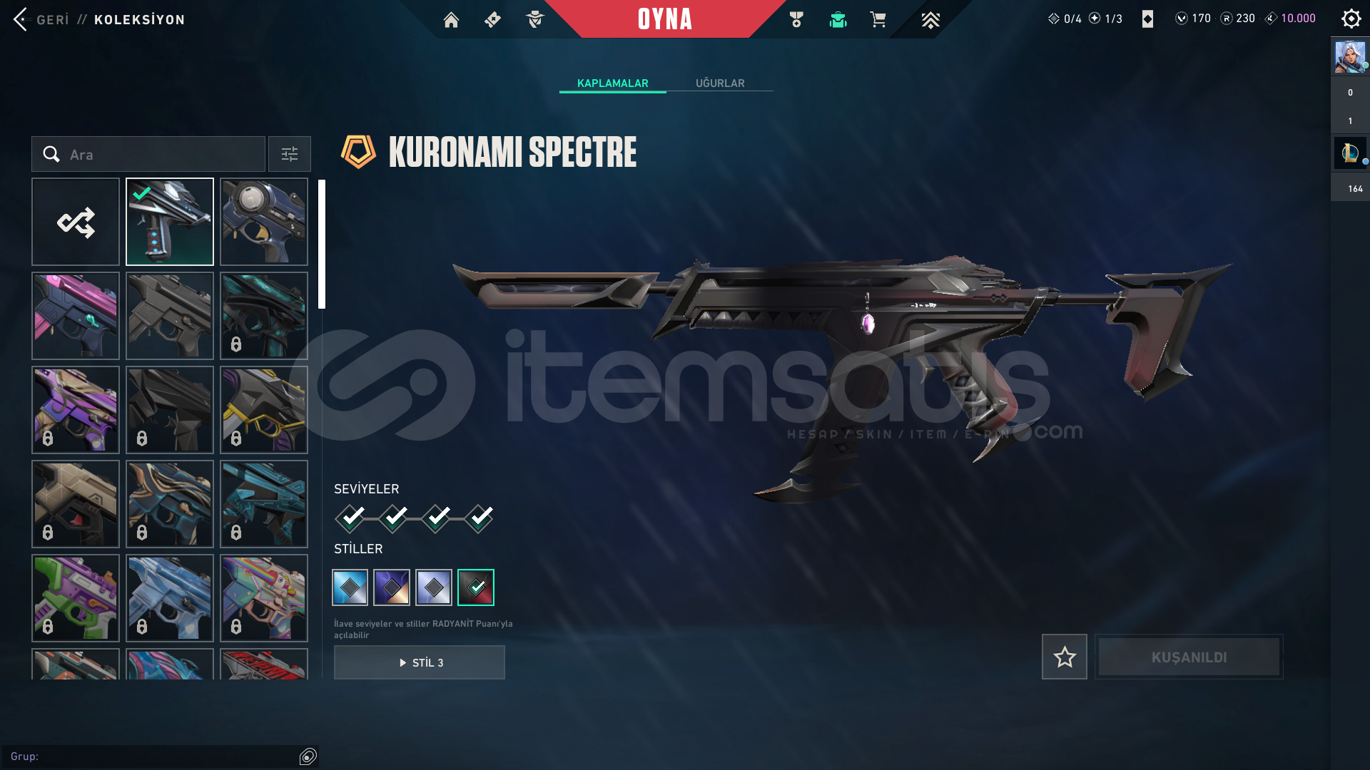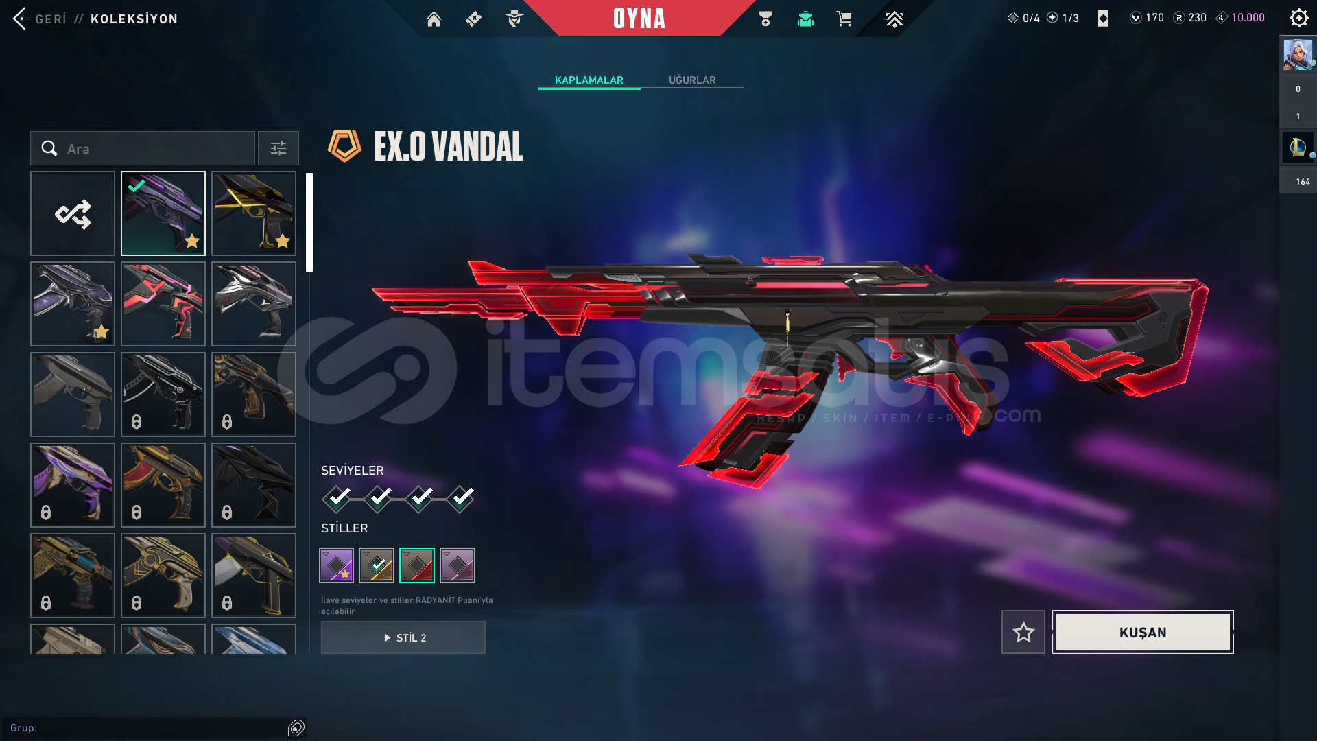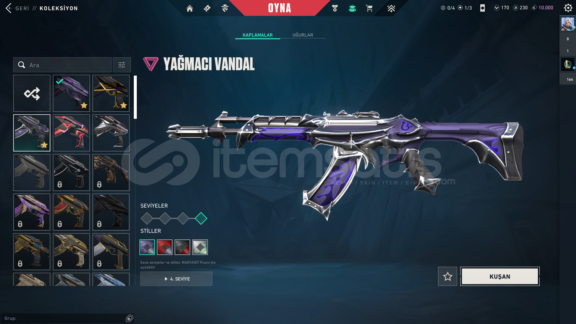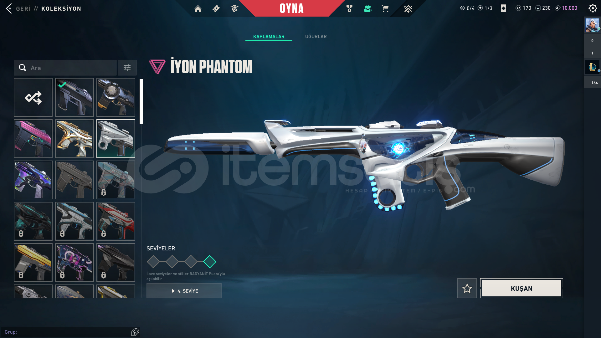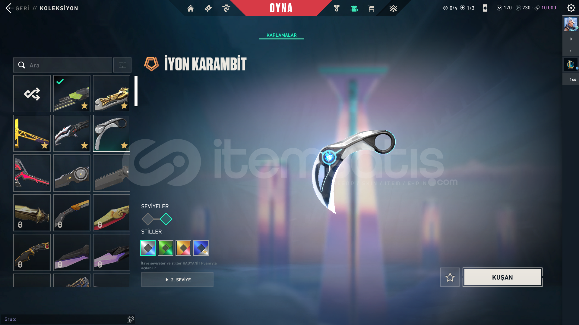 VALORANT ELMAS 1 (PEAK ELMAS3) HESAP4 SAVAŞ BILETIEXO VANDAL-CHAMPİONS 2023 VANDAL-YAĞMACI VANDALŞİMŞEK PHANTOM- İYON PHANTOM-YİTİK PHANTOMRGX KATANA-İYON KARAMBİT-ASİL BALTA-5. YIL REMASTERED BIÇAKYAĞMACI SHERRİF-SİHİRPUNK GHOSTKURONAMİ SPECTRE230 RADYANİT-170 VP- 10.000 KİNGDOM KREDİSİ