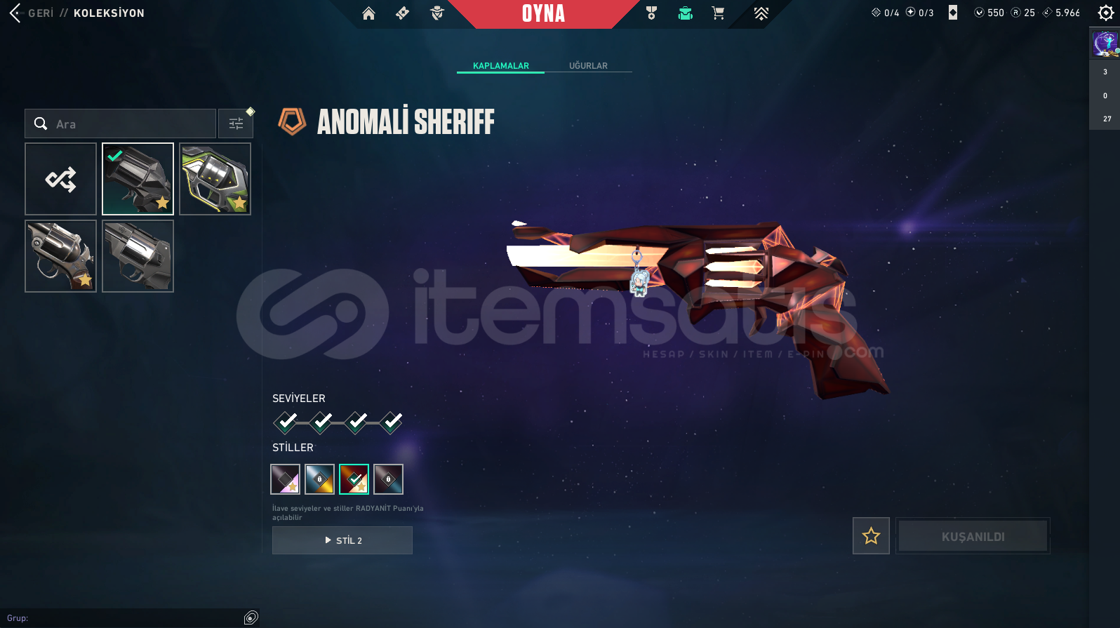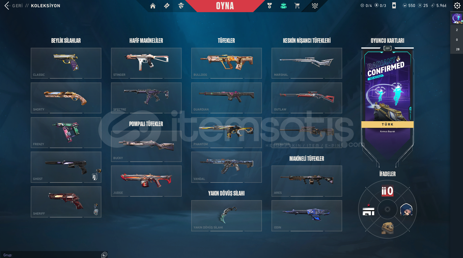 Hesap 209 Leveldir Kart Sprey Donatı Açısından Zengindir. Battle Pass Skinlerini Yazmadım Çok Fazla Olduklarından Dolayı Neredeyse Her Skinde Fazla Fazla Vardır.