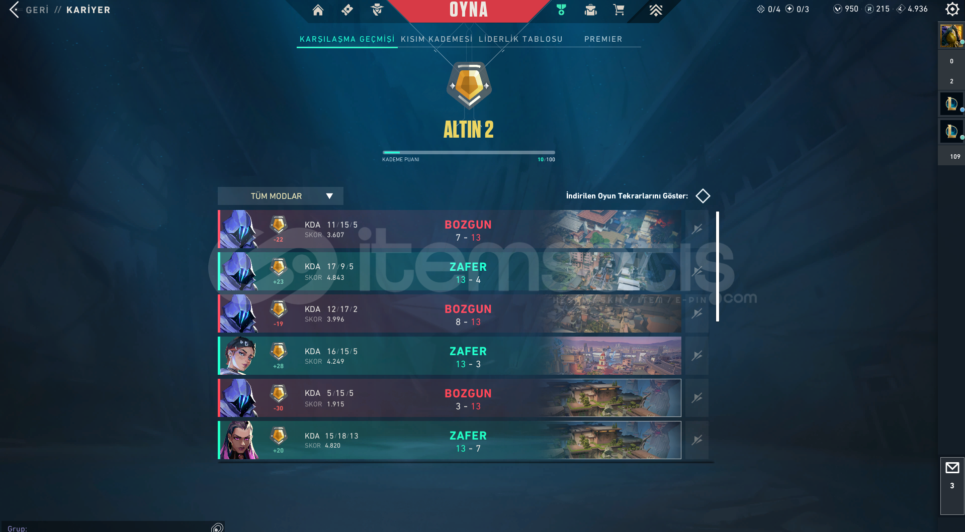 27 AJAN 31 SKİN GOLD2 HESAP