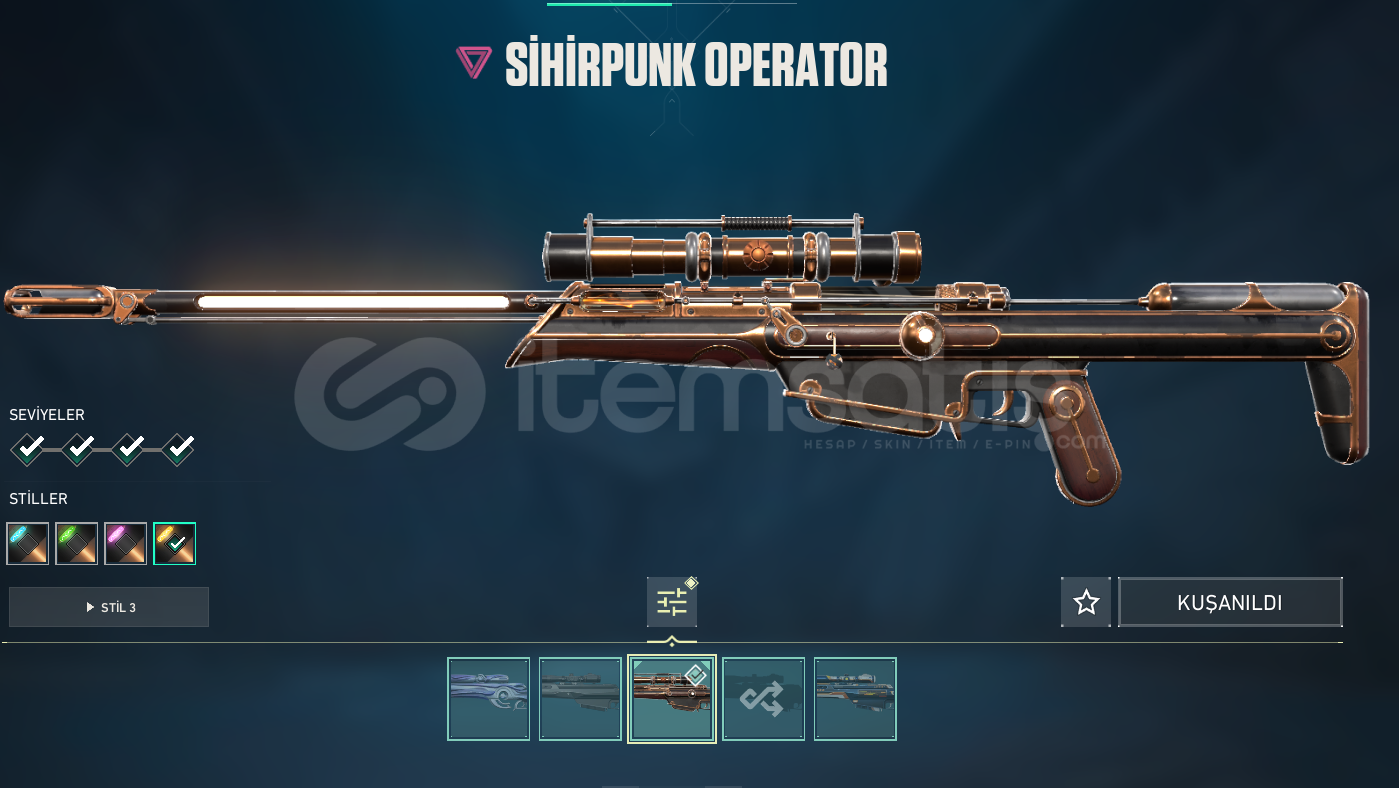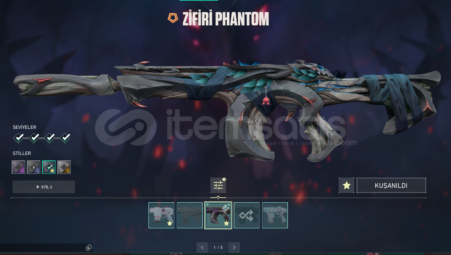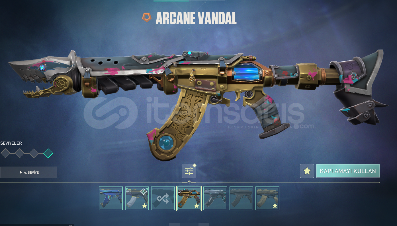 • Arcane Eldivenleri+Arcane Vandal +SihirPunk Elektro Bıçak+Spectrum Phantom +Asil Vandal+Yıldız Belası Vandal+Zifiri Phantom+SihirPunk Phantom olmak üzere 53 skin mevcuttur