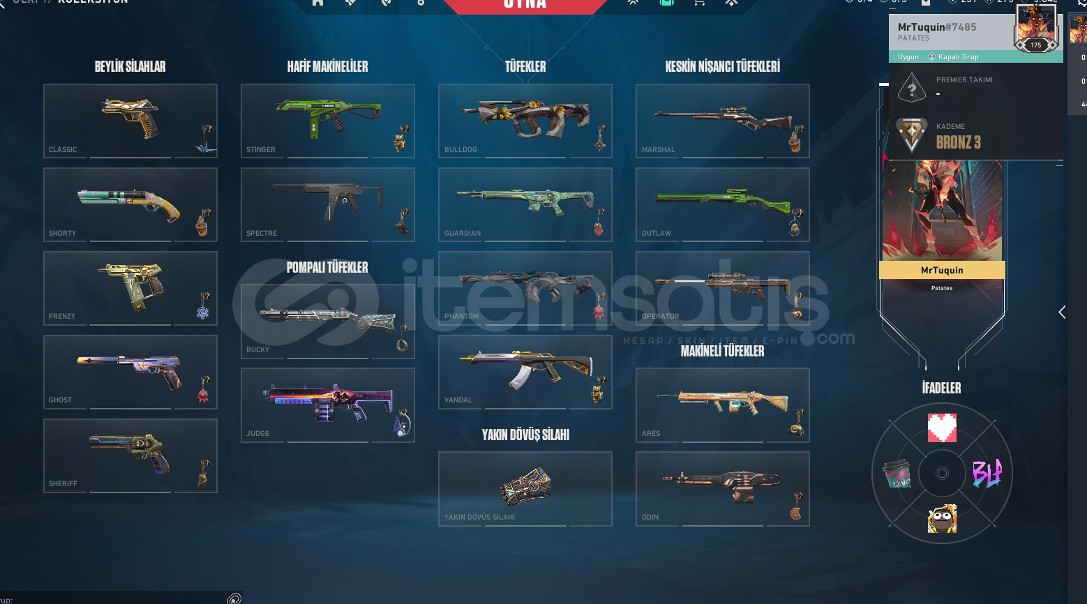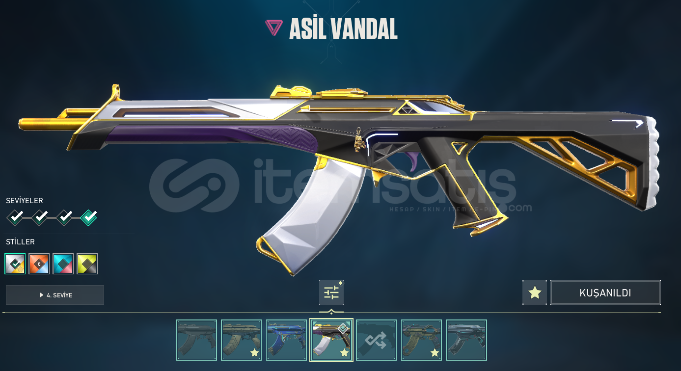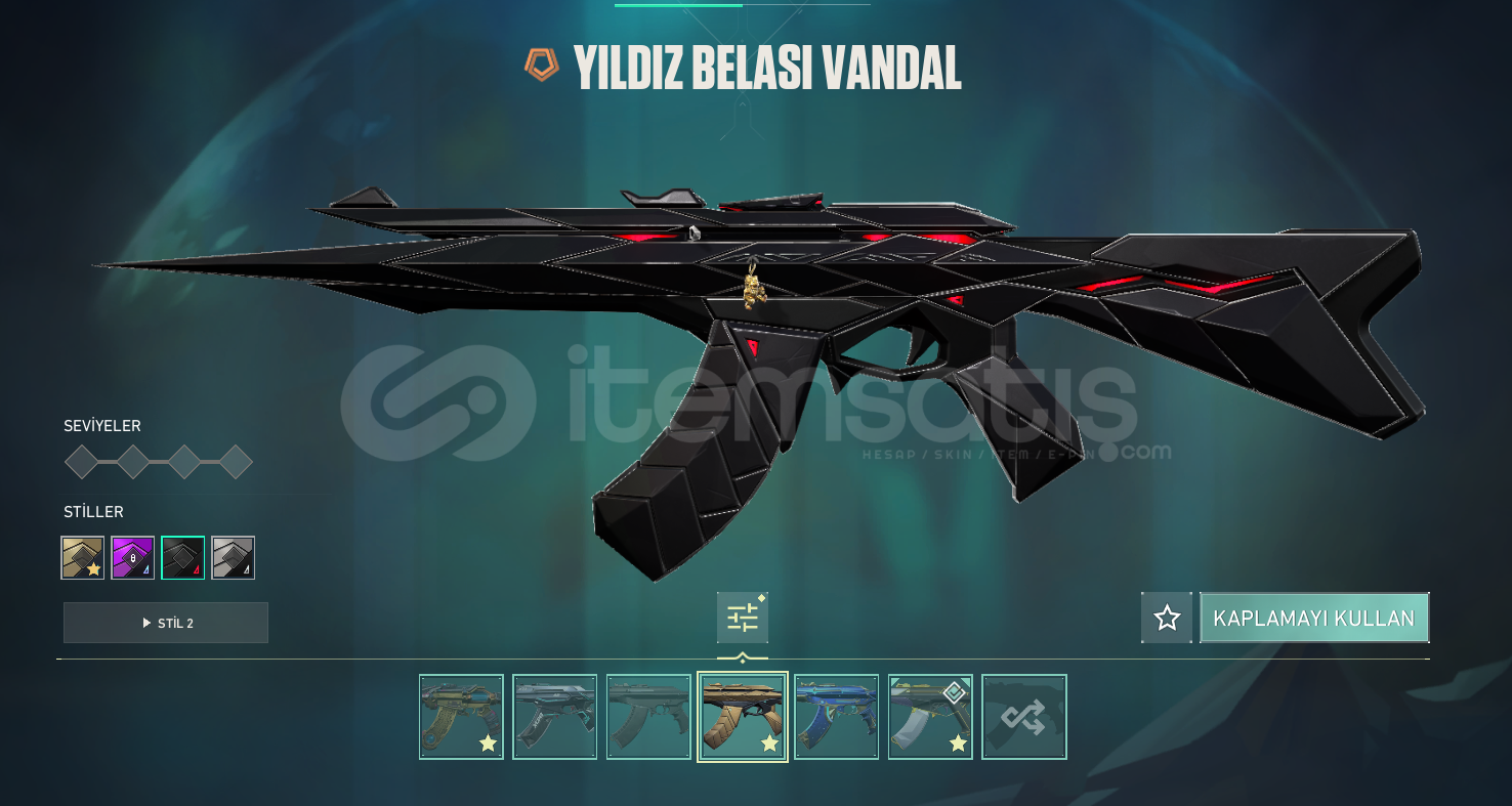 • Arcane Eldivenleri+Arcane Vandal +SihirPunk Elektro Bıçak+Spectrum Phantom +Asil Vandal+Yıldız Belası Vandal+Zifiri Phantom+SihirPunk Phantom olmak üzere 53 skin mevcuttur