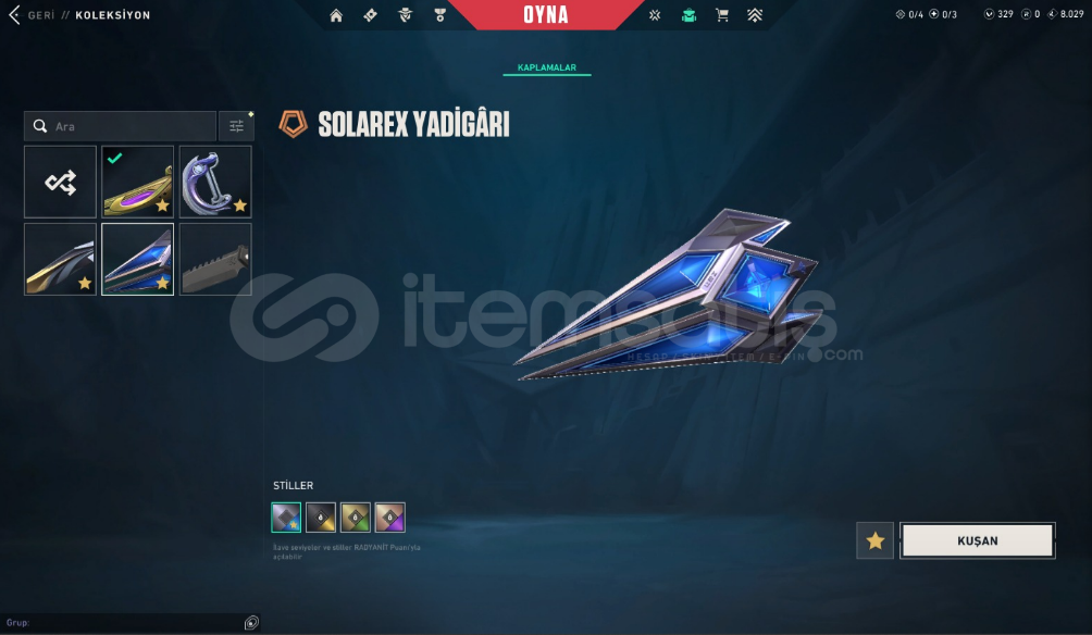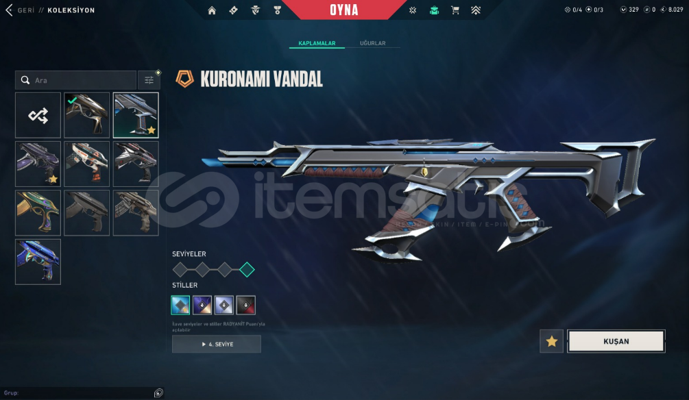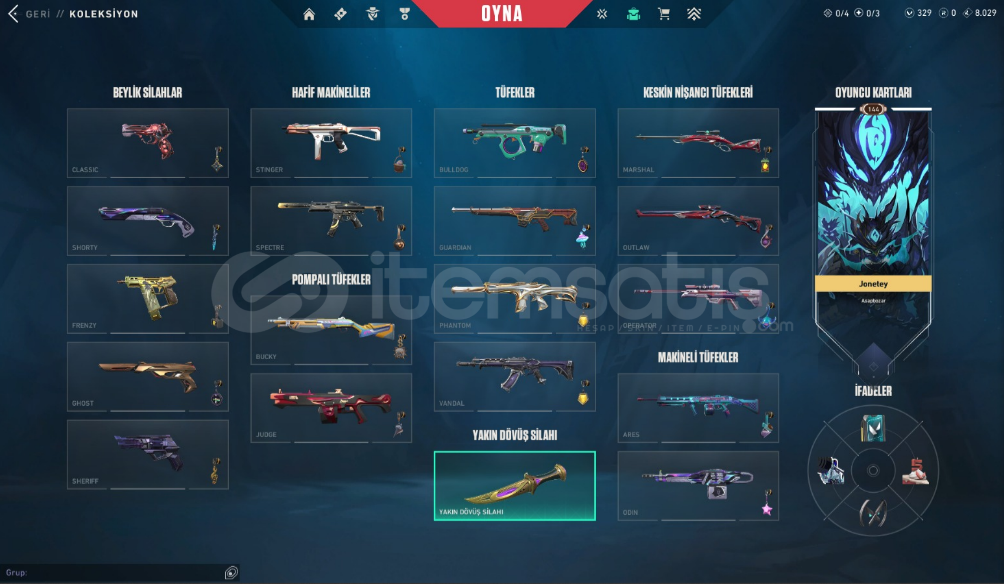 RANK:UNRANKEDLEVEL: 144ENVANTER DEĞERİ: 26,275 VP Sentinels of Light VandalKuronami VandalEX.O SheriffTilde KnifeSandswept DaggerSentinels of Light PhantomSolarex RelicIridian Thorn BladeRuination GhostAraxys PhantomSentinels of Light SpectreXERØFANG GhostOni GuardianPrime GuardianReaver VandalSovereign PhantomSpline ClassicIridian Thorn SheriffTask Force 809 SpectreByteshift JudgeSolarex SheriffVelocity PhantomByteshift VandalSolarex SpectreTilde BulldogTilde JudgeShellspi...