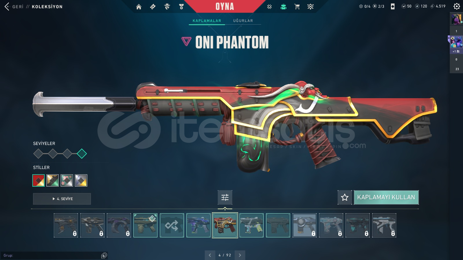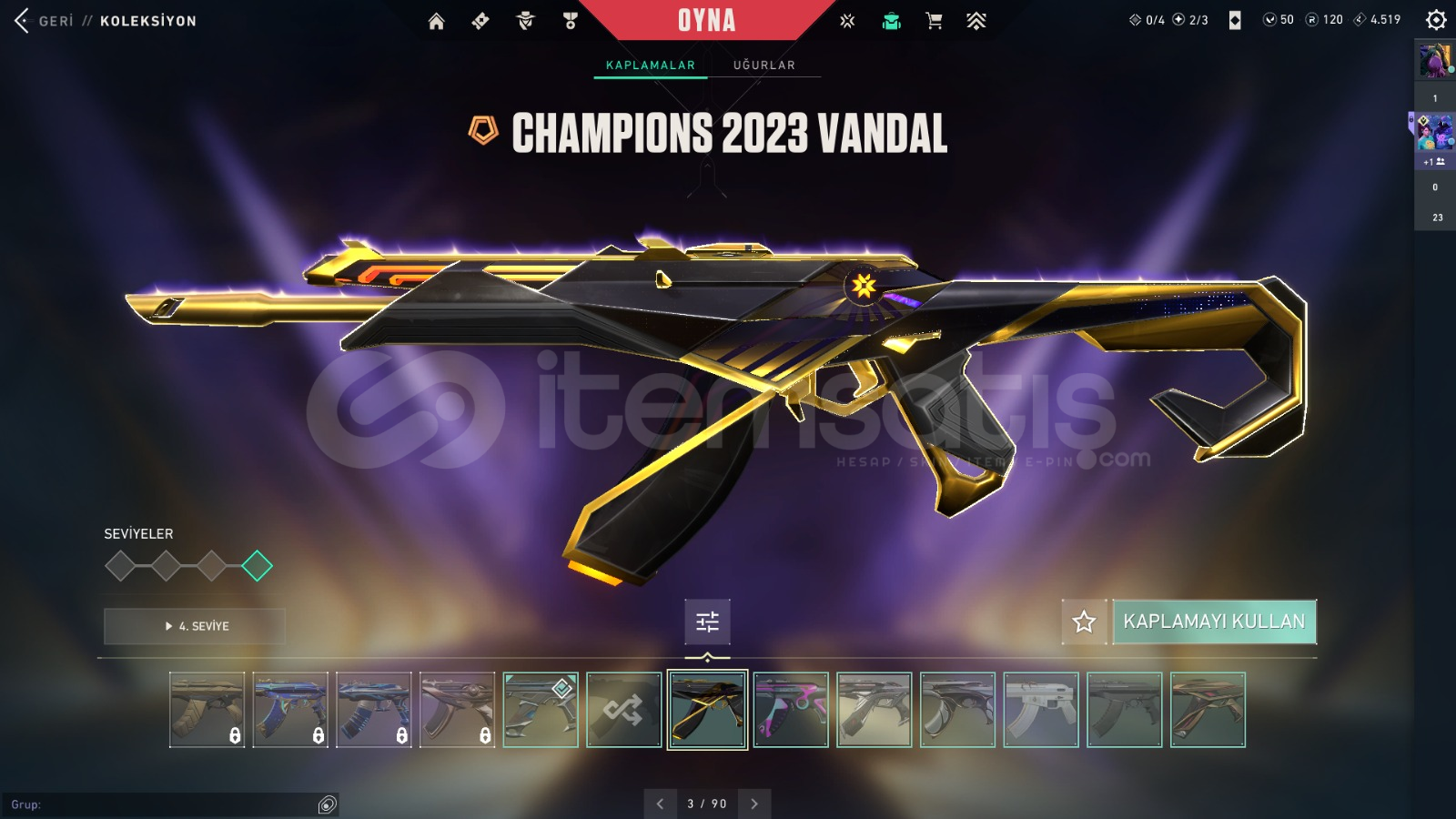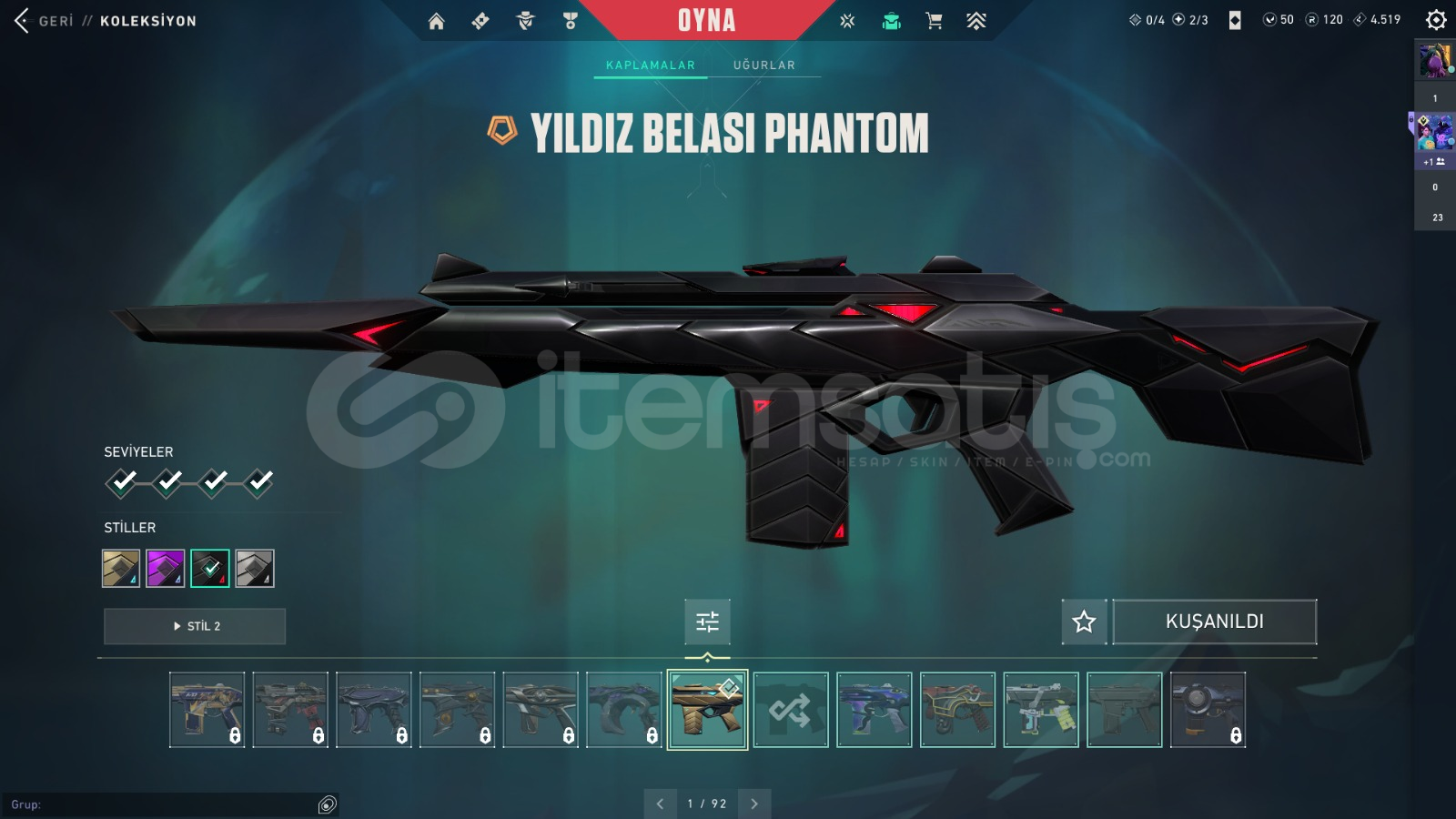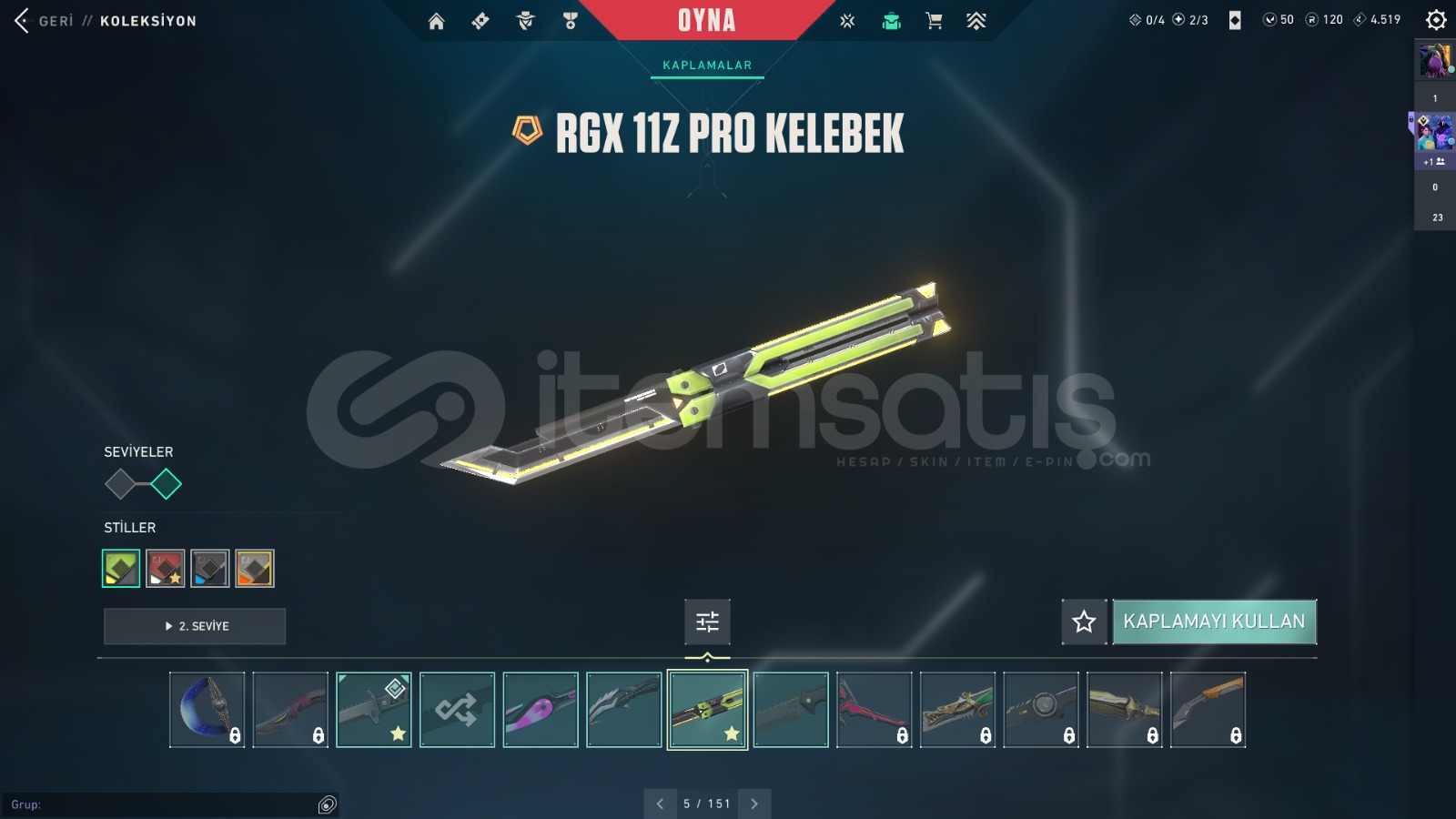SKINLERKuronami vandalChampions 23 vandalEvrim vandalFatih vandalNeptün vandalUlupençe vandalYıldız belası phantomOni phantomIşık muhafızı spectreAsil klasikYağmacı ghostIyon sheriffUzaylı avcısı bıçakRGX pro kelebek2 tane de savaş bileti satın alınıp bitirilmiştir.