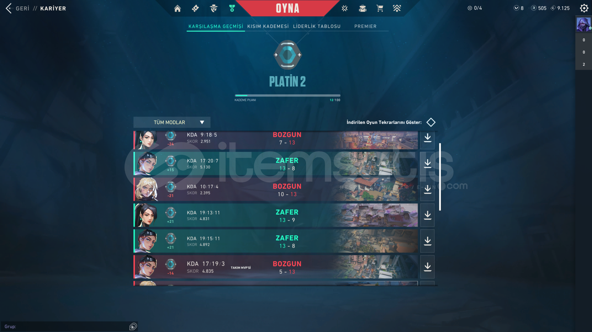 Hesapta olan skinler -Champions 2024 Seti Phantom ve Bıçak-Kaos Vandal-İyon Vandal-Yitik Vandal-Delipop Phantom-Kuronami Sheriff-1 Adet Battle Pass Plat 2 Rankı