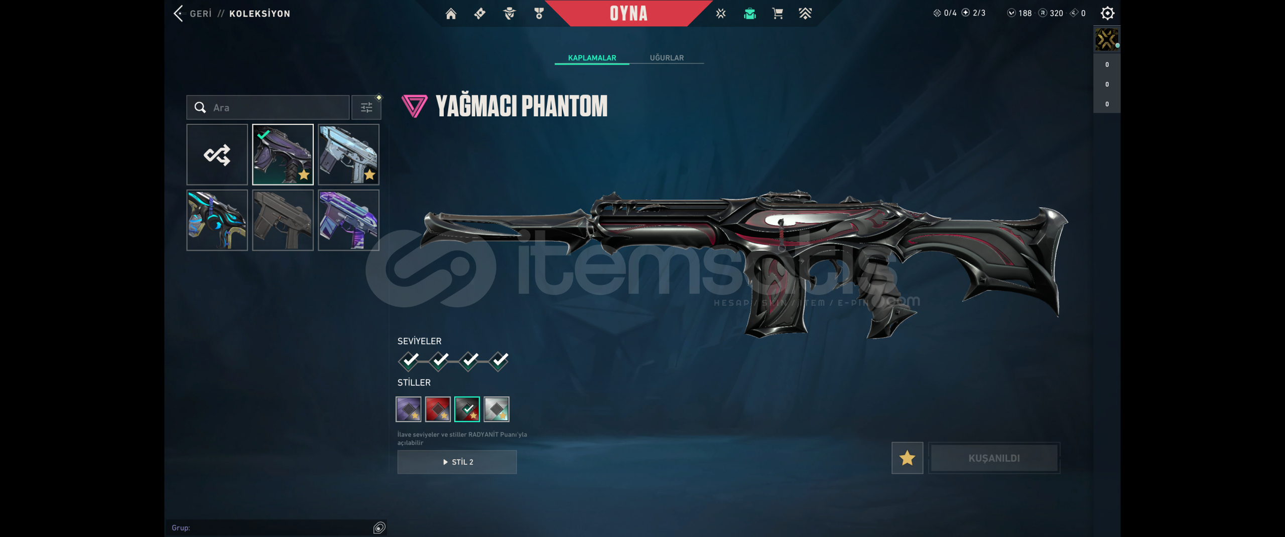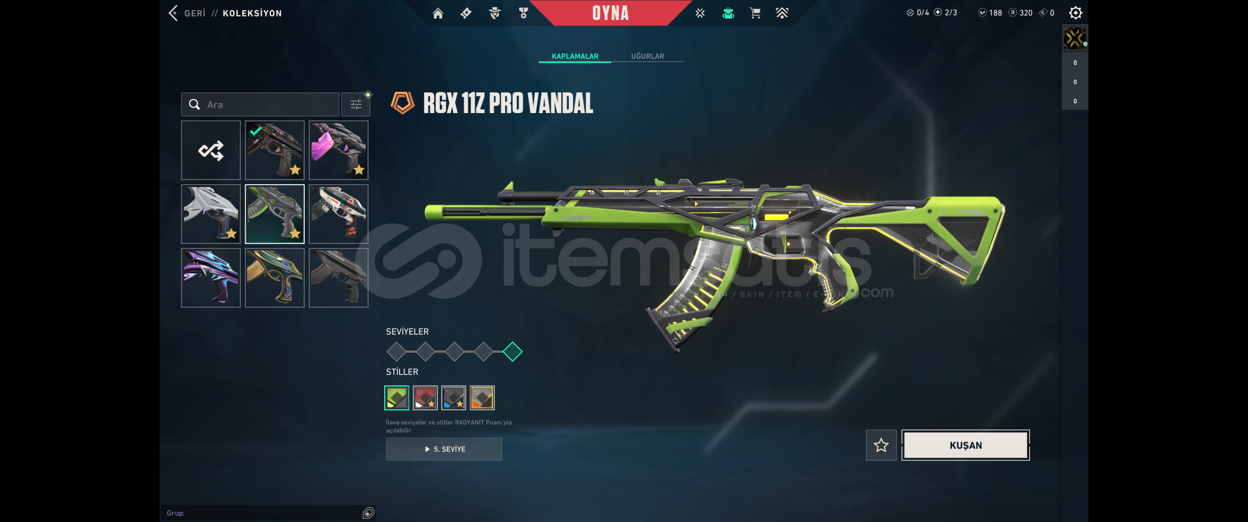 RANK: Bronz 3LEVEL: 265ENVANTER DEĞERİ: 38.518 VPKaos VandalRGX 11Z Pro VandalDolmir Vandalİyon VandalYağmacı Phantom Ejder OperatorSeri Tetik SheriffAsil KarambitRGX KelebekKıvrım BıçağıAsil BuckyVCT X Lev ClassicGaıanın intikamı ghostVe tüm diğer silahlarda sezon desenleri vardırTOPLAM: 69 Skin📌 Ürün AçıklamasıErişim ve E-Posta BilgileriSatın alma işlemi tama...