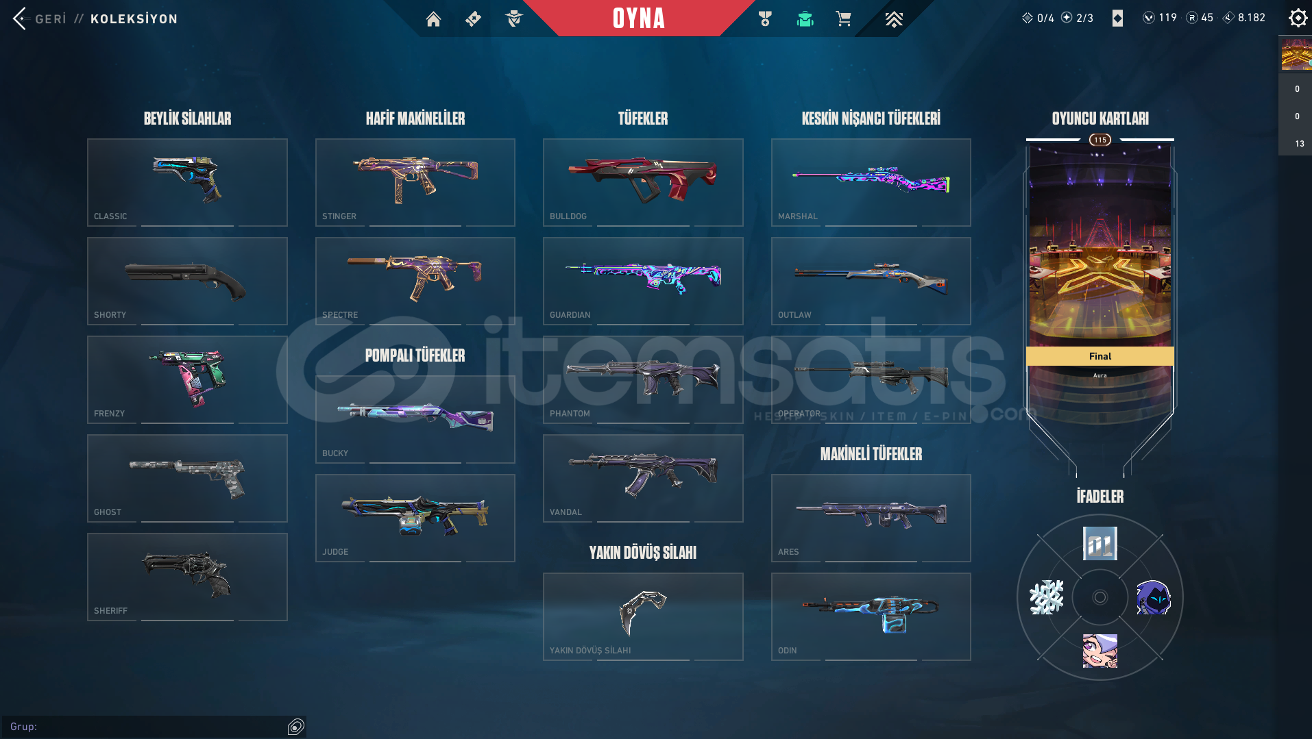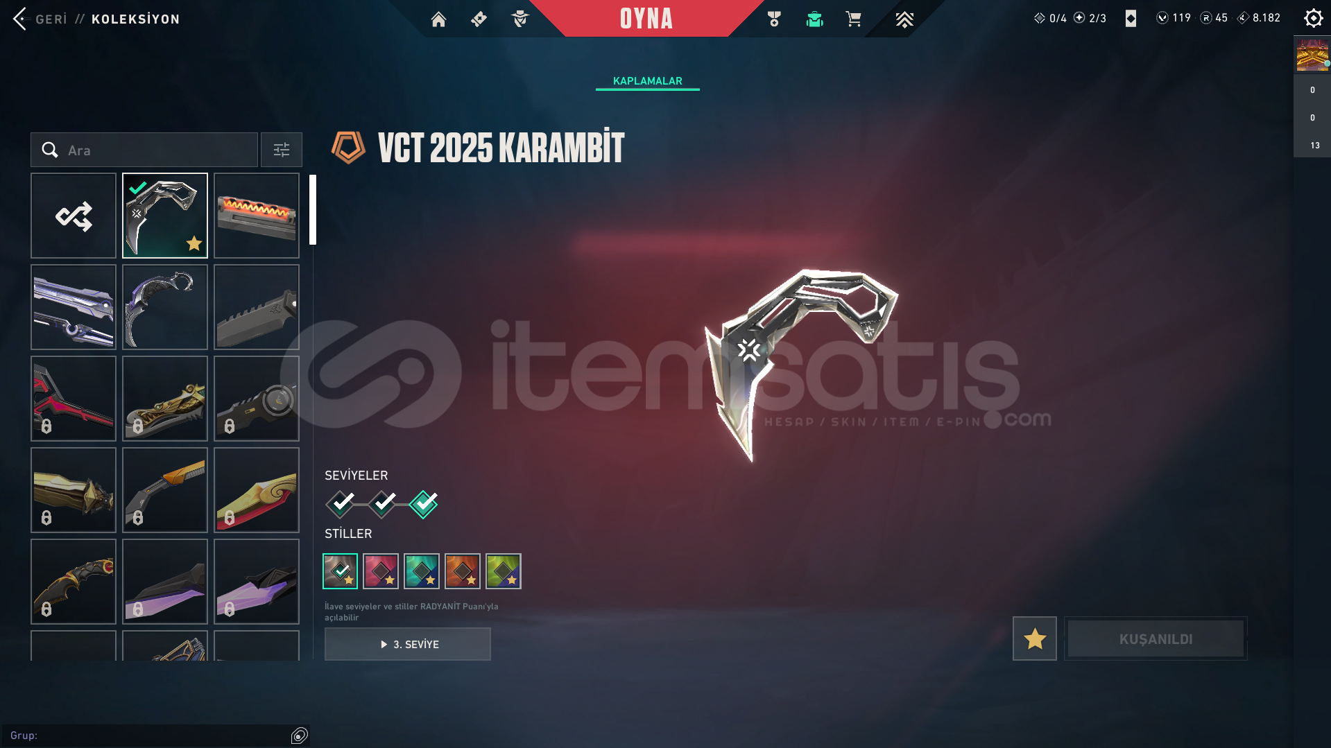 • HESAPTA VANDALDA YAKLAŞIK 4 TANE FALAN SKİN VAR