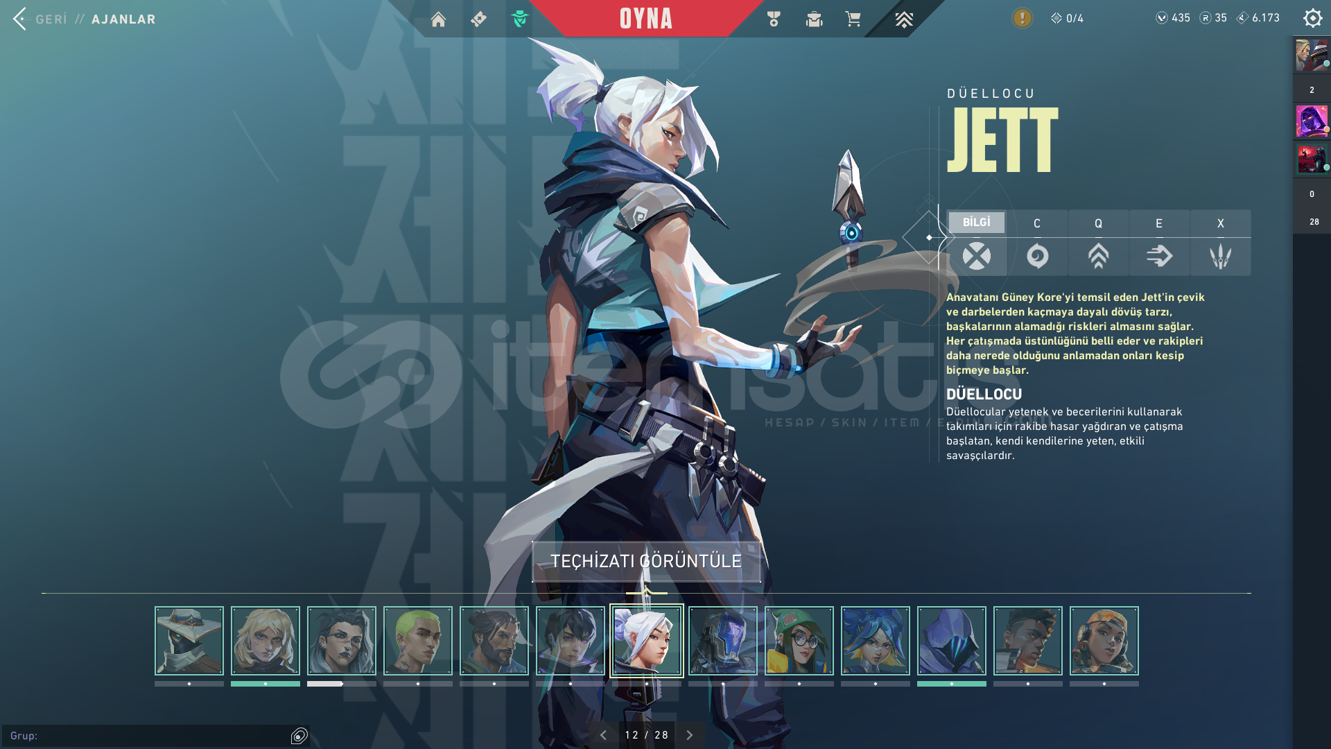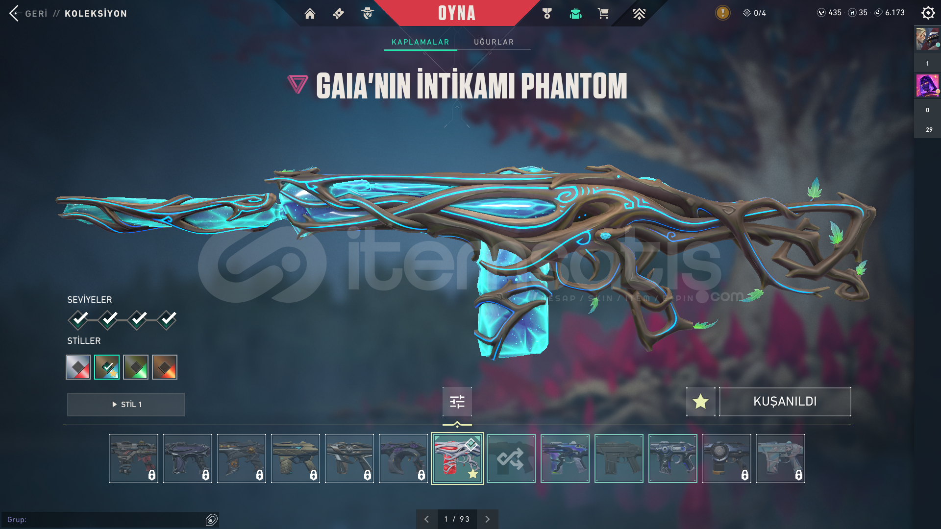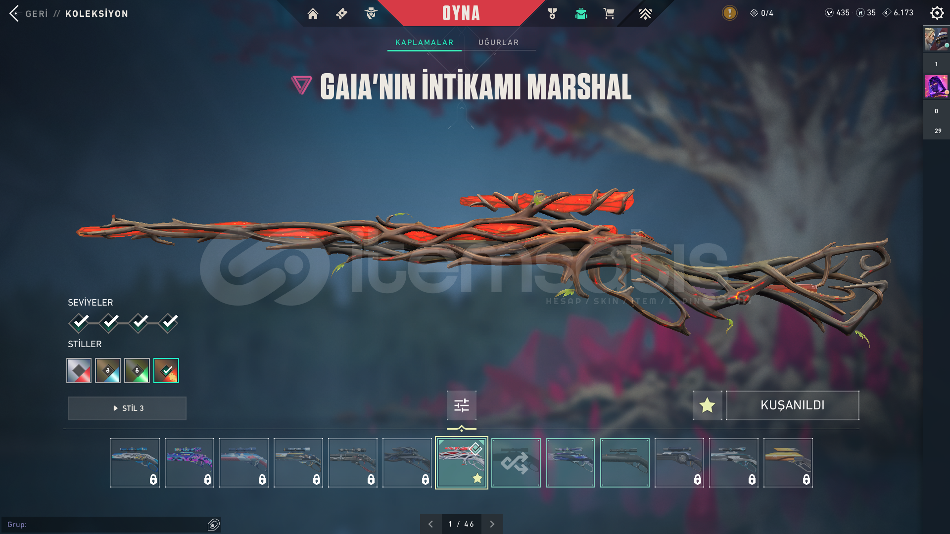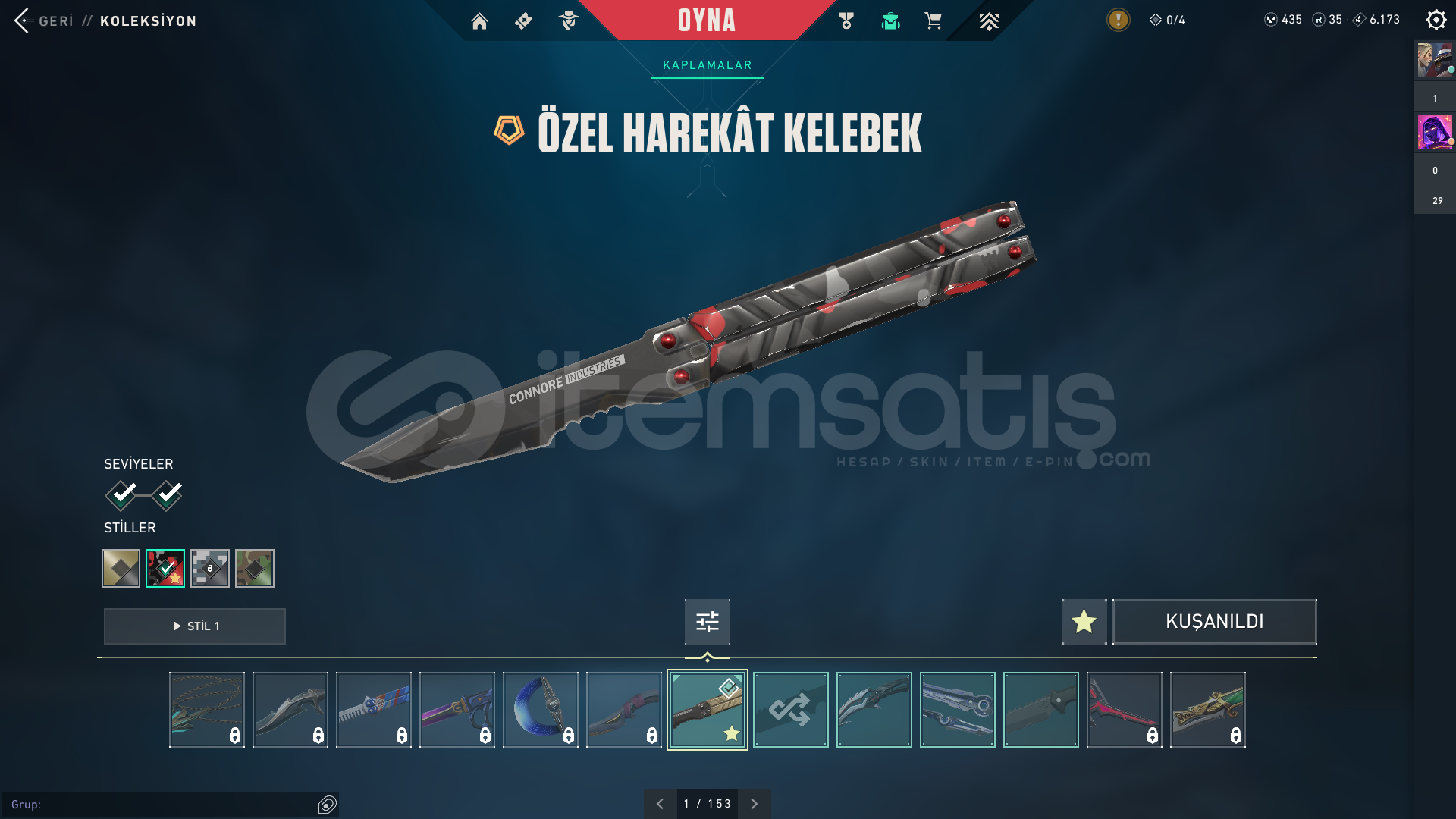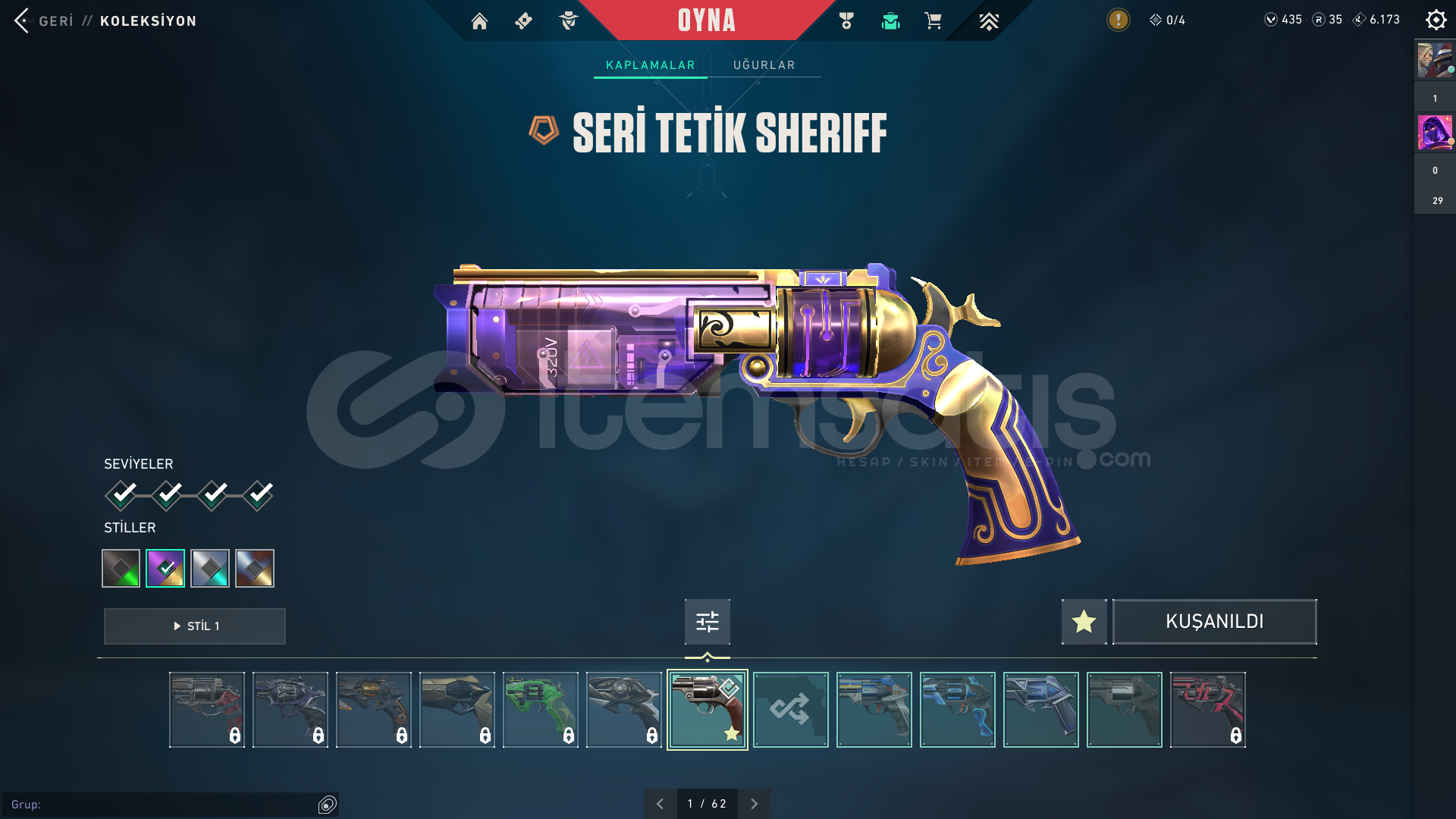 İÇERİKLER:VANDAL : YAĞMACI, CYRAX, NEPTÜNSHERİFF : SERİ TETİKPHANTOM: GAİA'NIN İNTİKAMI BIÇAK: ÖZEL HAREKAT KELEBEKMARSHALL: GAİA'NIN İNTİKAMIBU SKİNLER DIŞINDA HER SİLAHTA BATTLEPASS SKİNİDE BOLCA VARDIR.TÜM AJANLAR AÇIKTIR : OMEN VE DEADLOCK TEÇHİZATI FULLENMİŞTİR.EKSTRADAN 435 VP VARDIR HESAPTA.TELEFON ONAYLANMAMIŞTIR İLK SİZ ONAYLA...