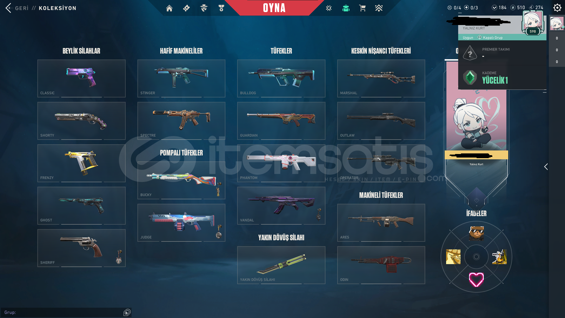 77350 TOTAL VP HARCANMIŞTIRPeak Rank: ASCENDANT 2Bıçak : RGX 11z Pro Firefly, Prime//2.0 Karambit, Glitchpop DaggerVandal : RGX 11z Pro Vandal, Glitchpop Vandal, Prime Vandal, EX.O Vandal, Araxys Vandal, Reaver Vandal, Elderflame VandalPhantom : Ruination Phantom, Singularity Phantom, Ion Phantom, Silvanus Phantom, Spectrum Phantom, Prime//2.0 PhantomGhost : Infantry Ghost, Ruination Ghost, Sovereign GhostSheriff : Reaver Sheriff, Convex Sheriff, Singularity Sheriff, Neo Frontie...