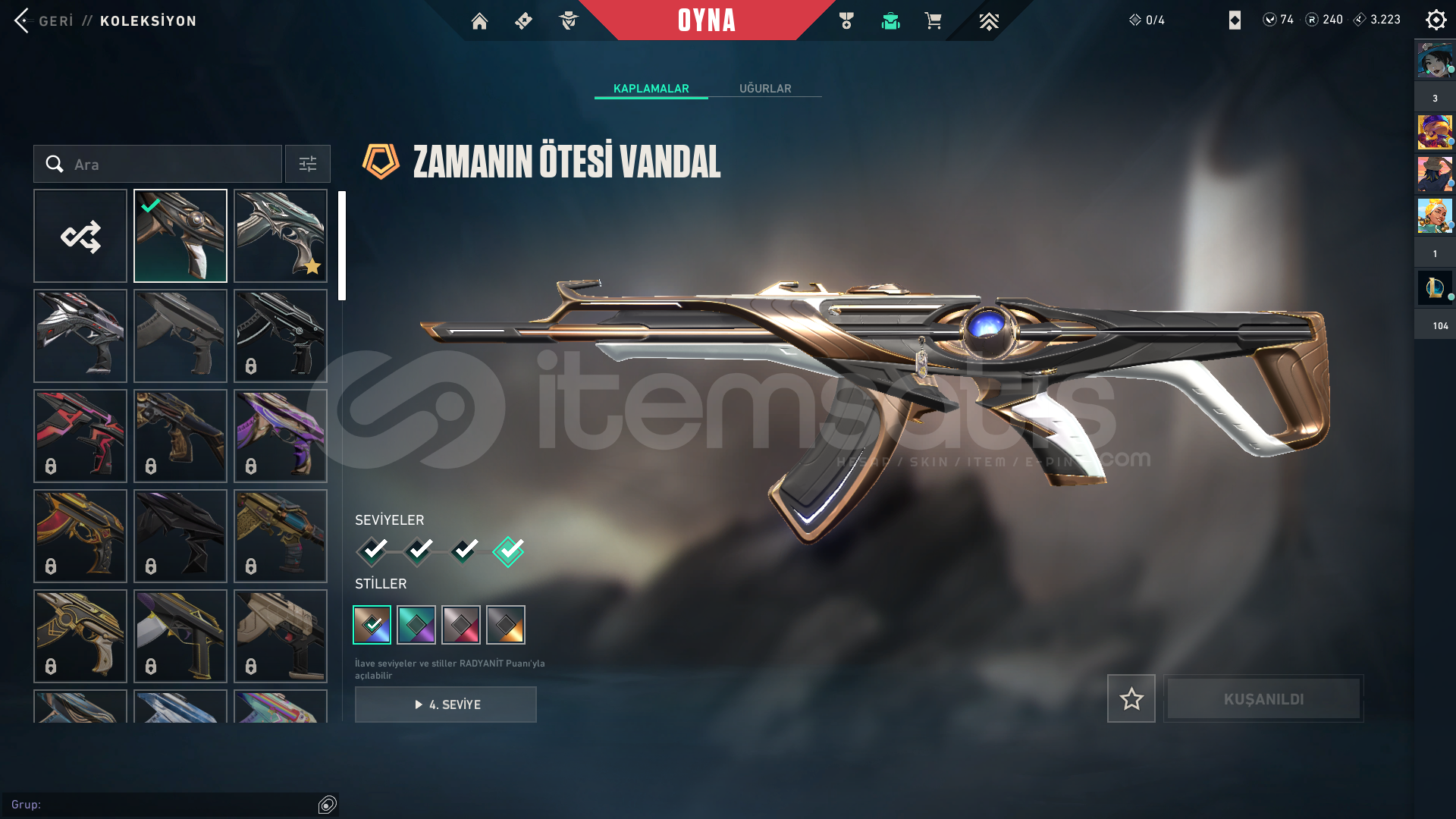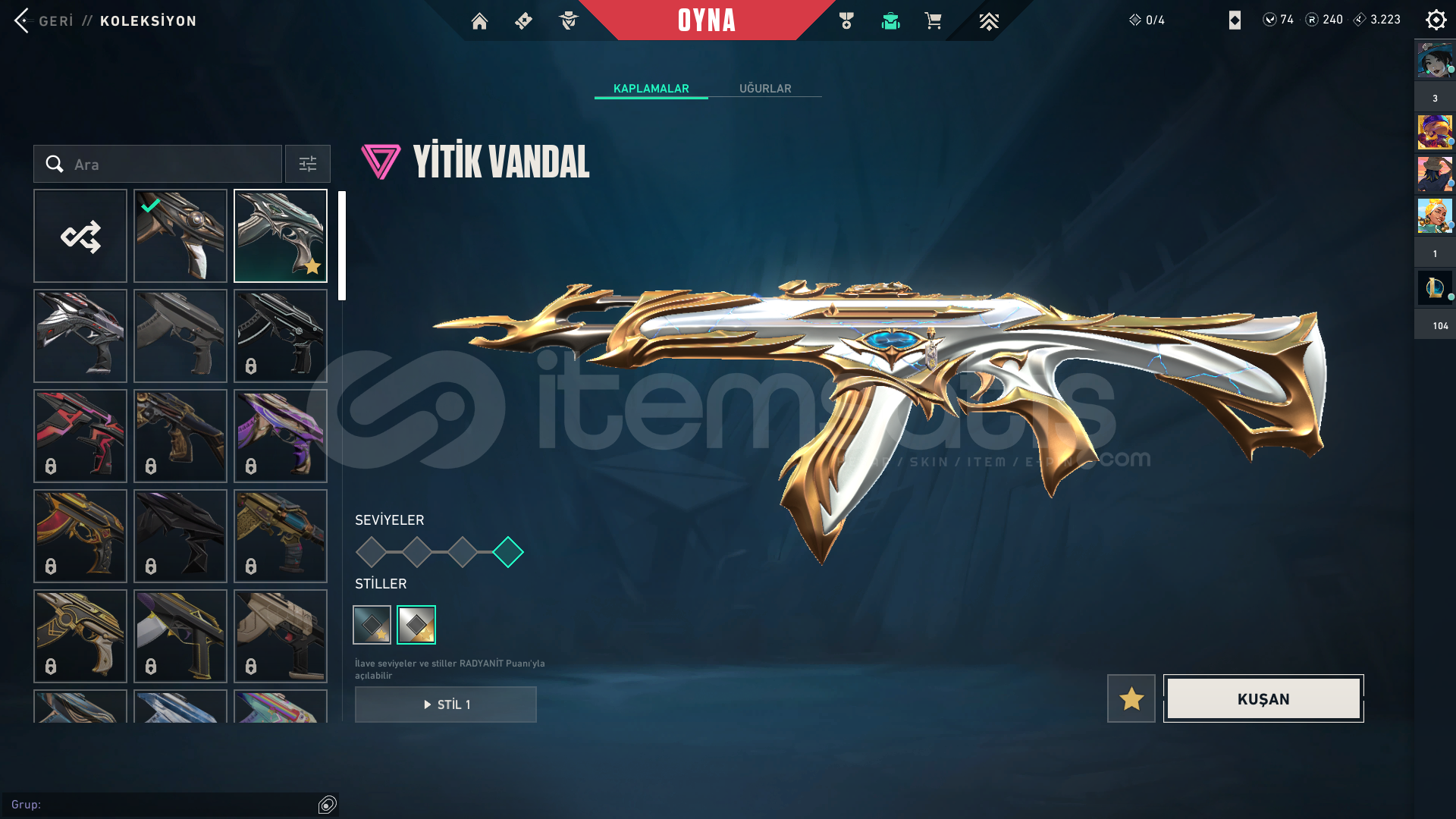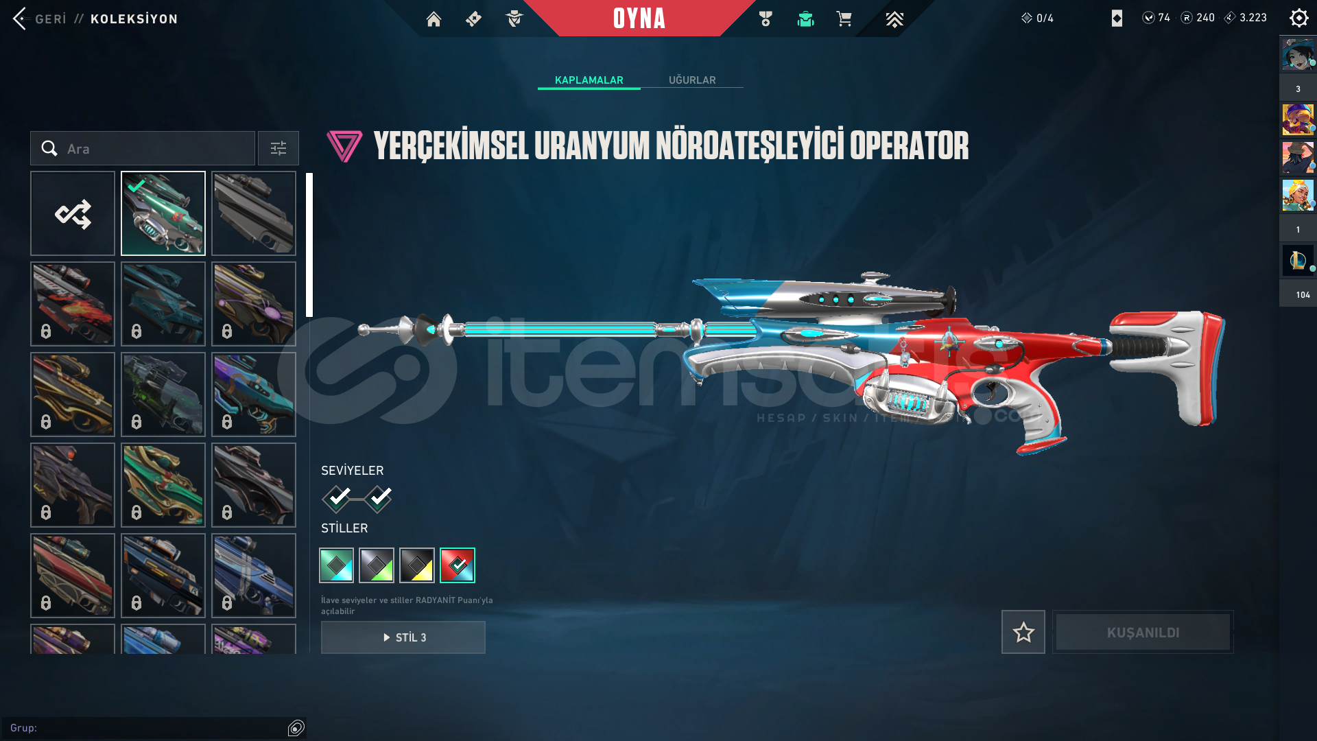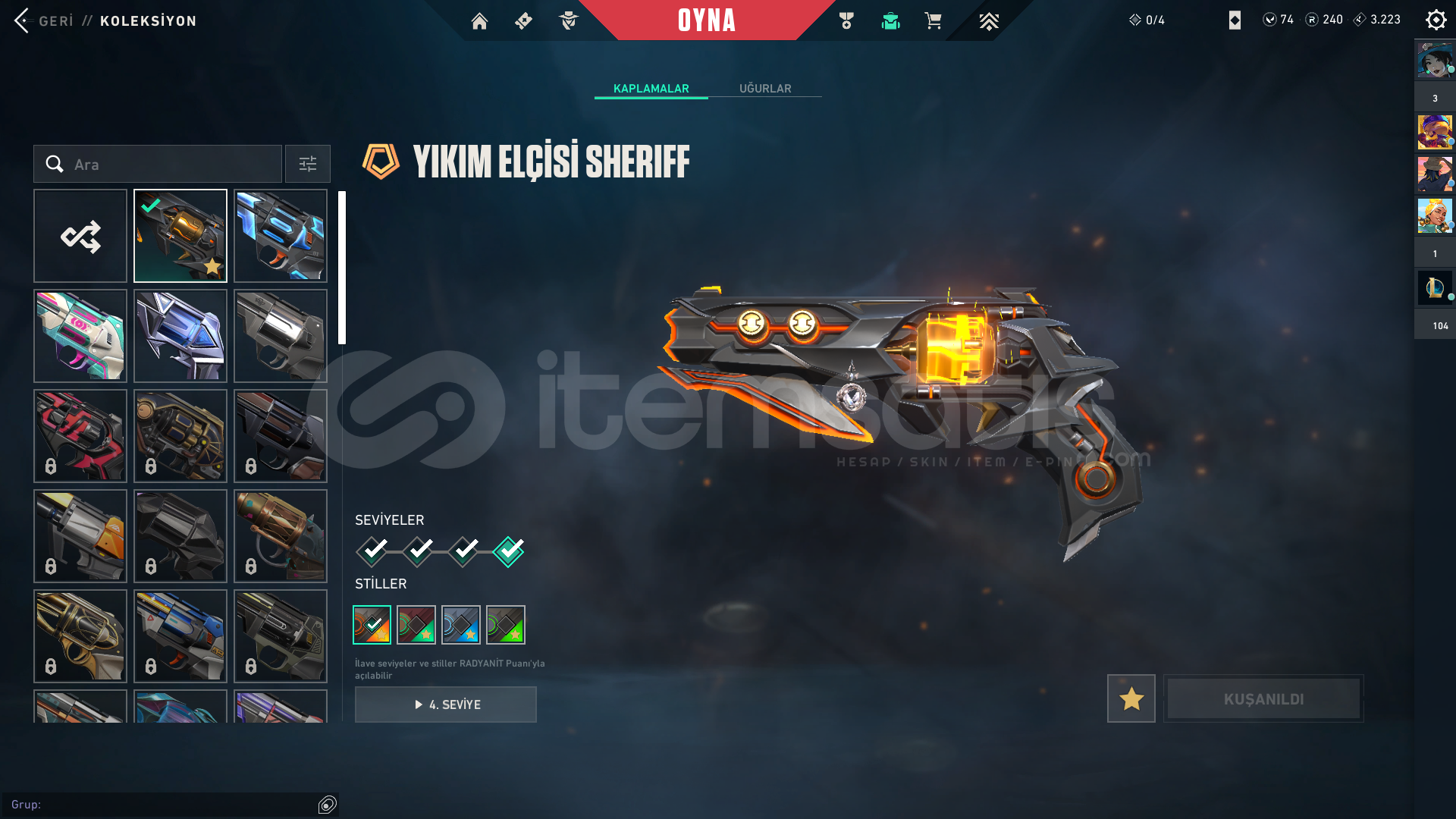HESAPTAKİ ÜCRETLİ SKİNLER;
