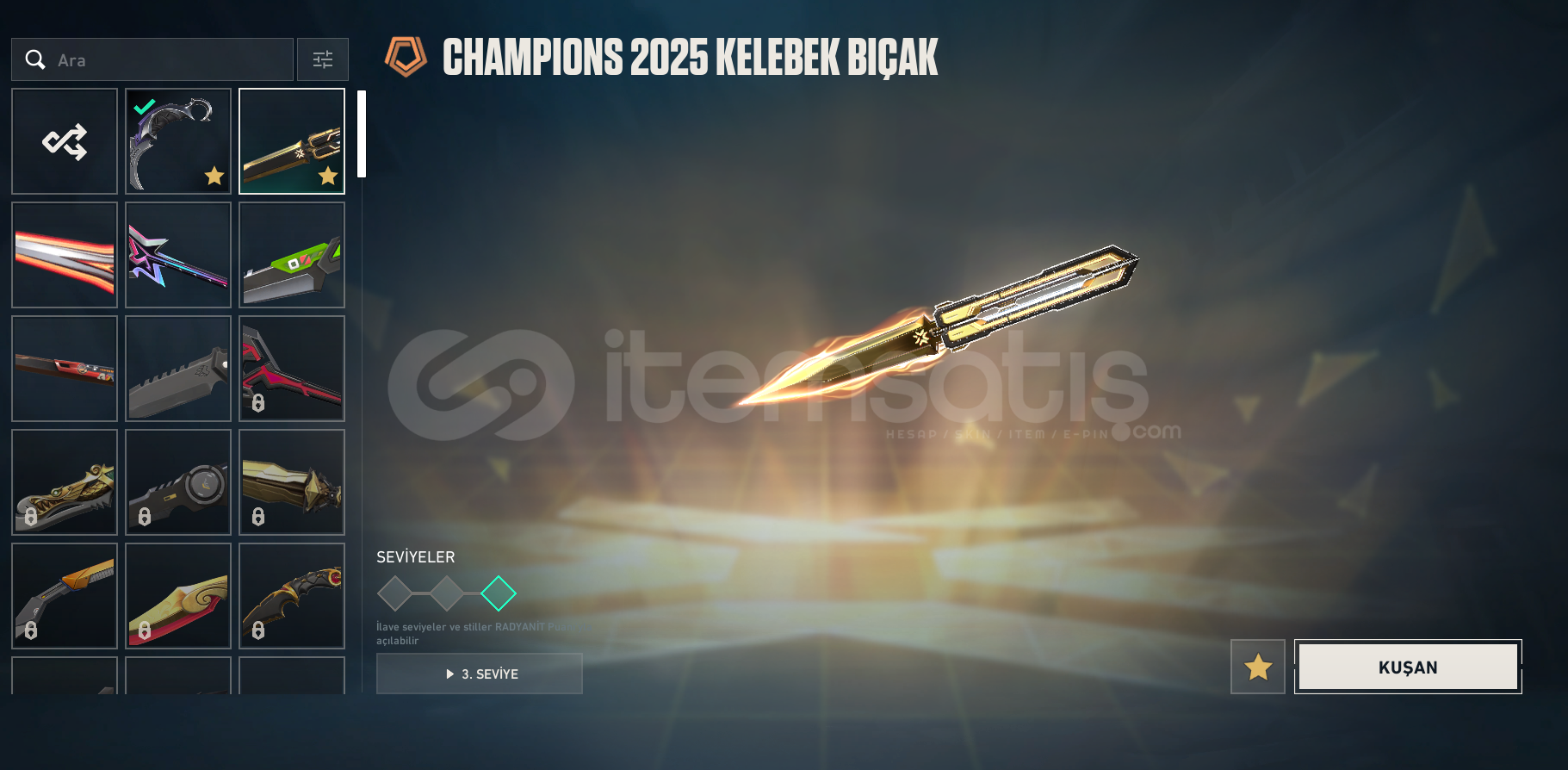 Hesapta:Anomali GhostKuronami SheriffKuronami SpectreAsil GuardianAsil PhantomChampions 2025 VandalChampions 2025 KelebekYağmacı KarambitSürat Canavarı Kılıcı bulunmaktadır.Hesapta herhangi bir sorun yoktur.Eğer bir sorun olursa 7/24 yardımcı olunur.Pazarlık payı vardır.LyroxMedia güvencesiyle...