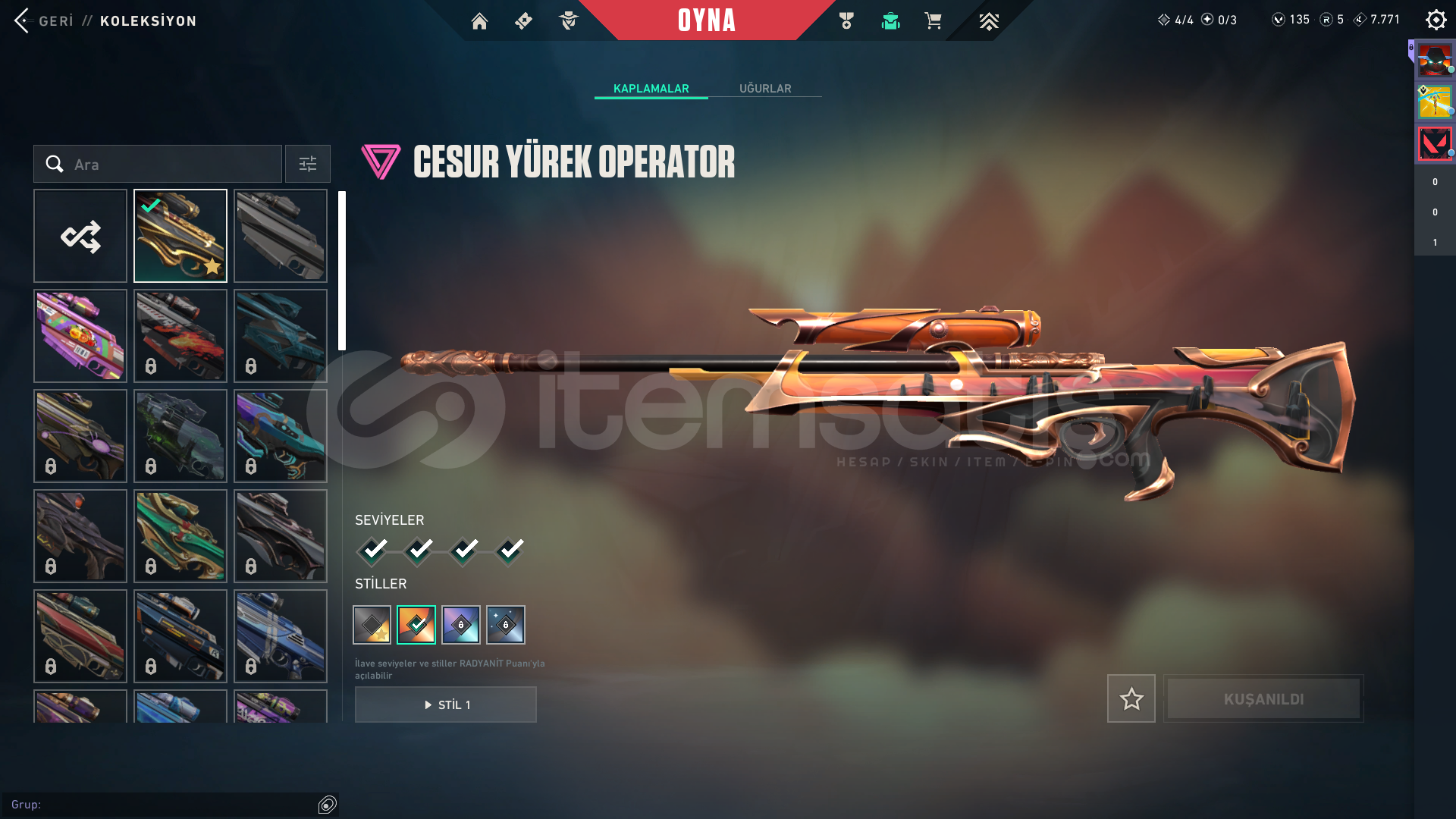 mükemmel hesap uygun fiyata pazarlık olur yardımcı oluruz alan yaşadıVandal: anomali ışık muhafızıphantom: yıldız belasıop: cesur yüreksherif: protokolbıçak: anomali kelebek rgx katana