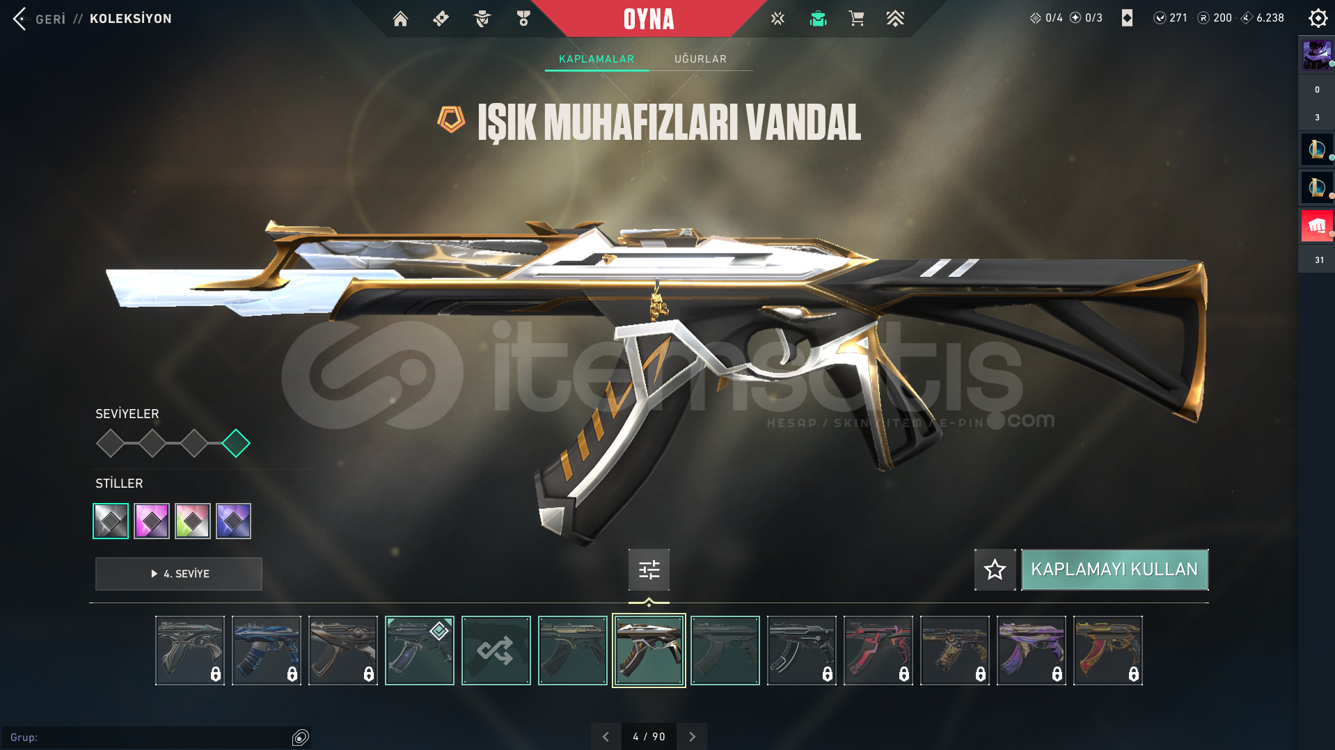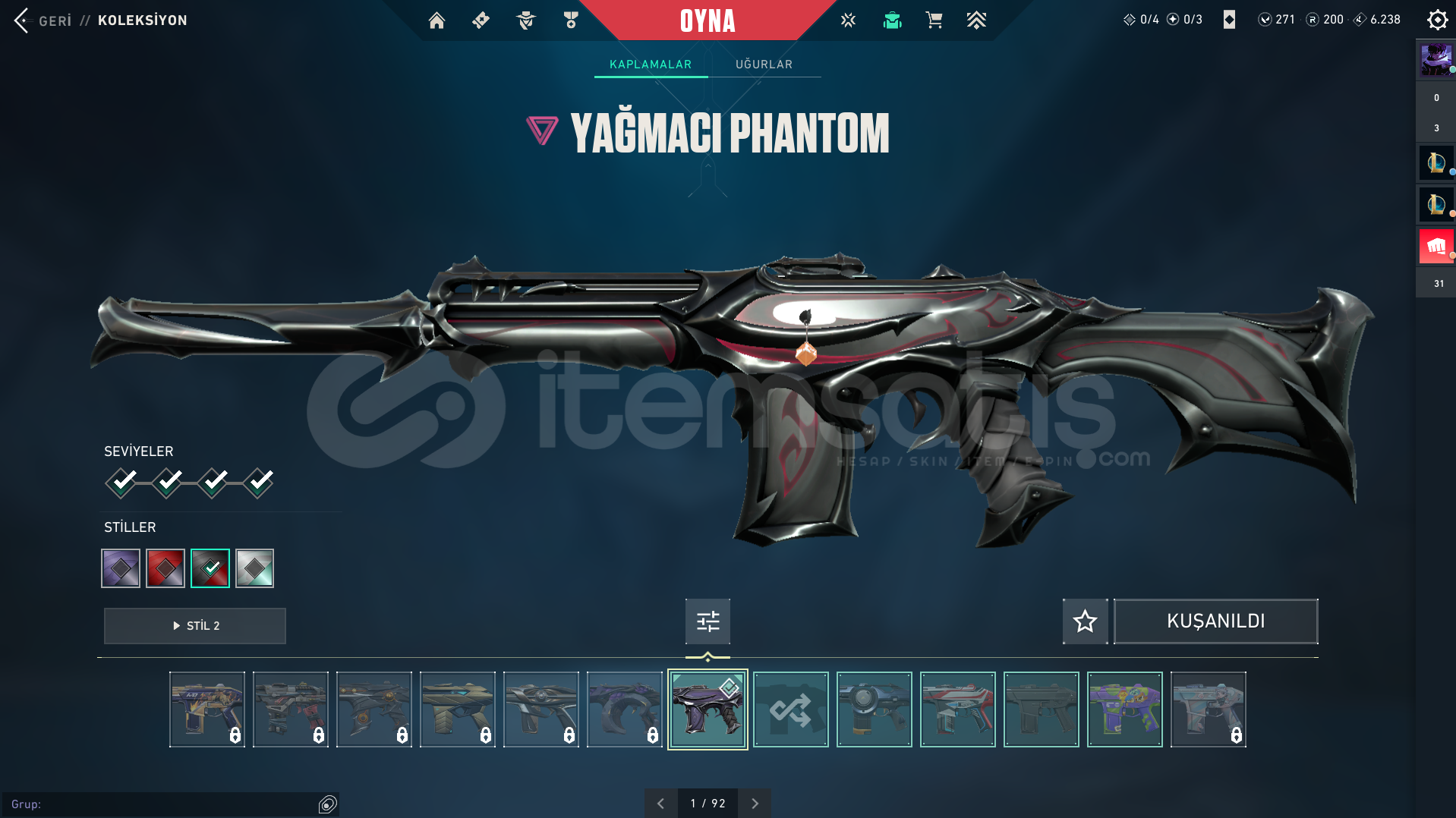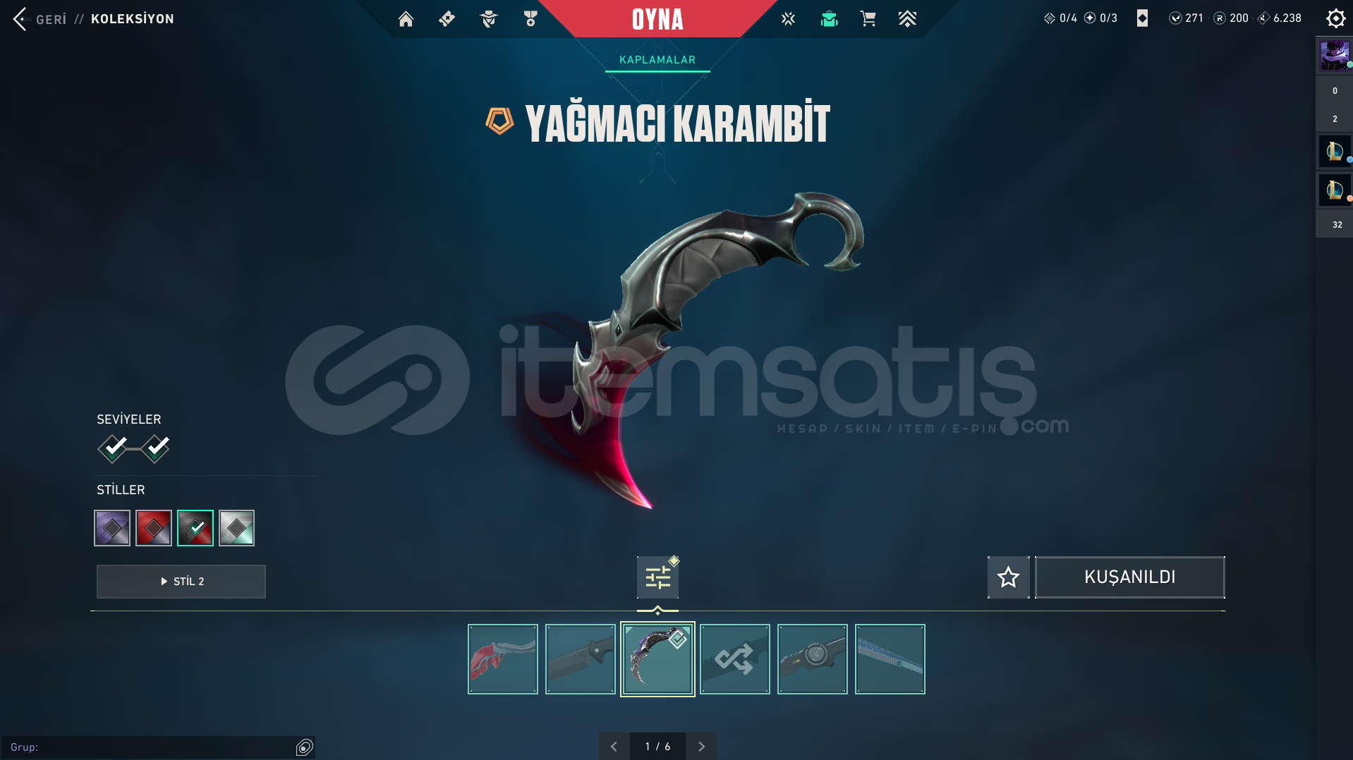 hesaptaki skinler fotoğraftaki gibidir.