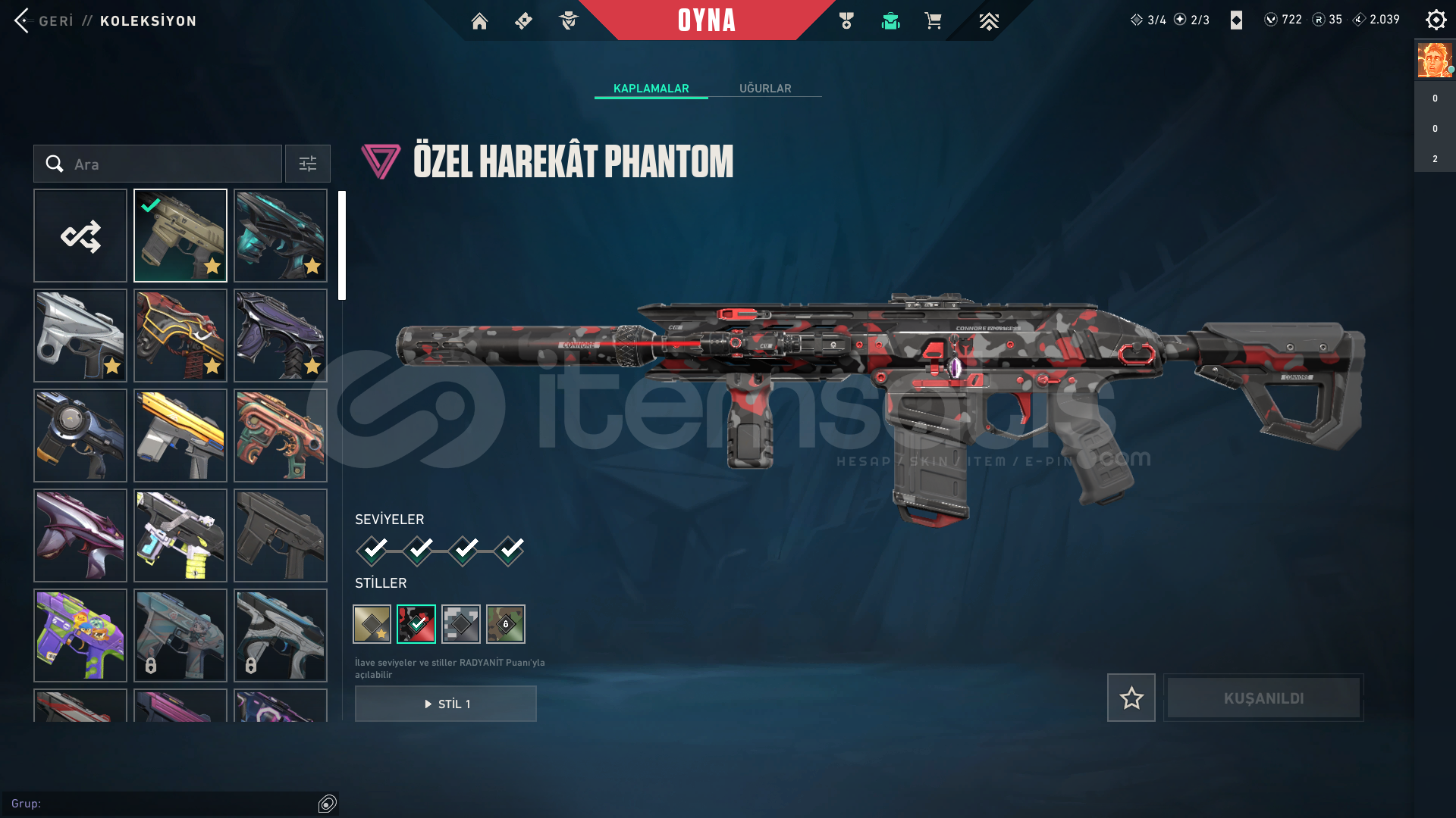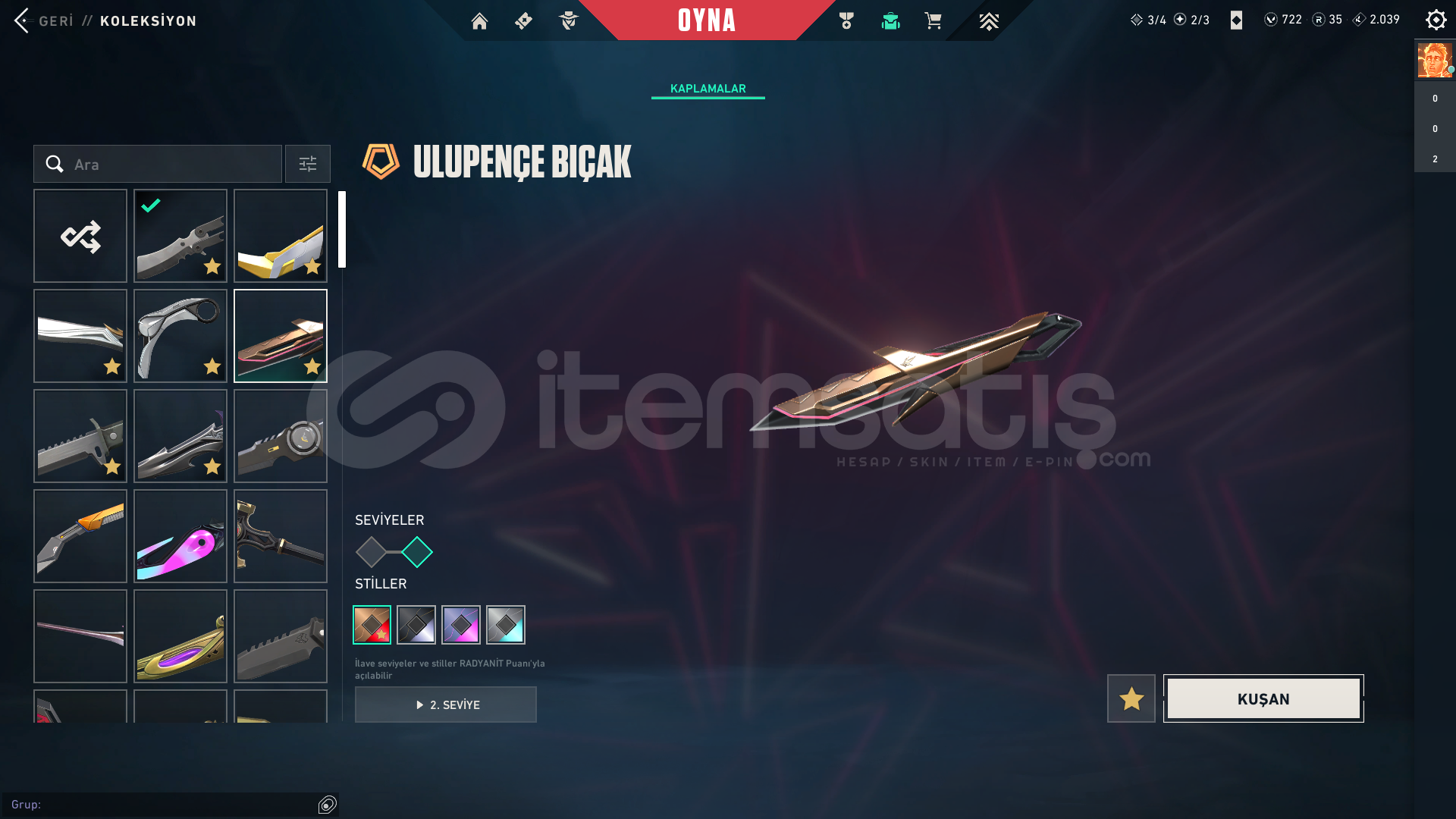 Hesap Hakkında Bilgiler:✨Skinler : ✨KAOS'UN BAŞLANGICI VANDAL✨CHAMPİONS 2023 VANDAL✨GAİA'NIN İNTİKAMI VANDAL✨İYON VANDAL✨ULUPENÇE VANDAL✨RGX 11Z PRO VANDAL✨ONİ VANDAL✨YİTİK VANDAL✨YILDIZ BELASI VANDAL✨YAĞMACI VANDAL✨ÖZEL HAREKAT PHANTOM✨AFET PHANTOM✨ONİ PHANTOM✨YAĞMACI PHANTOM✨İYON PHANTOM✨RGX...