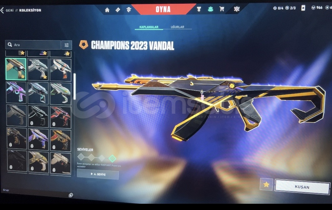 YouTube VİDEOSUNU İZLEYEBİLİRSİNİZ... https://youtu.be/LJrn3ecJwhs?si=CsZJgIvhcETazg4kChampions 2023 Seti - VCT Lock İn Bıçak - Alaz Yelpaze - VCT 2025 Karambit - 2024 BBL Clasic - 2025 FUT ClasicVANDAL: 25 AdetPHANTOM: 20 AdetBIÇAK : 26 AdetOPERATOR: 11 AdetODİN: 8 AdetŞHERİF: 15 AdetGHOST: 18 AdetCLASİC: 16 AdetDİĞERLERİNİ YAZMADIM FUL + FUL VİDEOSU YOUTUBEDE.