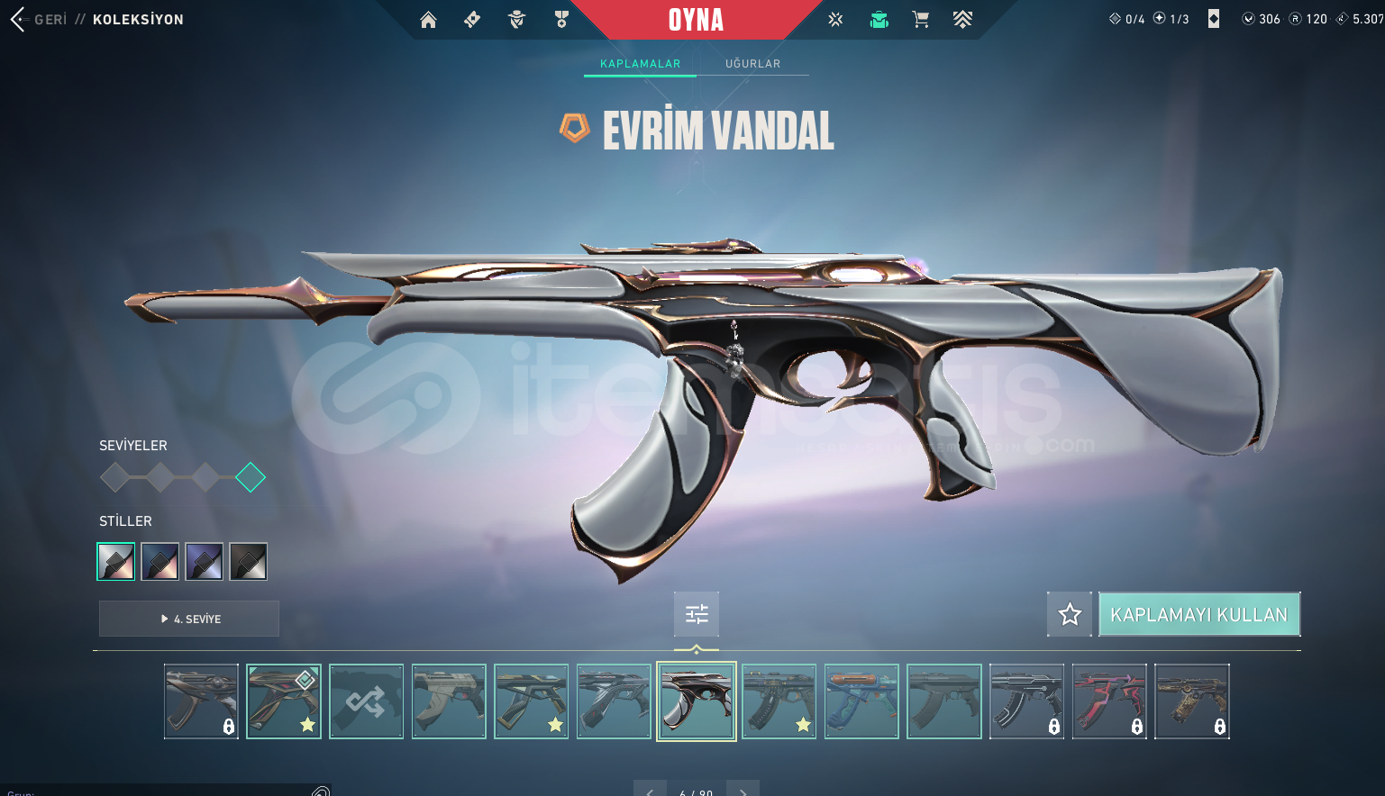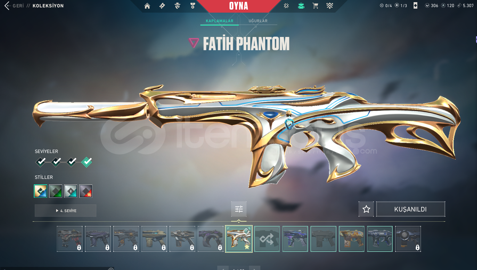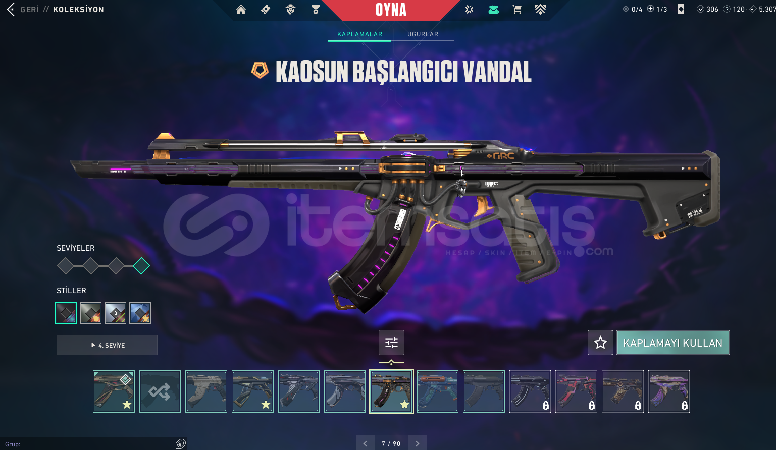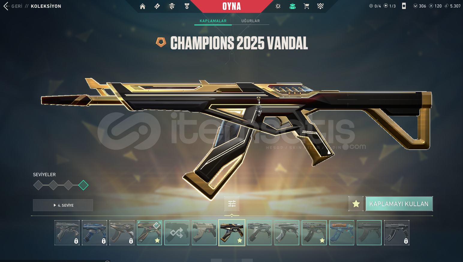 • Champions 2025 Seti + SplashX Seti + Kaos Vandal + Evrim Vandal + Ulupençe Vandal + Fatih Phantom + Yağmacı Guardian + Şimşek Outlow + Sırçiçeği Sheriff + VCT 2025 Karambit + Ecelin Isırığı Bıçak ve sayamadığım skinlerle birlikte toplamda 52 skin