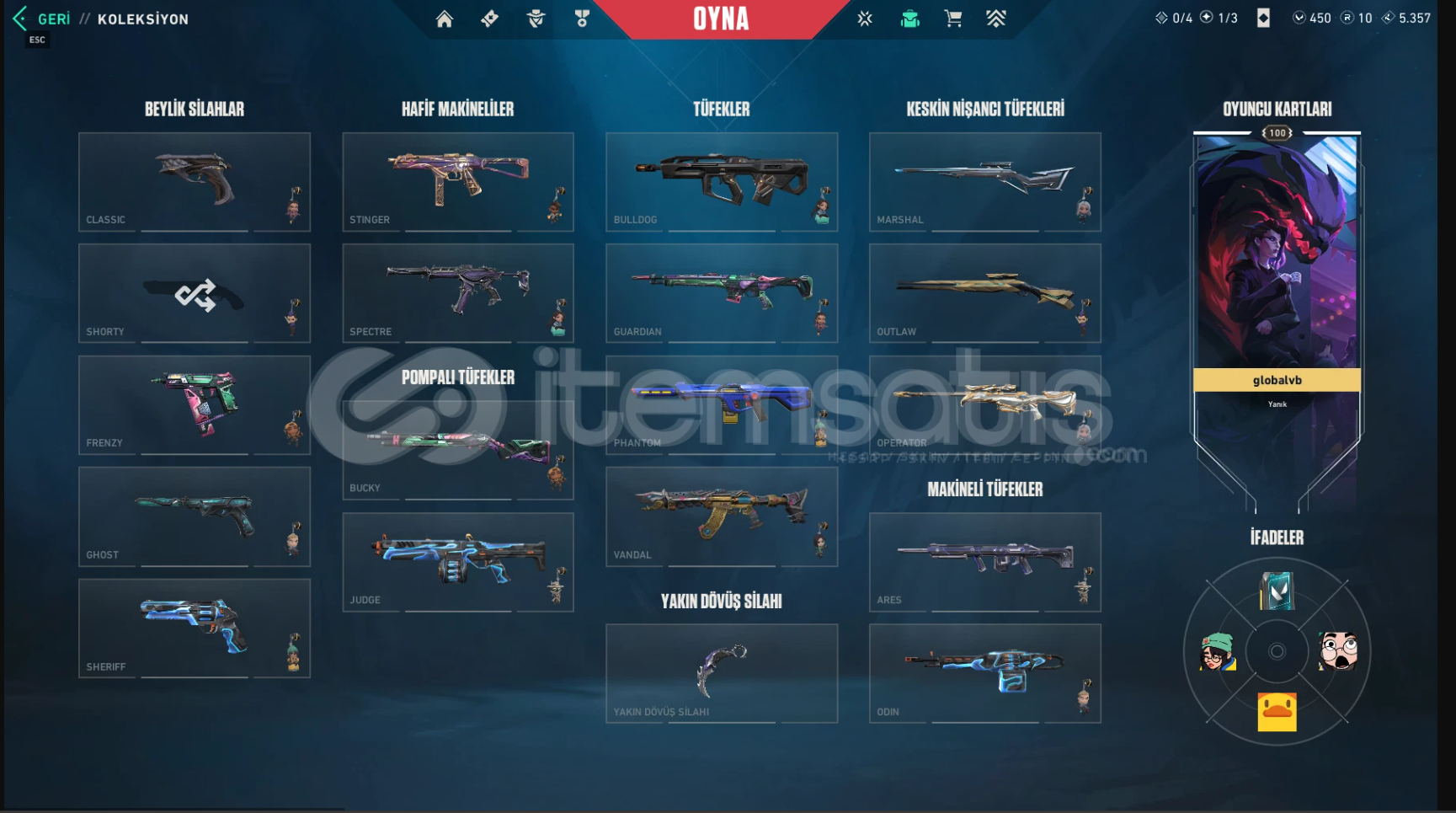 RANK: Silver 1LEVEL: 100ENVANTER DEĞERİ: 30.850 VPPhaseguard BulldogEvori Dreamwings GhostRadiant Entertainment System PhantomEvori Dreamwings VandalMystbloom PhantomAraxys OutlawHieroscape BladesRuination GhostTorque CoilerNocturnum ClassicReaver KarambitSingularity VandalArcane VandalKuronami MarshalForsaken OperatorGaia's Vengeance VandalReaver Spectre