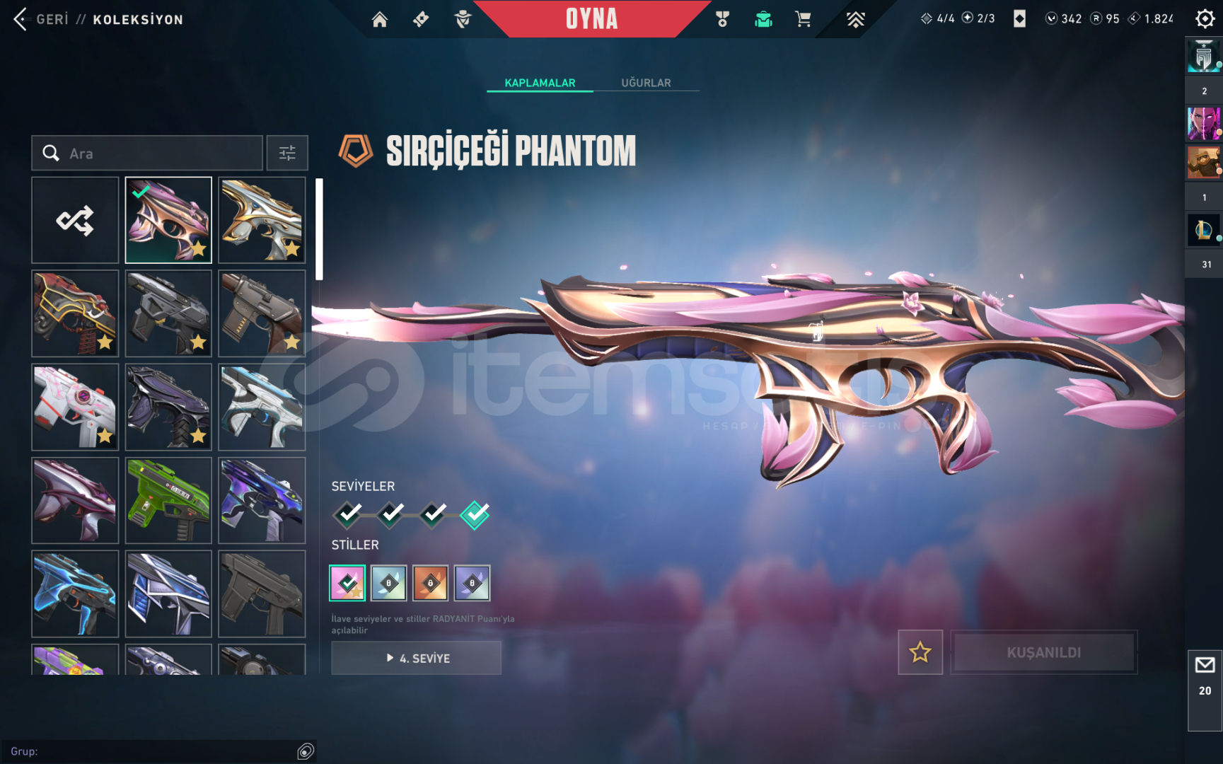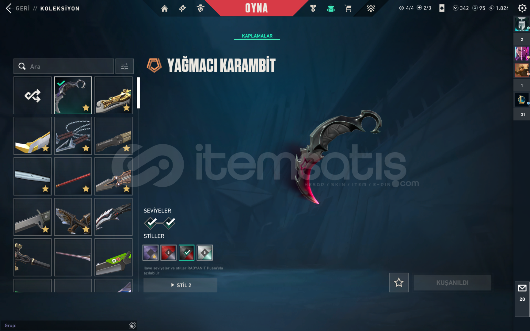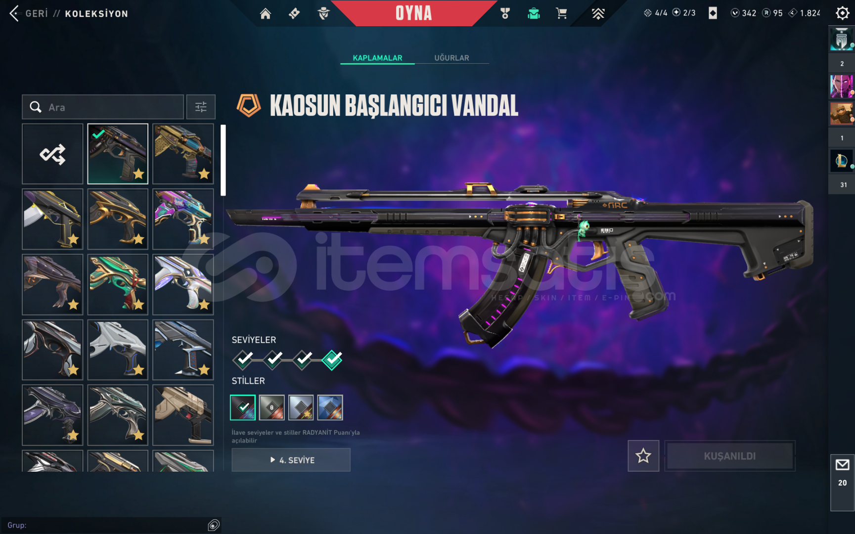 VANDAL(19 SKİN)KAOS-ARCANE-ASİL-CESUR YÜREK-DELİPOP-EJDER ATEŞİ-EJDERİN BUYRUGU-EVORİ-EVRİM-İYON-KURONOMİ-YAĞMACI-YİTİKPHANTOM(15 SKİN)SIRÇİÇEĞİ-FATİH-ONİ-PROTOKOL-SERİ TETİK-SPECTRUM-YAĞMACIBICAK(19 SKİN)YAĞMACI KARAMBİT-ASİL KARAMBİT-KURONAMI ZİNCİR-5 YEARS BETA-ÖZEL HAREKAT KELEBEK-RUYI SOPASI-SİHİRÇAKI-UZAYLI...