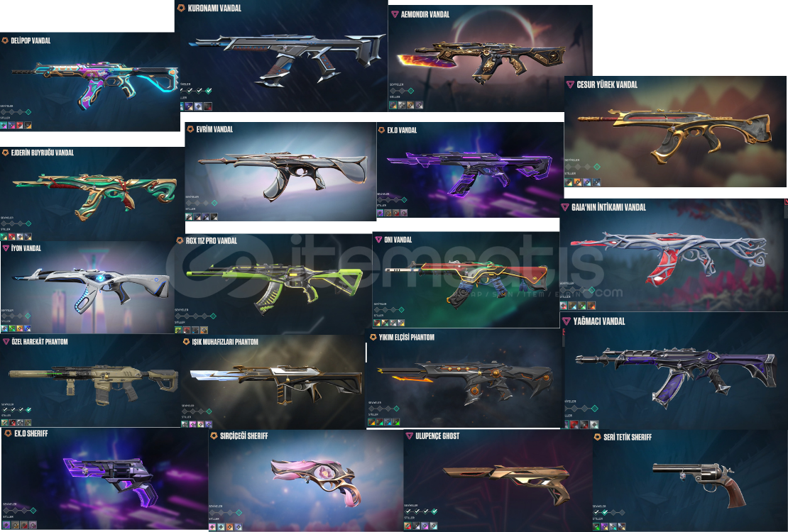 Hesap Hakkında Bilgiler:✨Skinler : ✨KURONAMİ VANDAL✨EJDERİN BUYRUĞU VANDAL✨EXO VANDAL✨GAİA VANDAL✨İYON VANDAL✨AEMONDIR VANDAL✨EVRİM VANDAL✨RGX 11Z PRO VANDAL✨CESUR YÜREK VANDAL✨YAĞMACI VANDAL✨DELİPOP VANDAL✨ÖZEL HAREKAT PHANTOM✨IŞIK MUHAFIZLARI PHANTOM✨YIKIM ELÇİSİ PHANTOM✨SIR ÇİÇEĞ...