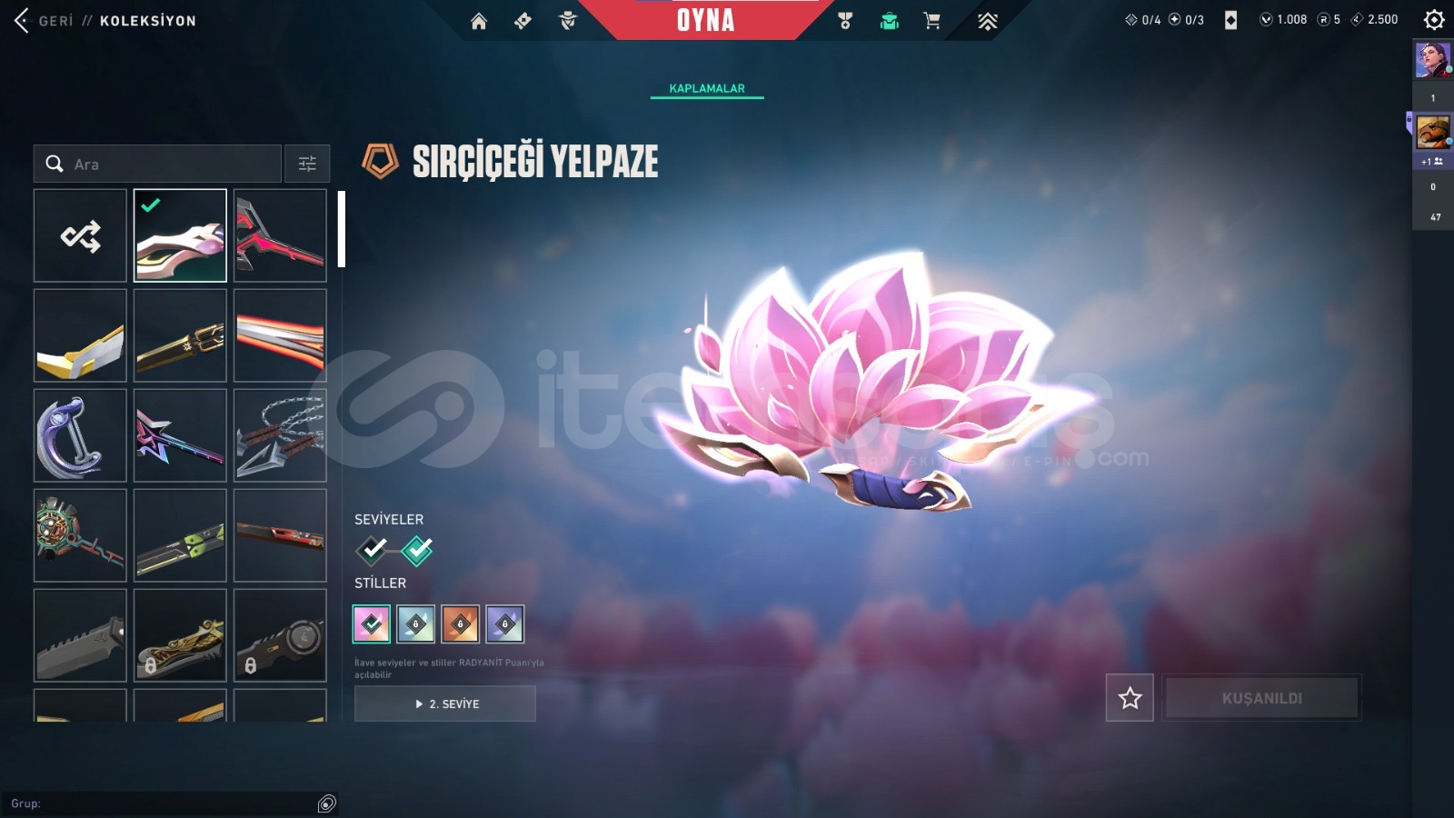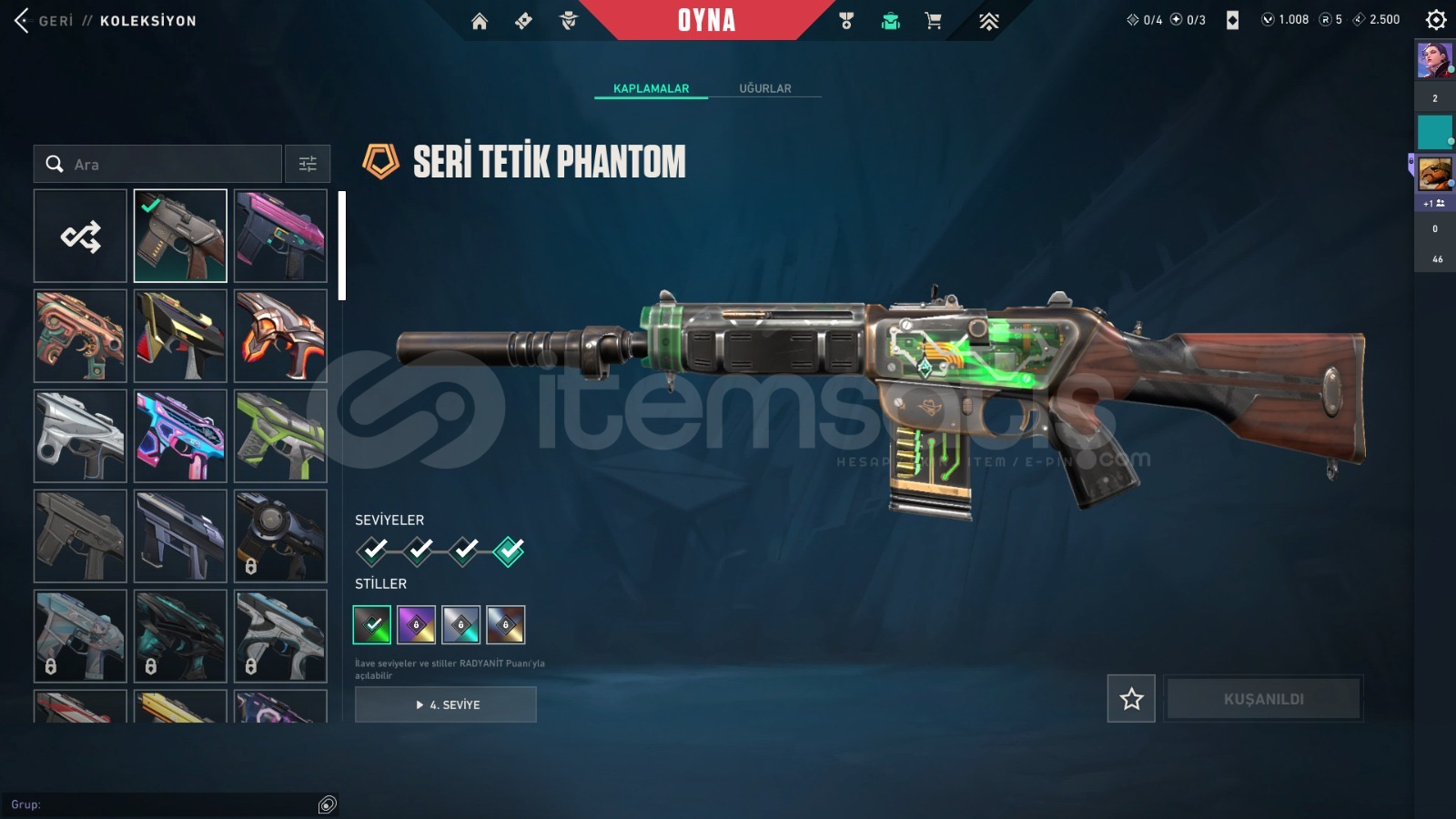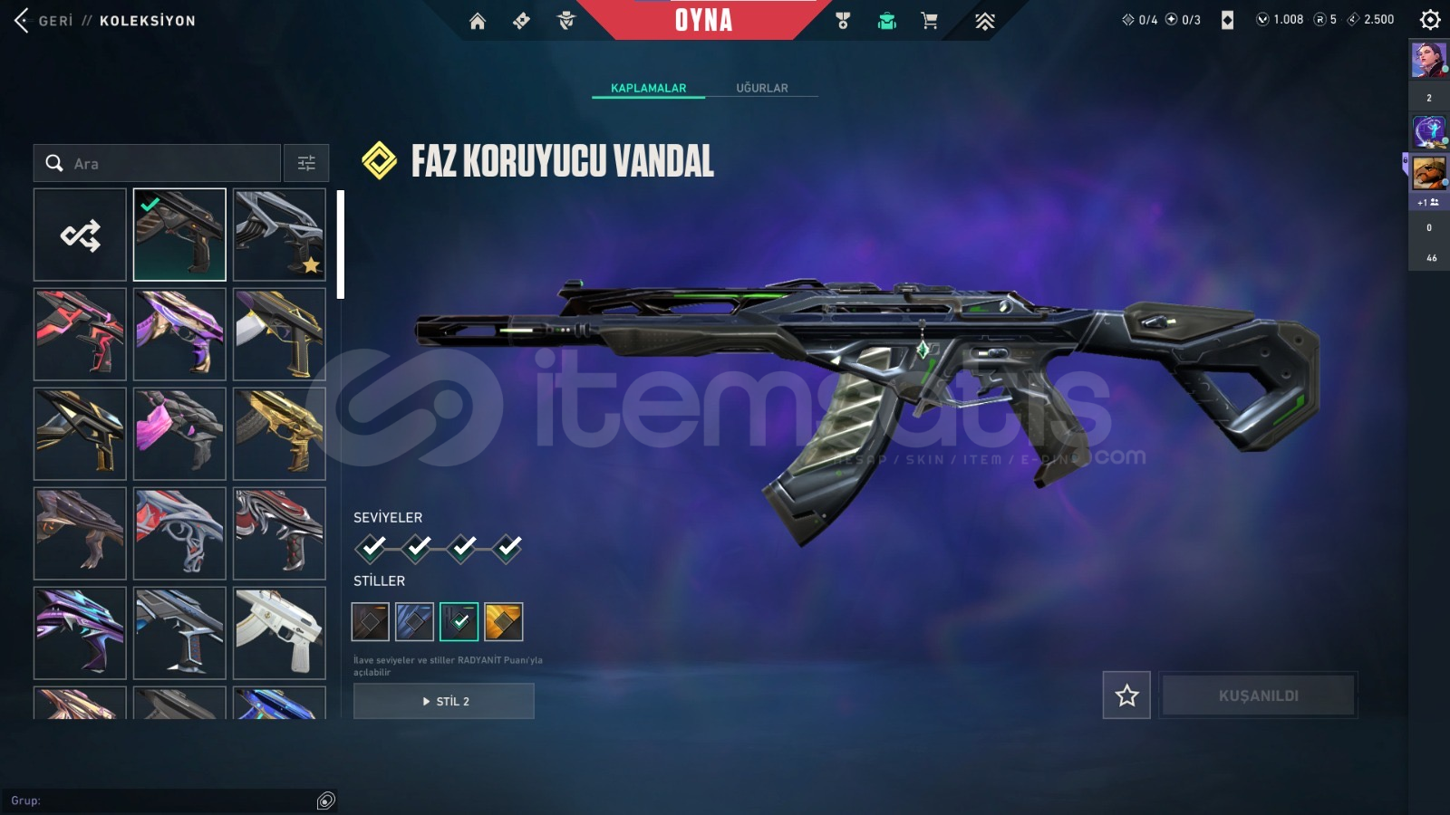 VANDAL SKİNLERİSırçiçeği VandalAsil VandalEjder VandalGaia VandalFaz Koruyucu VandalCyrax VandalNeptün VandalChampions 2025 VandalKuronami VandalDolmir VandalPHANTOM SKİNLERİChampions 2022 PhantomŞimşek PhantomSeri Tetik Phantomİyon PhantomRGX PhantomOPERATÖR SKİNLERİSırçiçeği OperatörRGX OperatörYağmacı OperatörBIÇAKLARRGX KelebekChampions 2025 KelebekSürat...