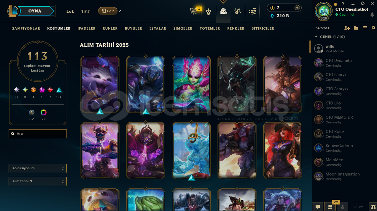 LOL HESABINDA 113 ADET KOSTÜM BULUNUR