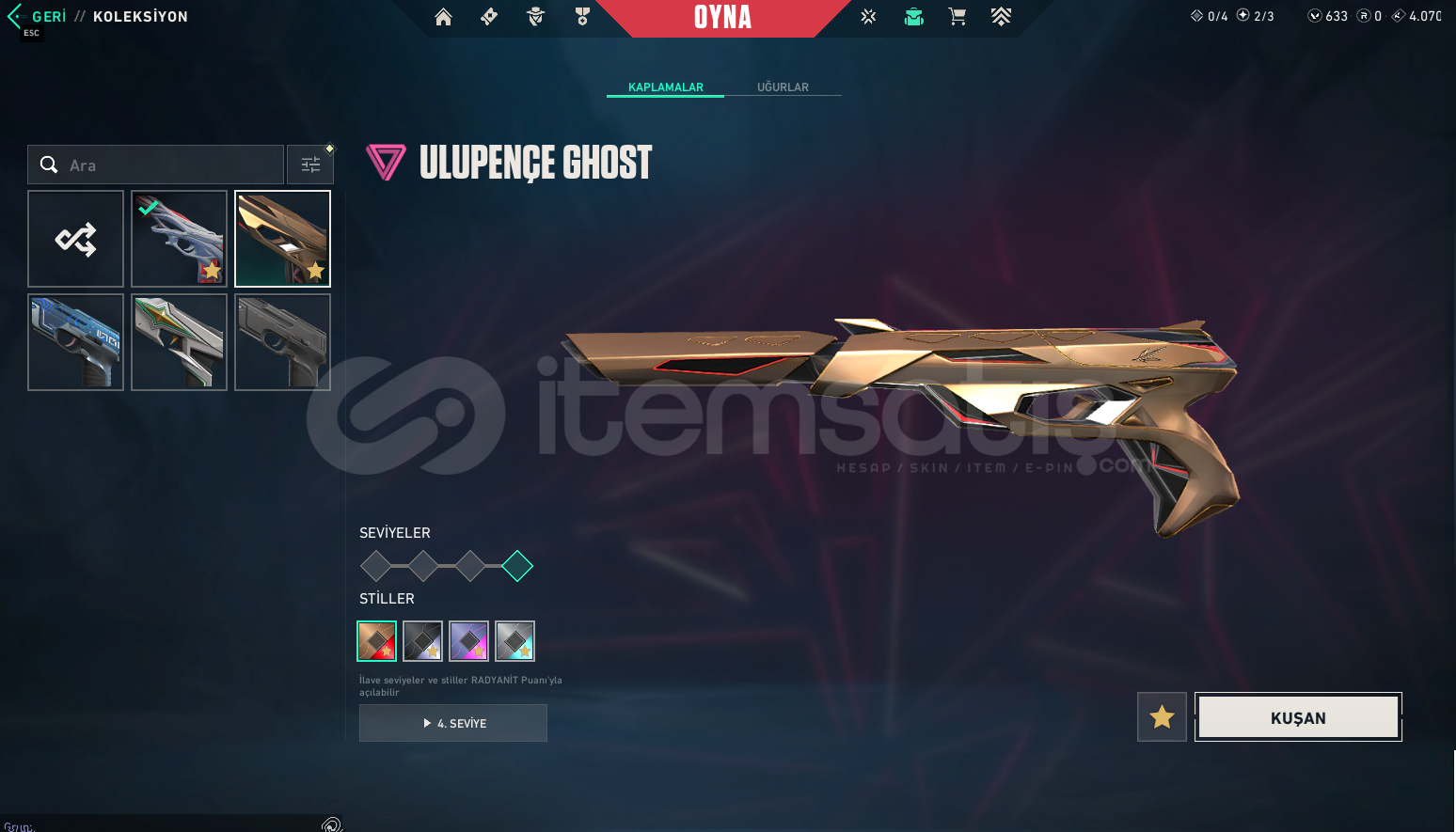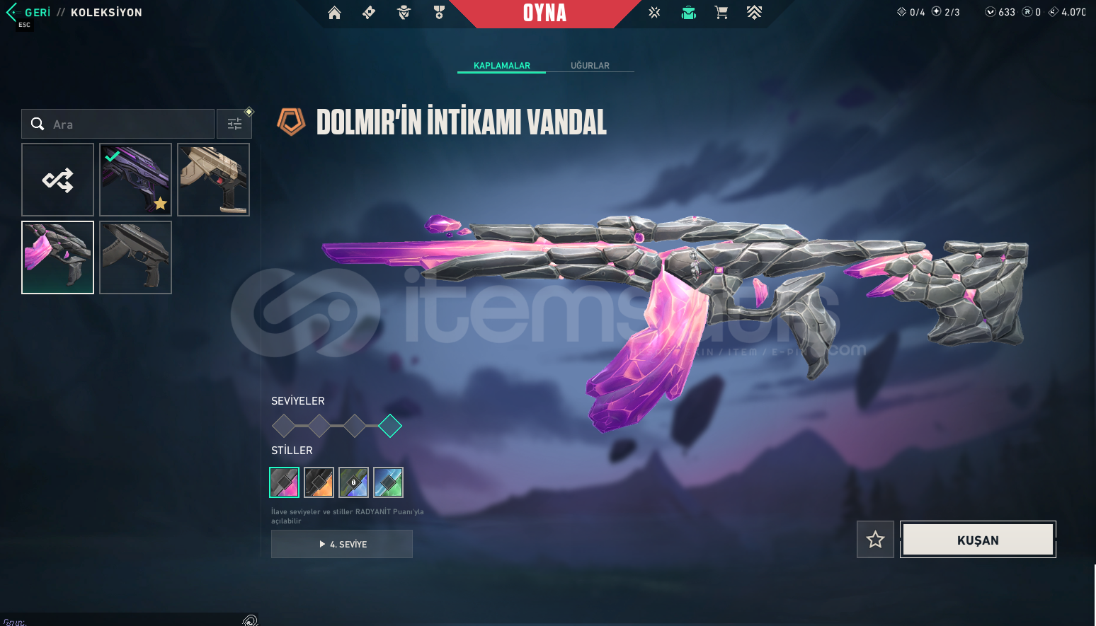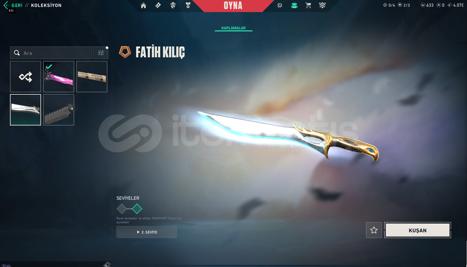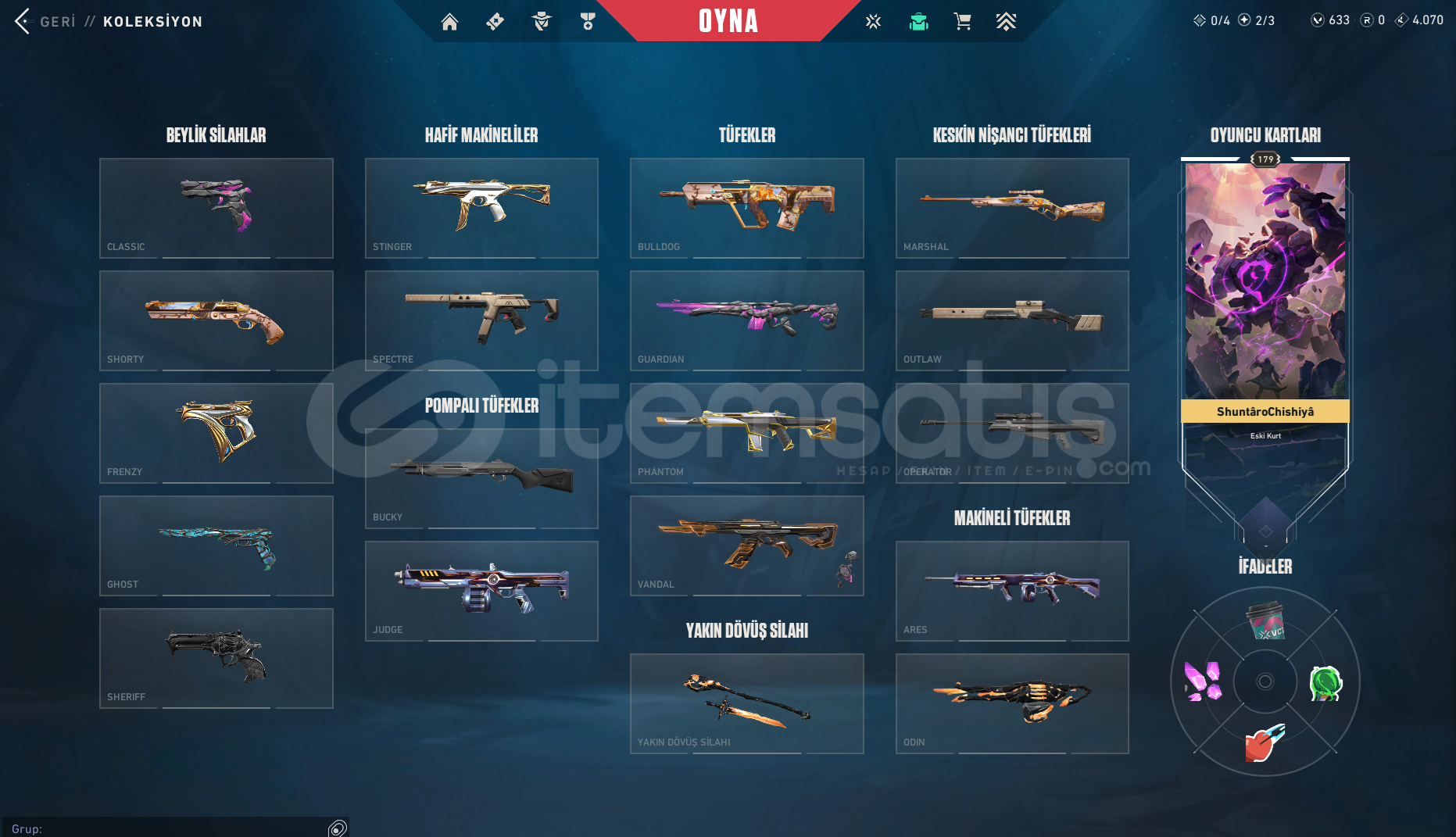 Premier Telefon Numarası Kaldırılacaktır...Dolmir'in İntikamı Full SetBıçak: Yitik Kılıç, Dolmir'in AdaletiVandal: EX.O, Dolmir'in İntikamıPhantom: Asil//2.0, Fatih PhantomSheriff: Yağmacı, Seri TetikGhost: Gaia'nın İntikamı, UlupençeGuardian: Dolmir'in İntikamı, OniFatih Frenzy, Fatih Stinger, Dolmir'in İntikamı ClassicMevcut VP: 633 VP1 Adet BattlePass