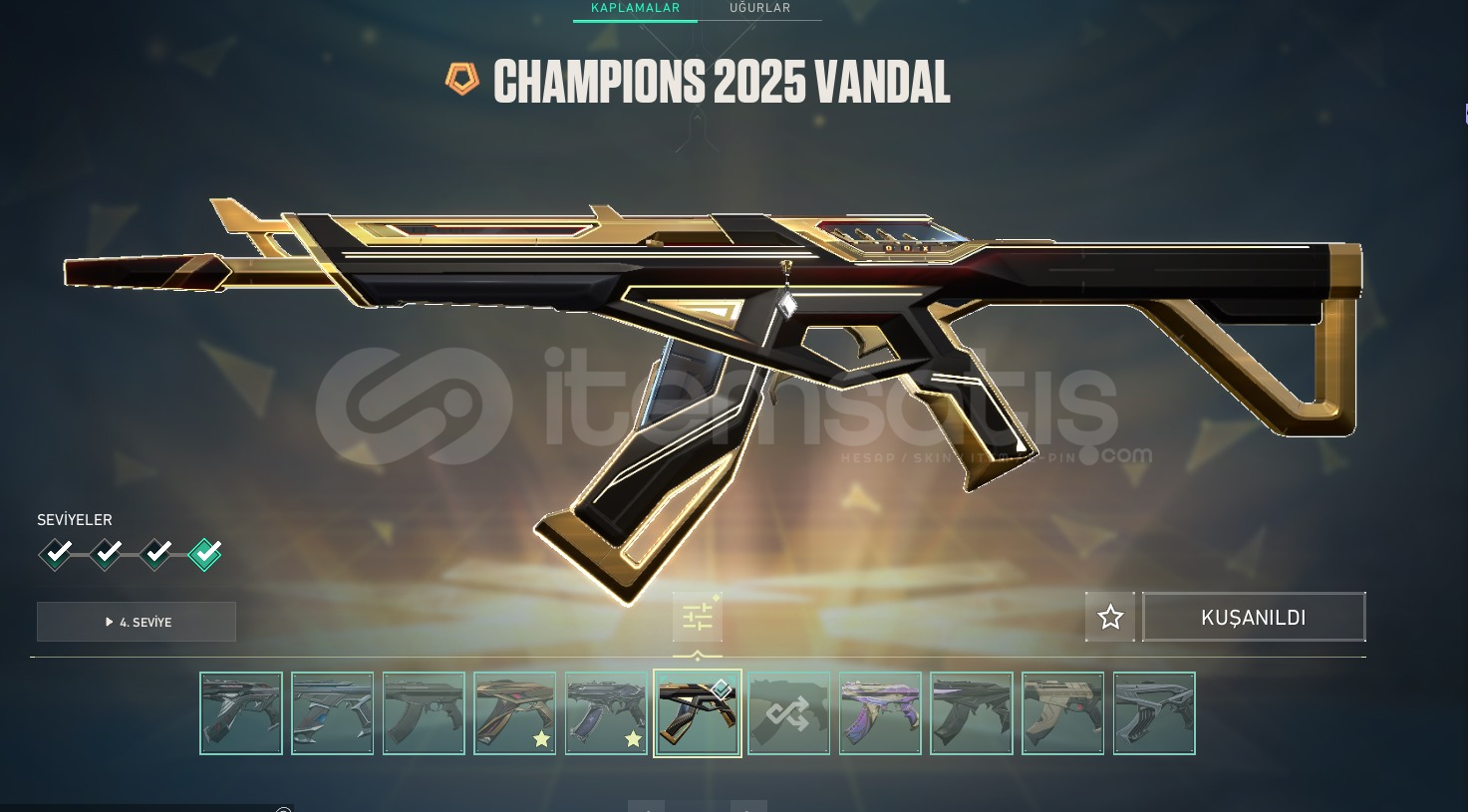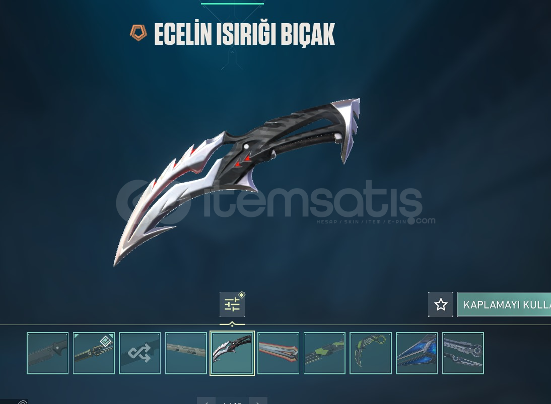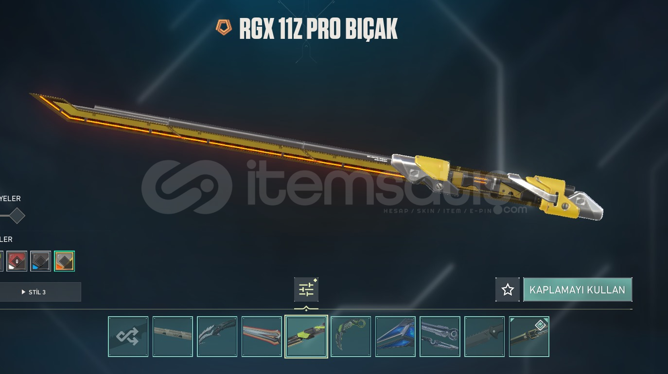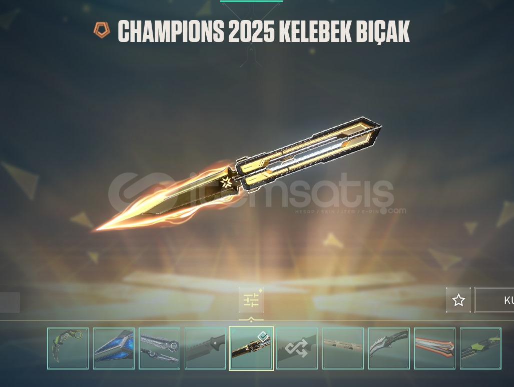 • Champions 2025 Kelebek+Champions 2025 Vandal +Ecelin Isırığı Set+ RGX 11z PRO Bıçak +RGX 11z PRO Karambit+Kuronami Vandal+Kuronami Sheriff +Neptün Phantom +Cyrax Vandal+Galaksi Muhafızı Phantom olmak üzere 78 skin mevcuttur