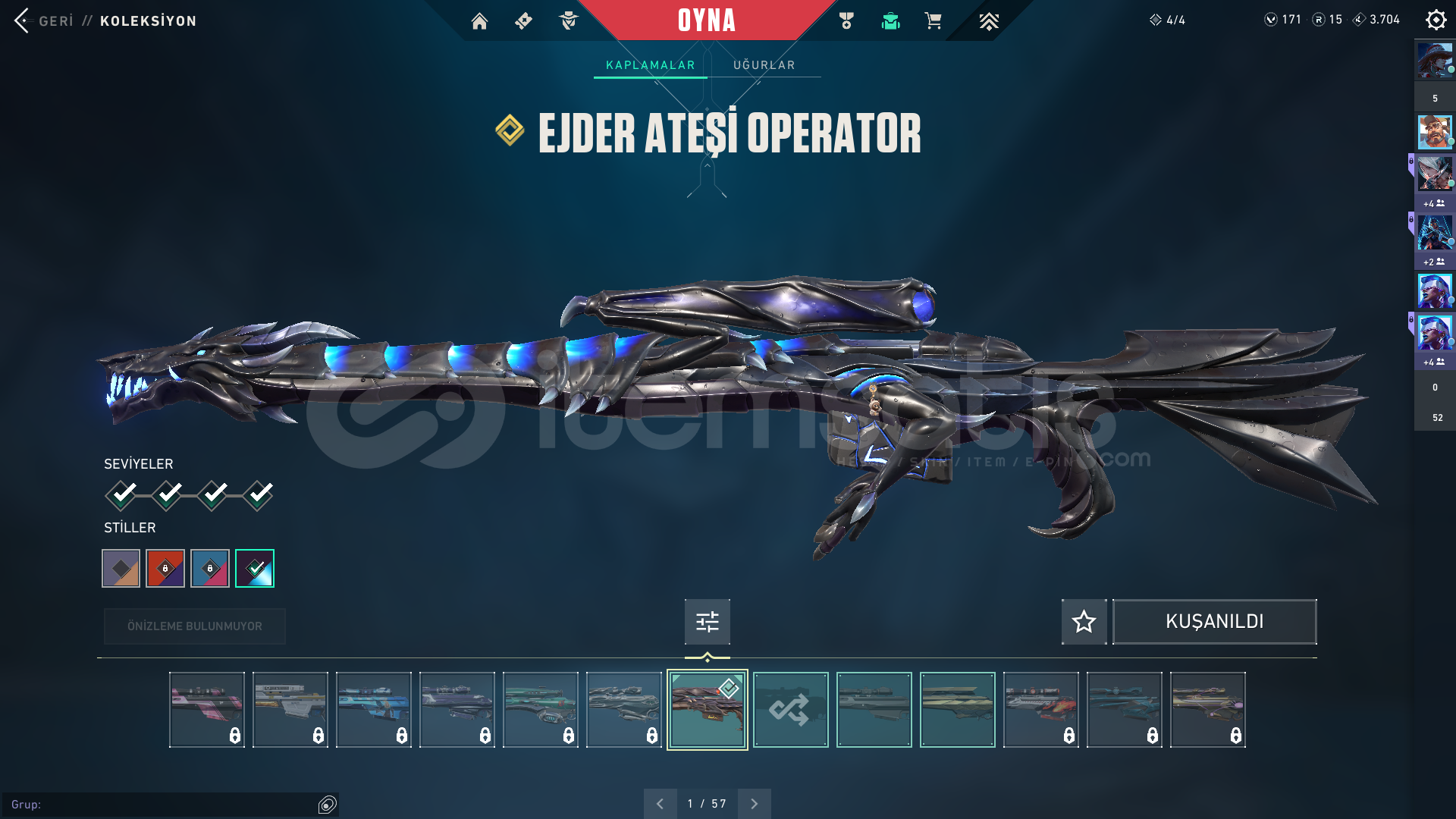 HESAPTA İSTANBUL VARDIR.İÇİNDEKİLER:Elderflame OperatorVCT 2025 KarambitDolmir's Revenge VandalNeo Frontier MarshalKuronami SheriffGuardrail HammerPrelude to Chaos VandalAraxys OperatorSingularity Butterfly KnifeXERØFANG GhostReaver VandalGaia's Vengeance Phantom─────────────────────────────...