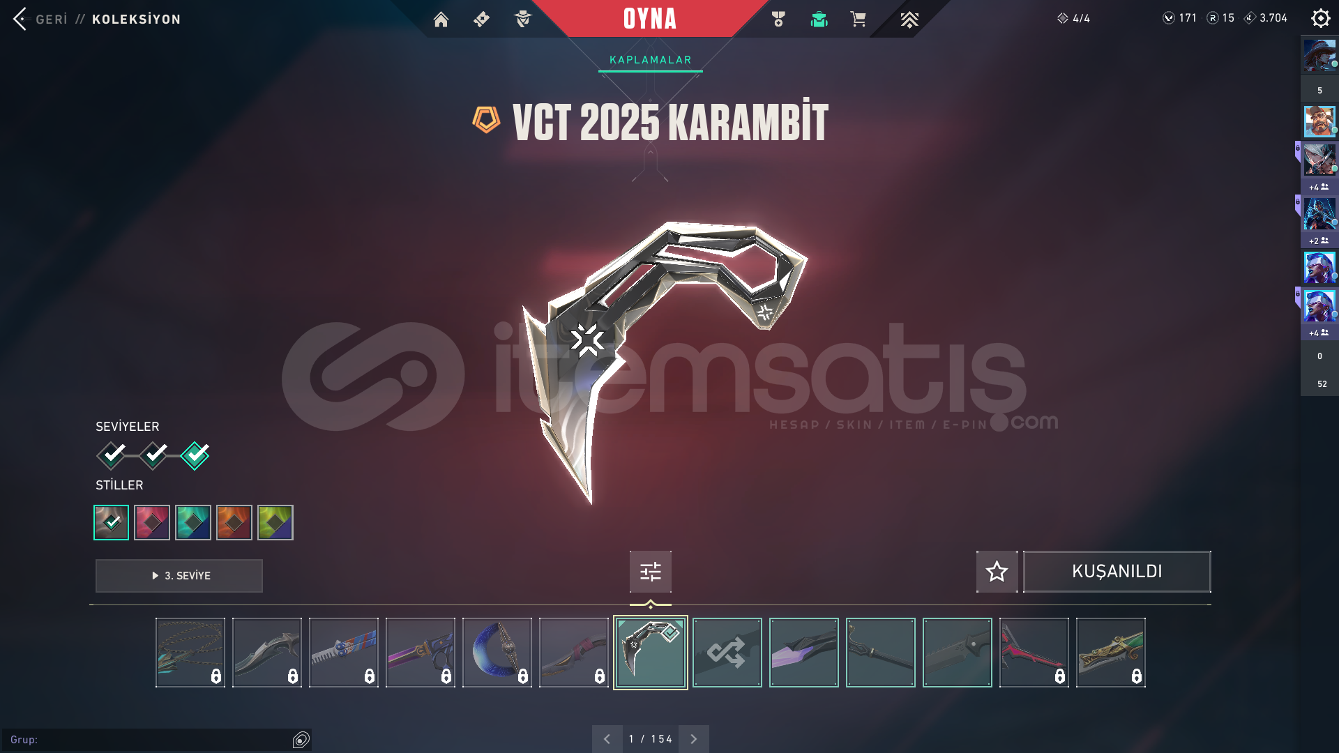 34 Skinli VCT 2025 Karambit'li Efsane Hesap
