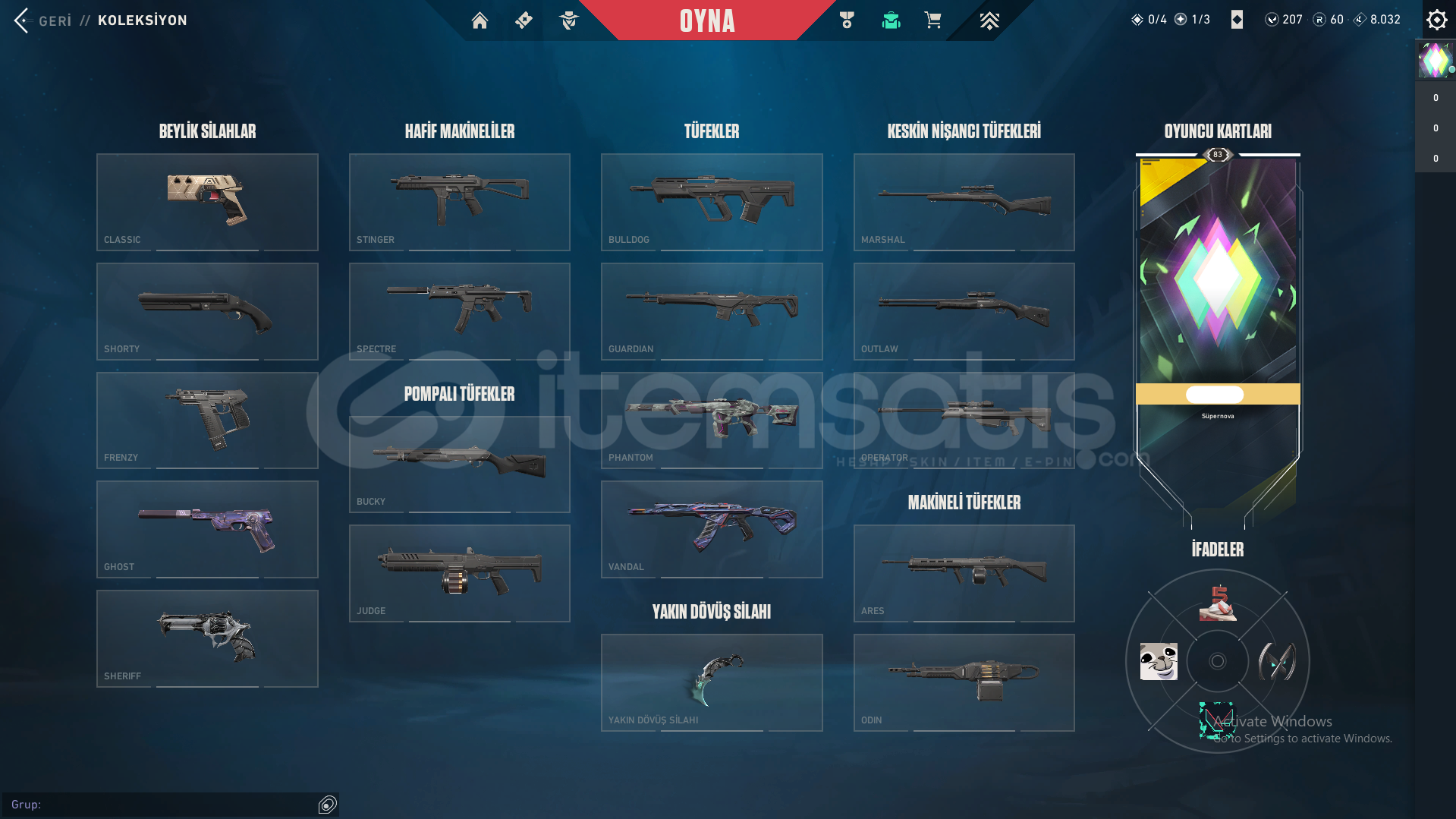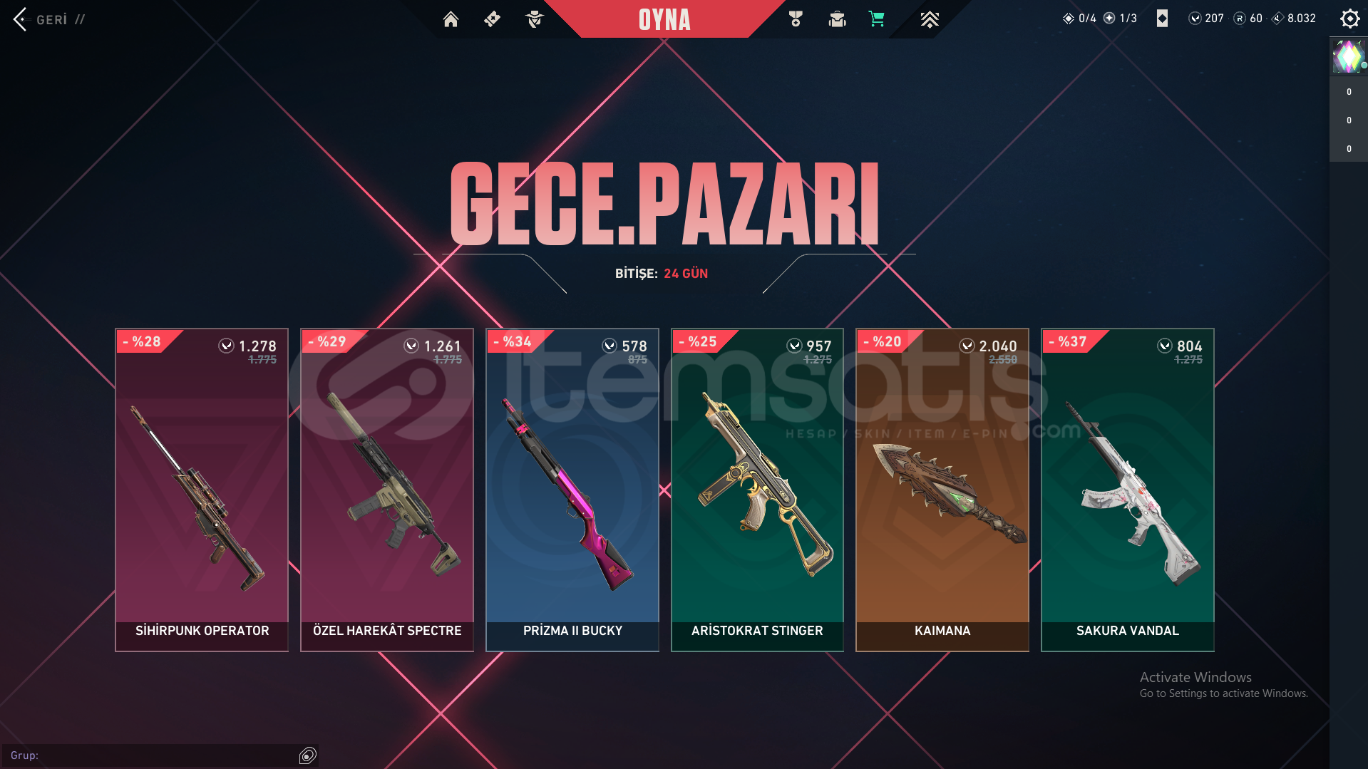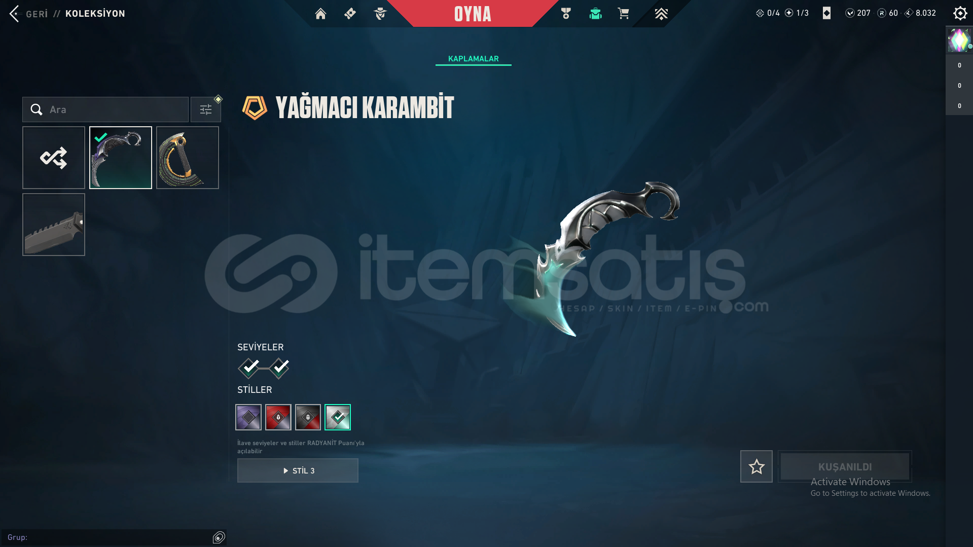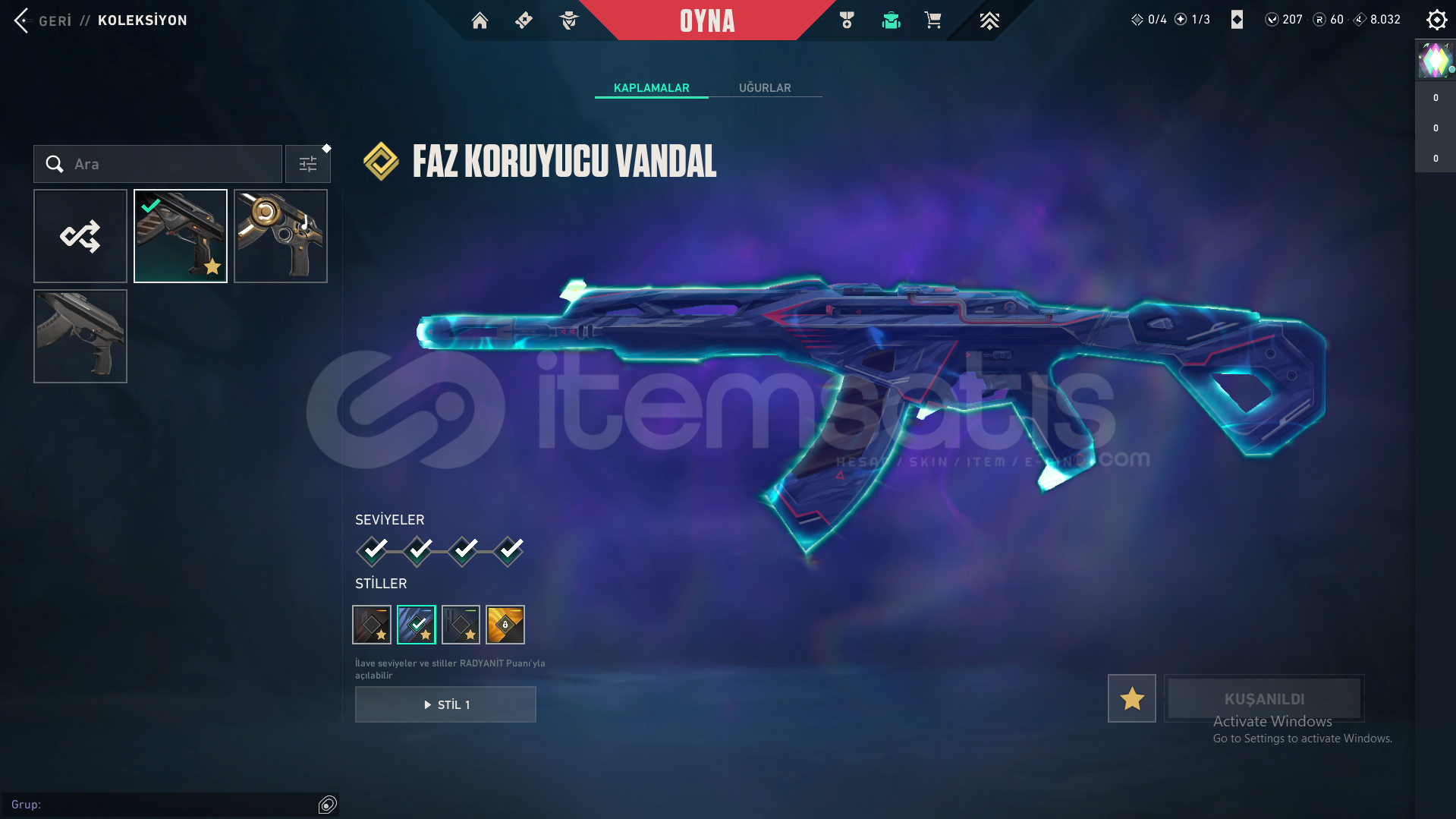 Hesabın içindeki skinlerFAZ KORUYUCU VANDALKÖKEN VANDALYAĞMACI KARAMBİTKÖKEN HİLAL BIÇAKPROTOKOL PHANTOMYAĞMACI SHERİFF