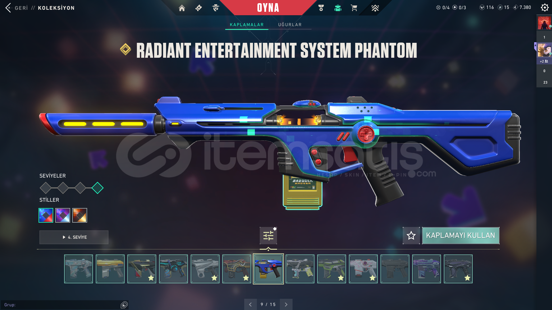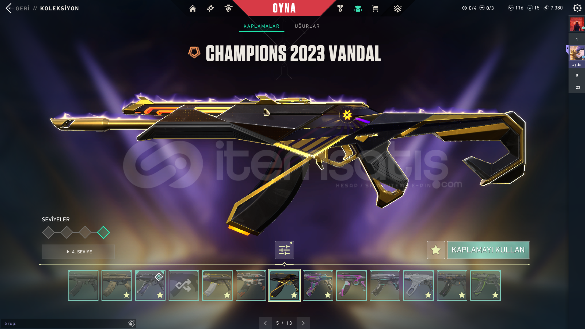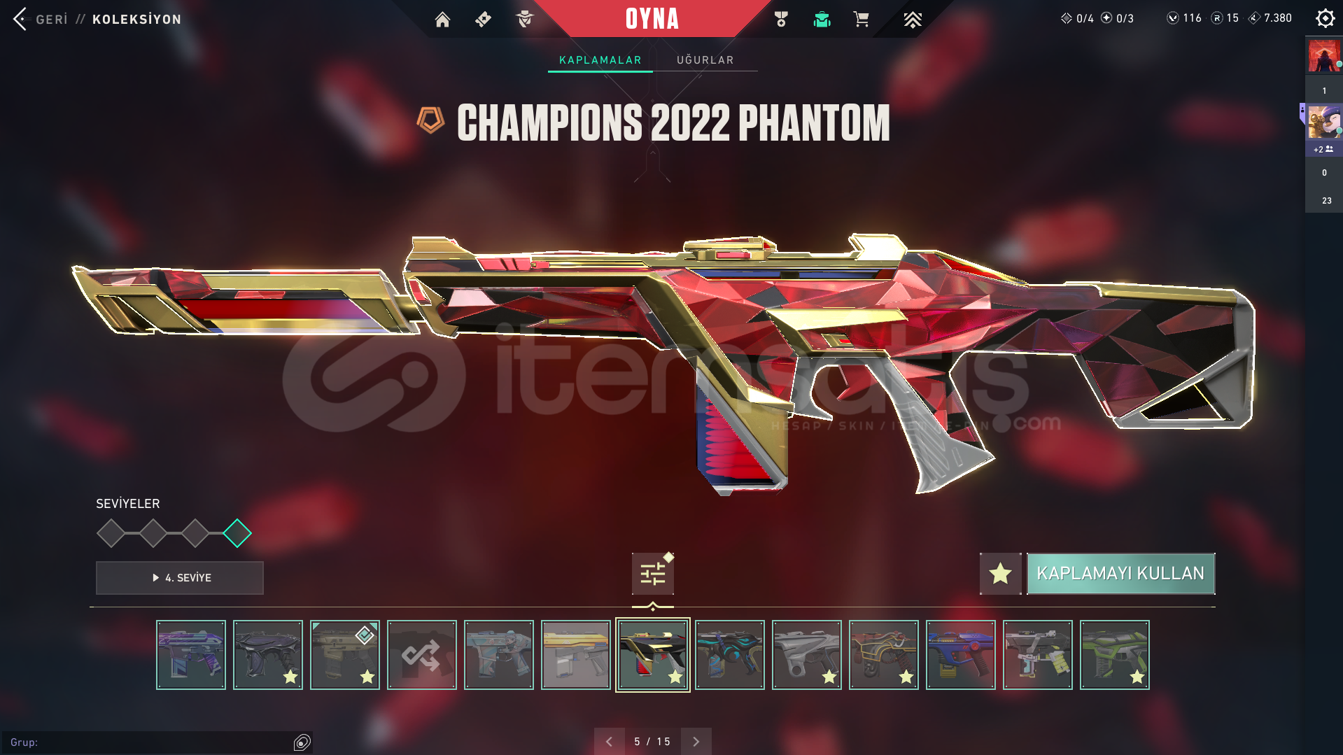 DEĞERLİ KAPLAMALARChampions 2022 PhantomChampions 2023 VandalVct Lock//ın MerhametRgx 11z Pro BıçakYağmacı BıçakÖzel Harekât PhantomRgx 11z Pro VandalKaosun Başlangıcı VandalAsil VandalOni PhantomRadiant Entertainment System PhantomYağmacı VandalYağmacı SpectreYağmacı OdinYağmacı GhostYağmacı PhantomRgx 11z Pro Phantomİyon OperatorYıldız Belası Vandal&#...