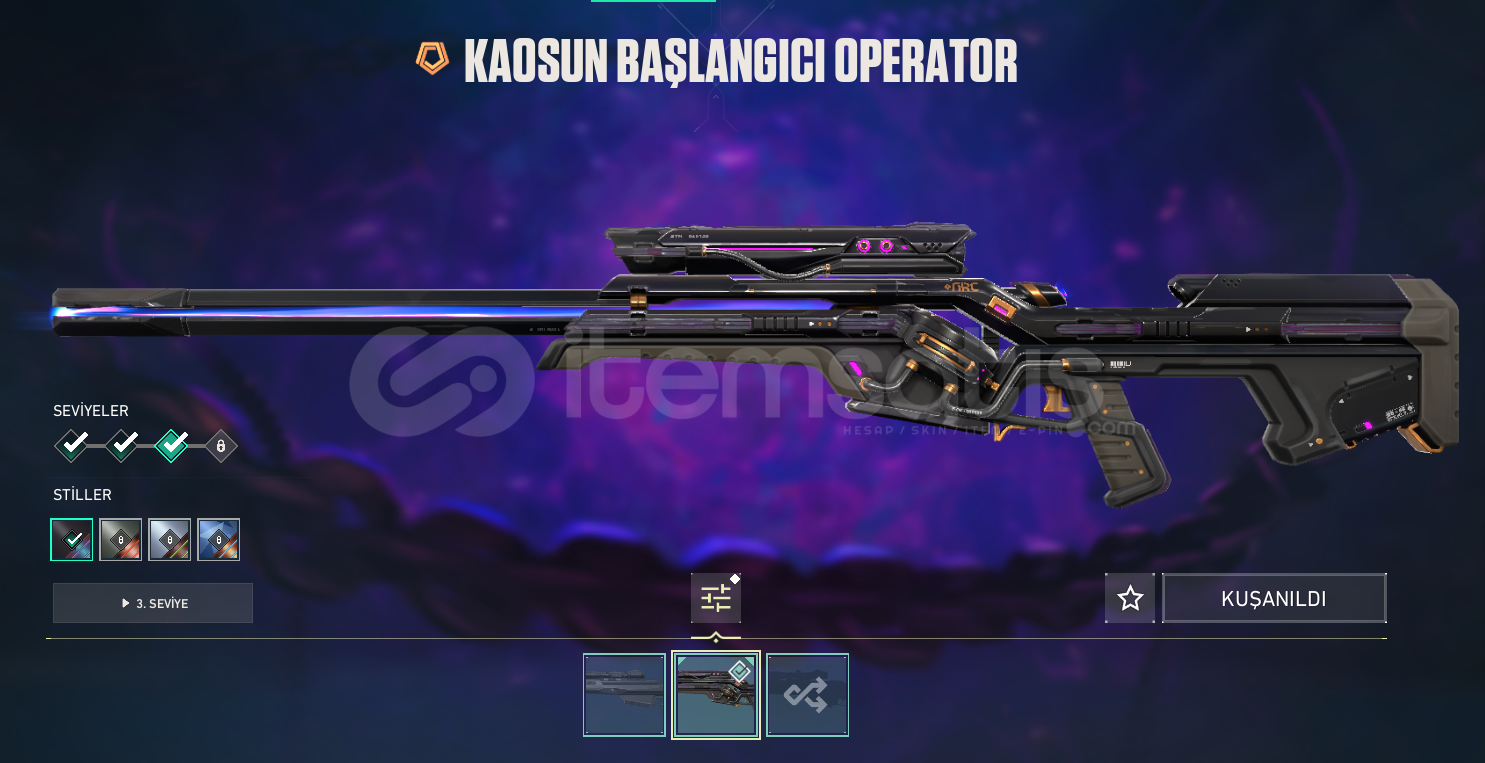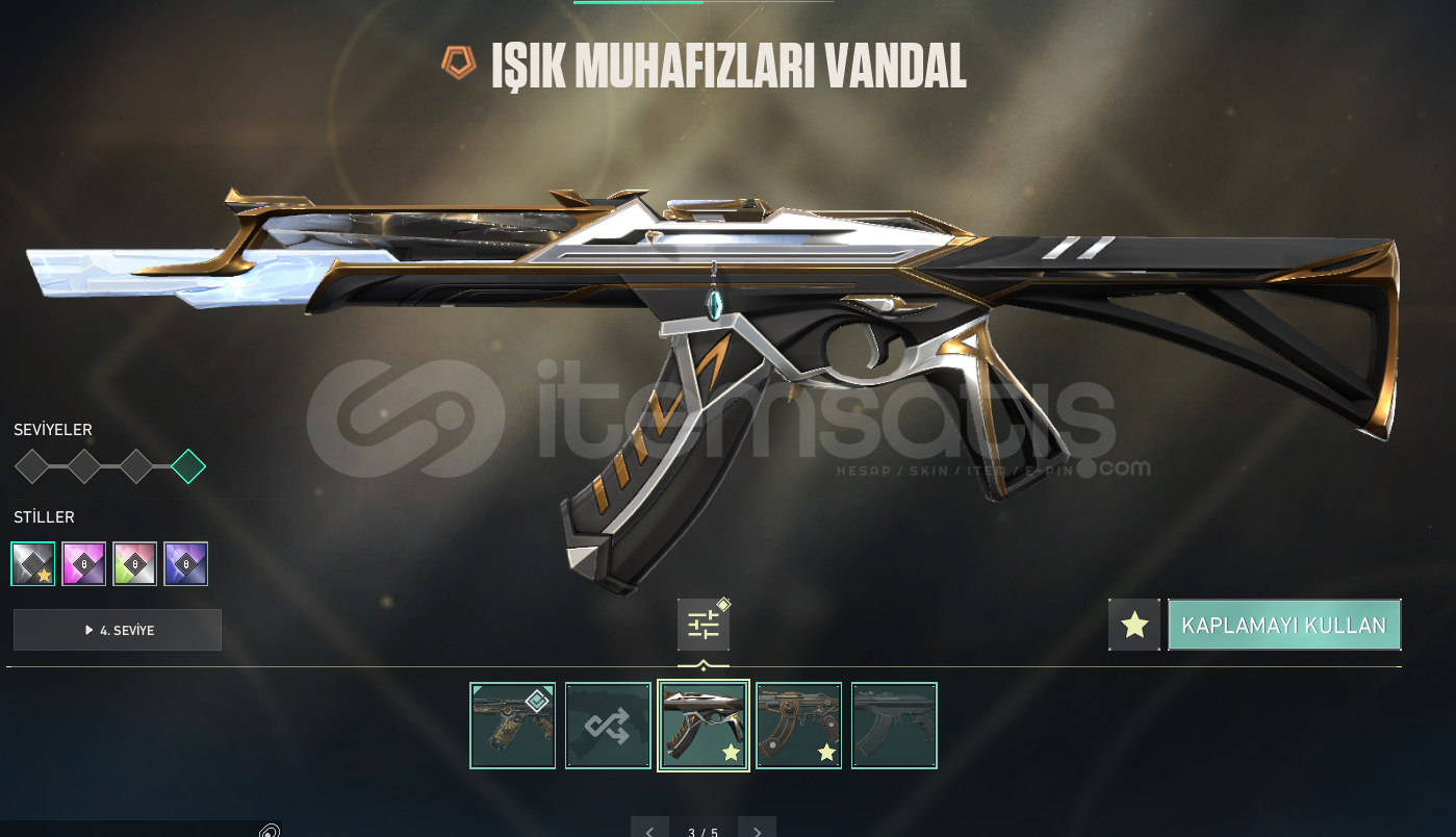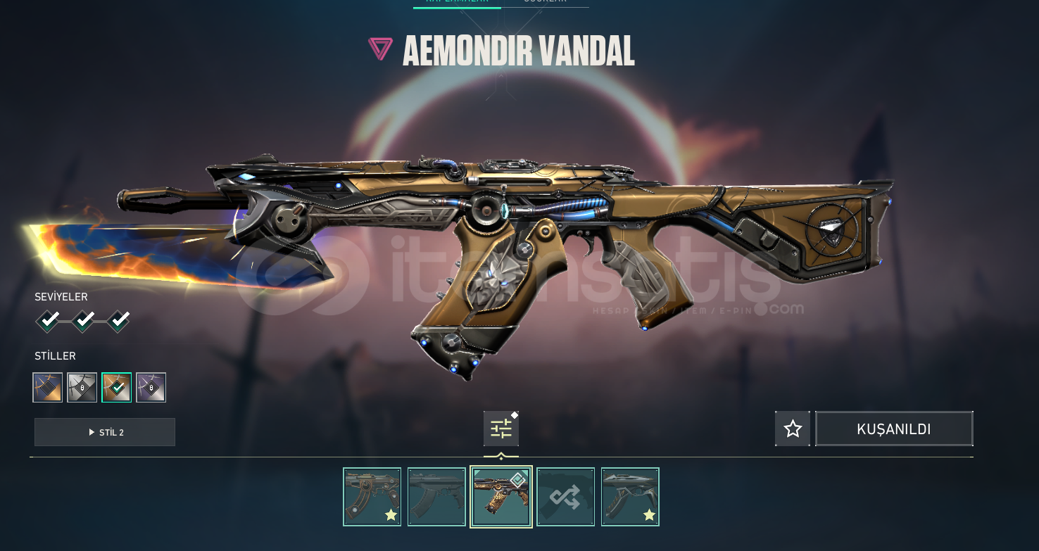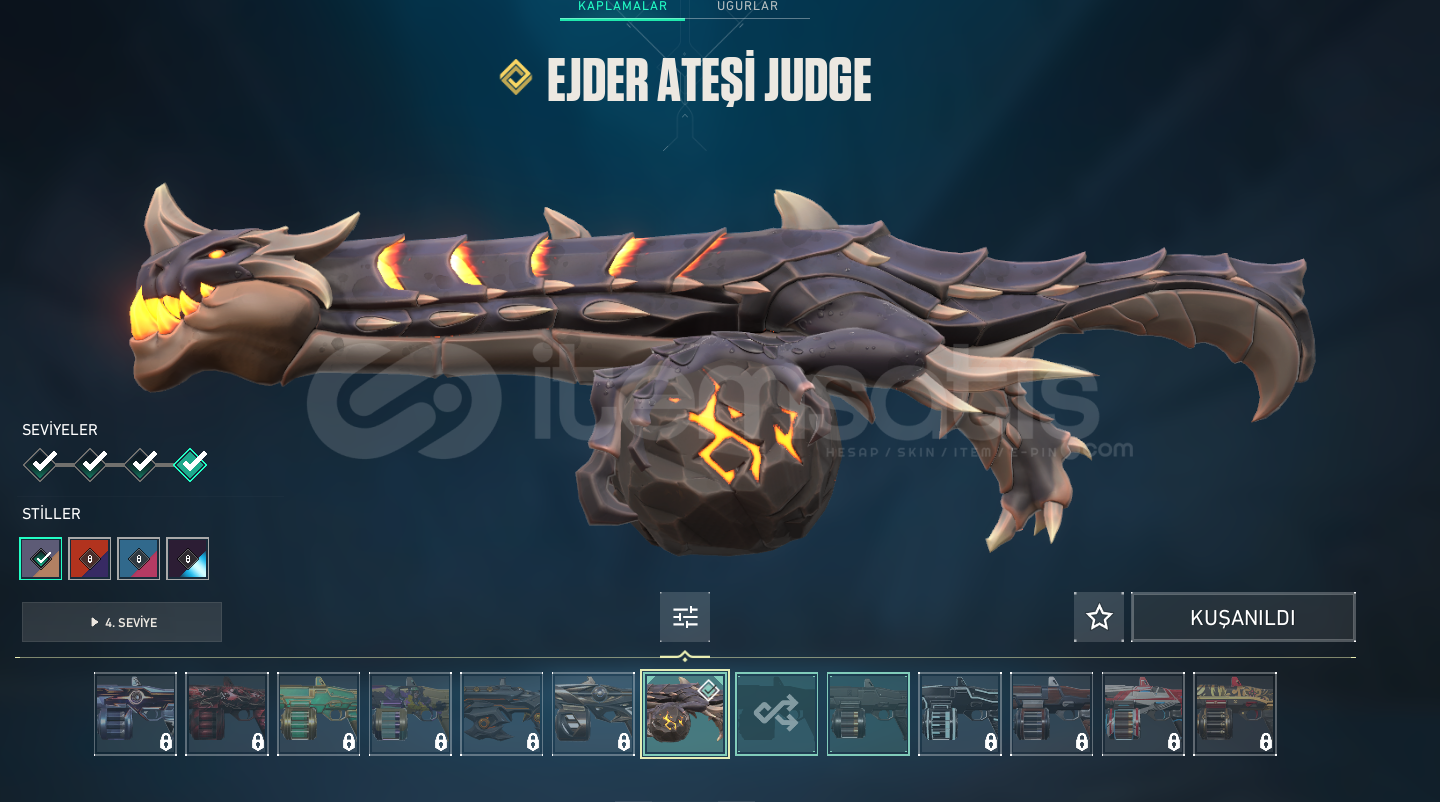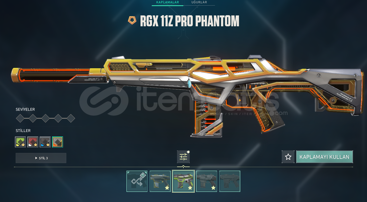 • RGX 11z Pro Karambit+RGX 11z Pro Phantom+ Aemondir Vandal +Işık Muhafızları Vandal+Kaosun Başlangıcı Operator+Ejder Ateşi Judge+SihirPunk Vandal olmak üzere 23 skin mevcuttur