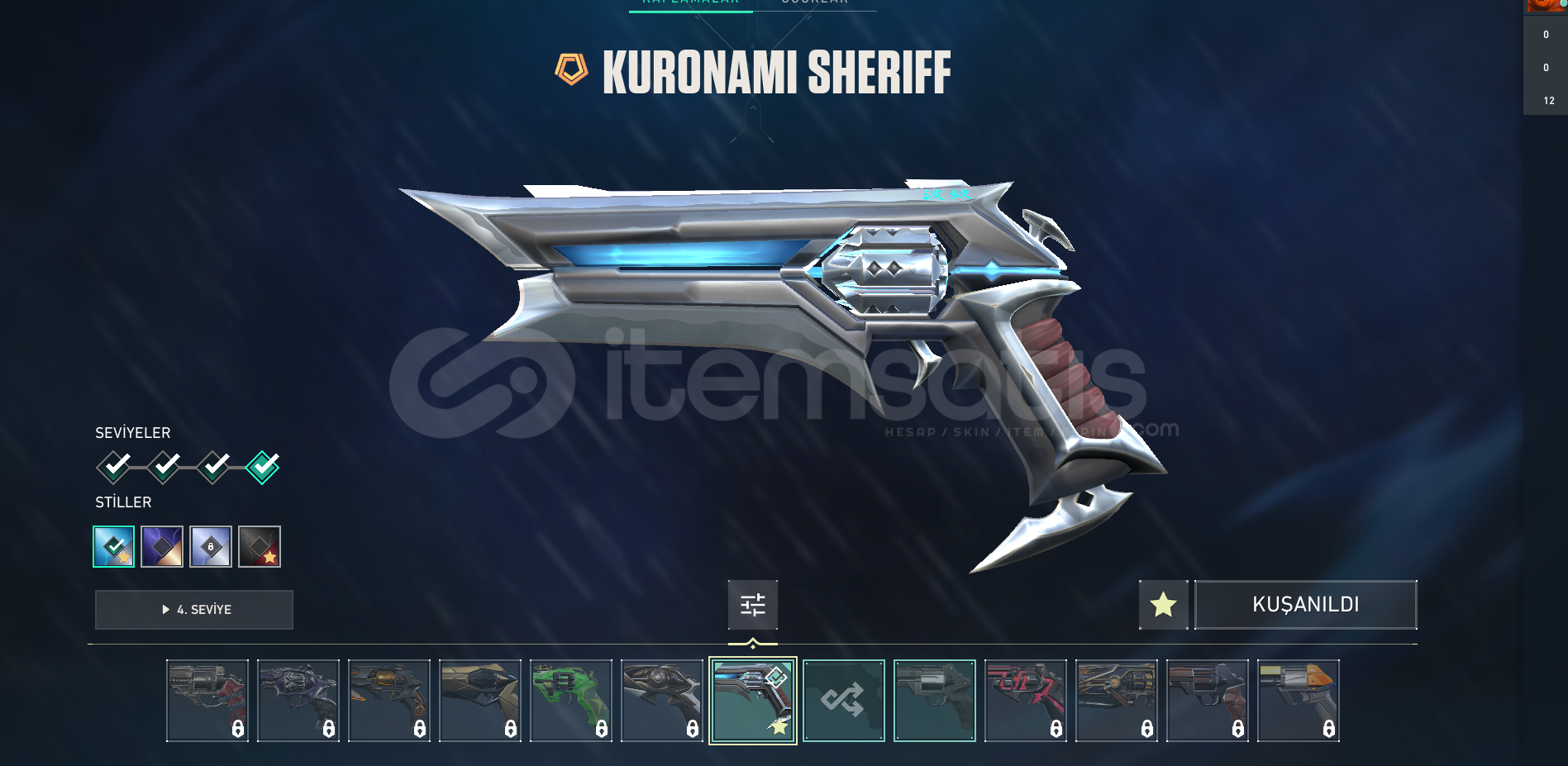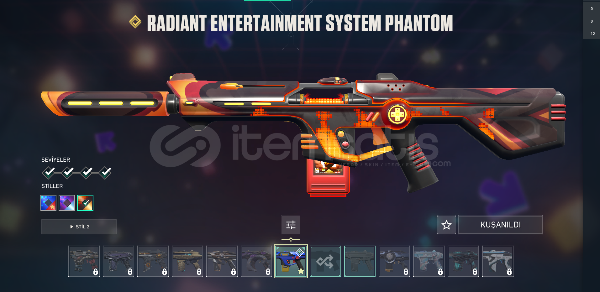 İçerisinde KURONAMİ VANDAL - KURONAMİ SHERİFF - ARCANE VANDAL - ARCANE ELDİVENLERİ - RADİANT ENTERTAİNMET SYSTEM PHANTOM - 1 ADET BİTİRİLMEMİŞ BATTLE PASS bulunmakta